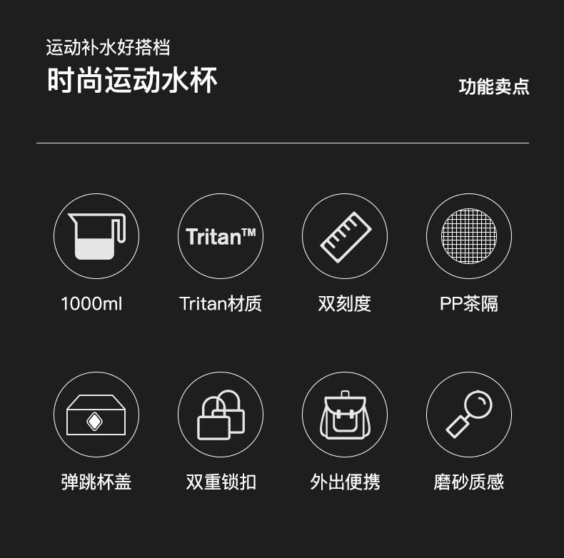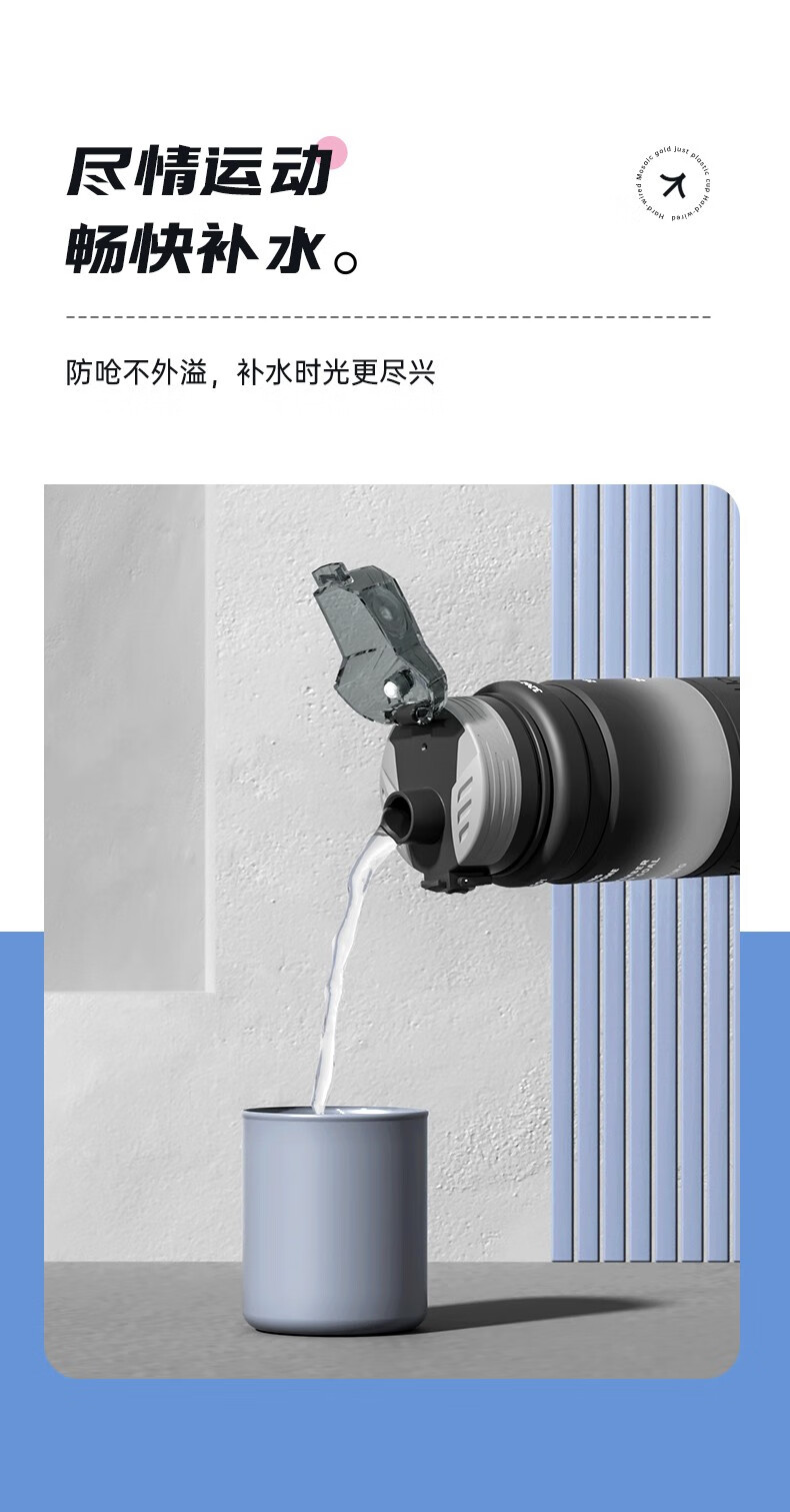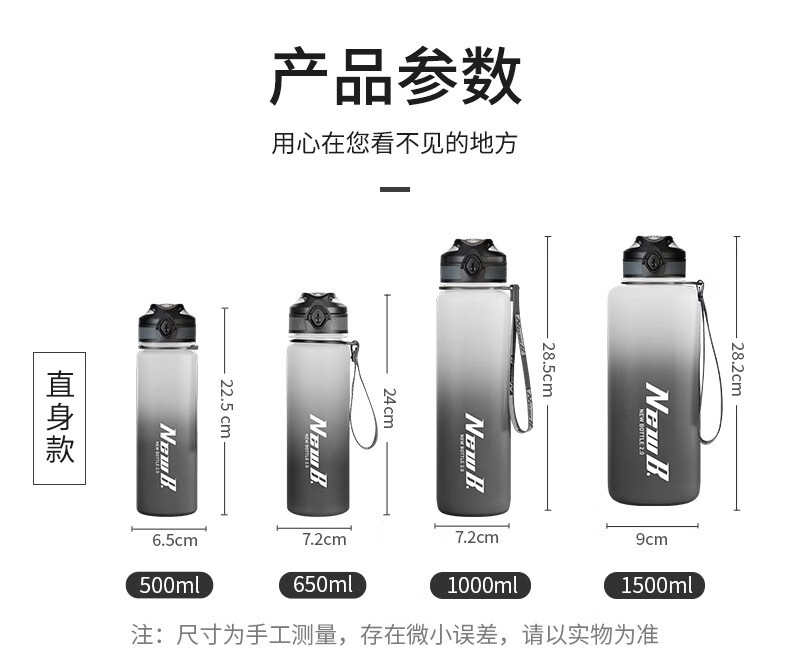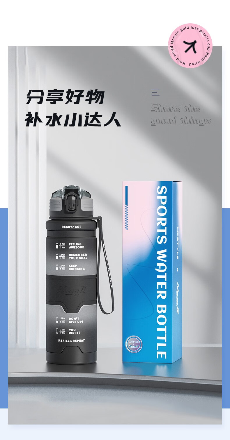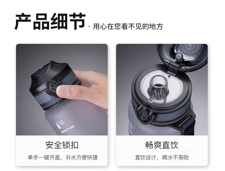 NEWB large-capacity sports kettle Tritan plastic drinking cup for men and women students summer fitness tea cup upgraded with insulation pad-Yaohei 1000ml