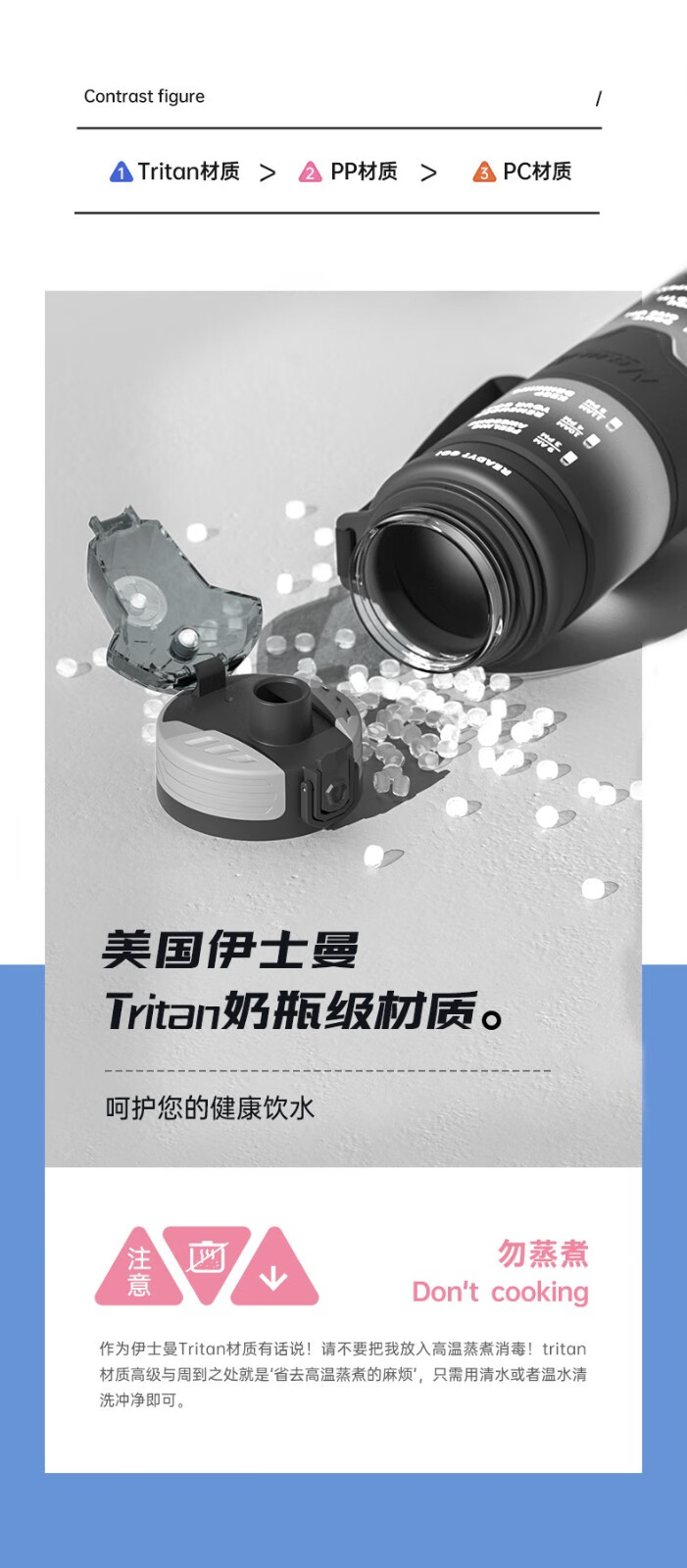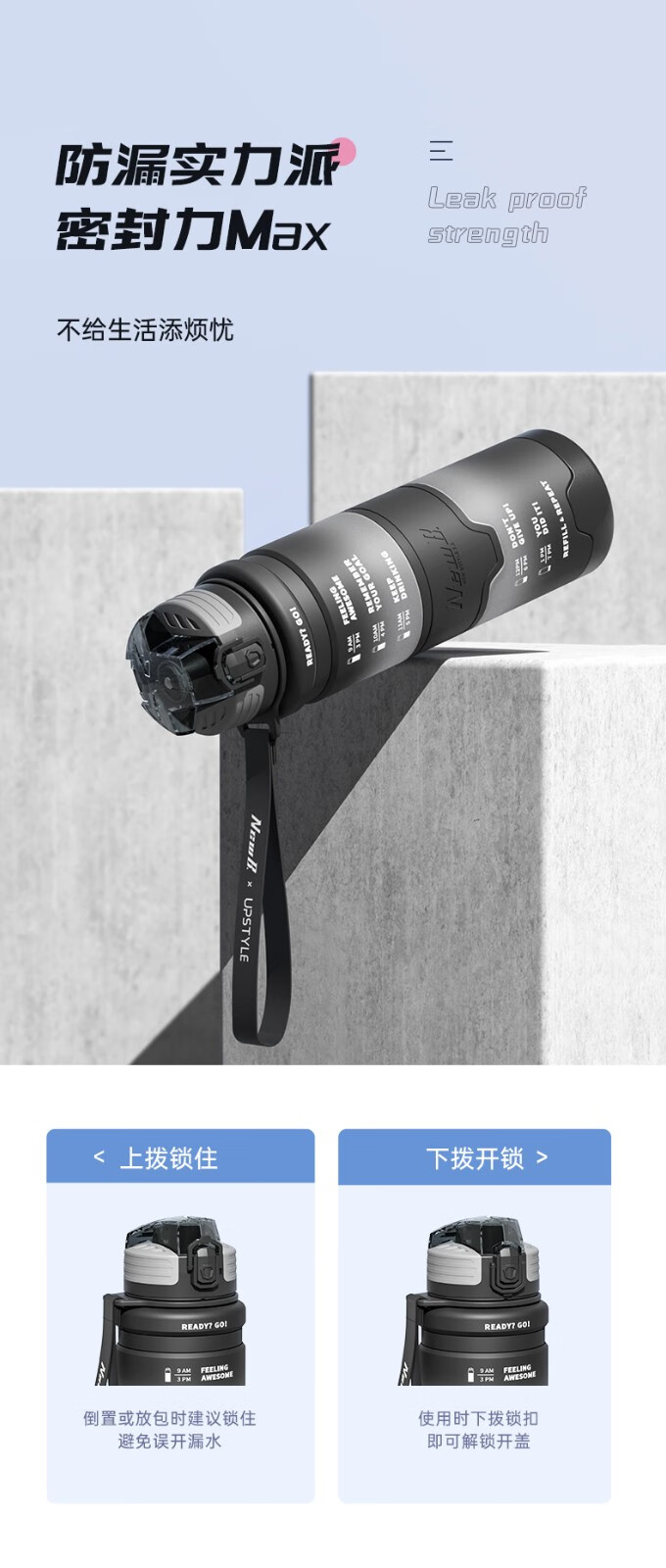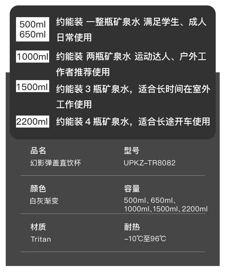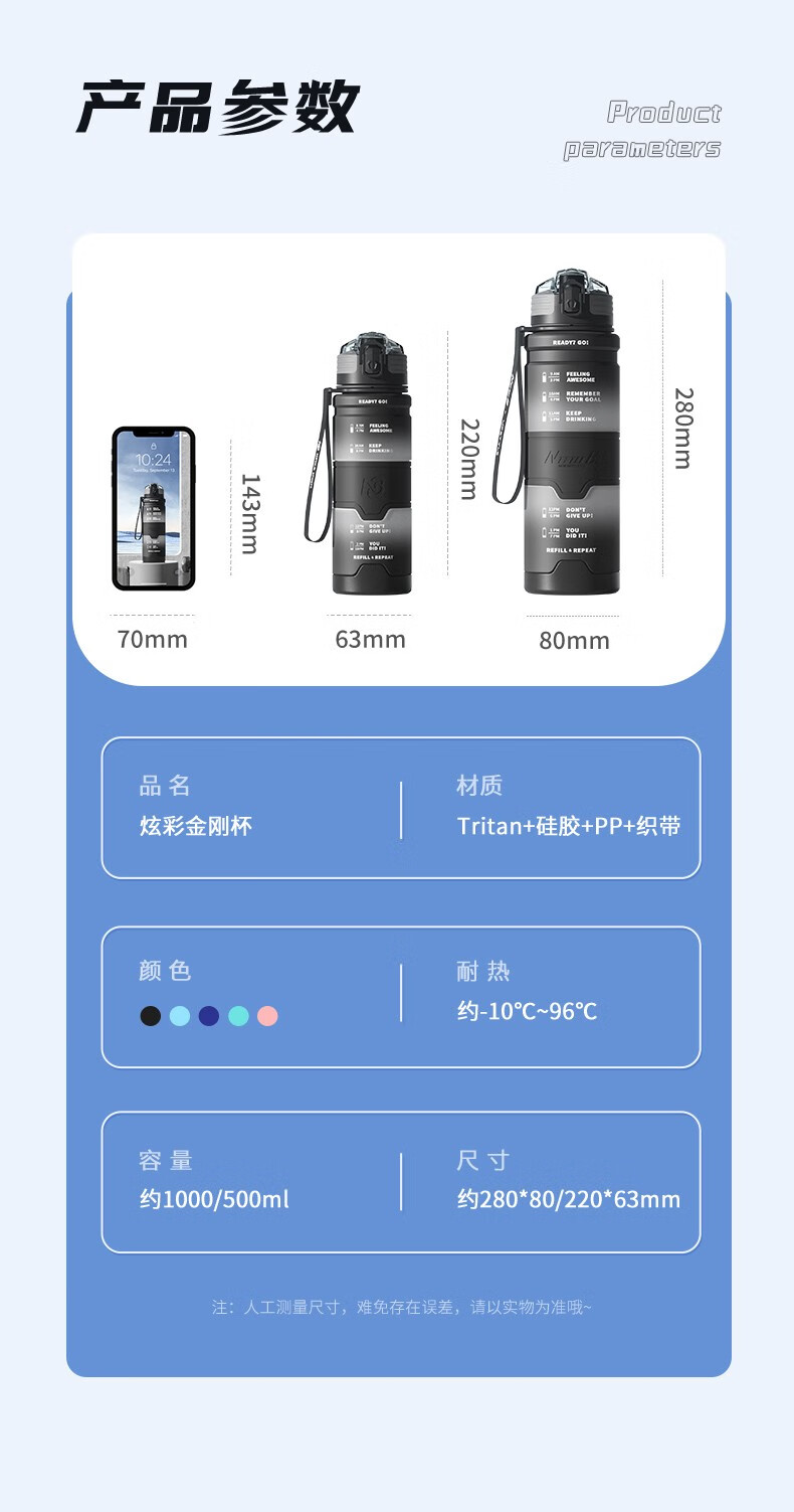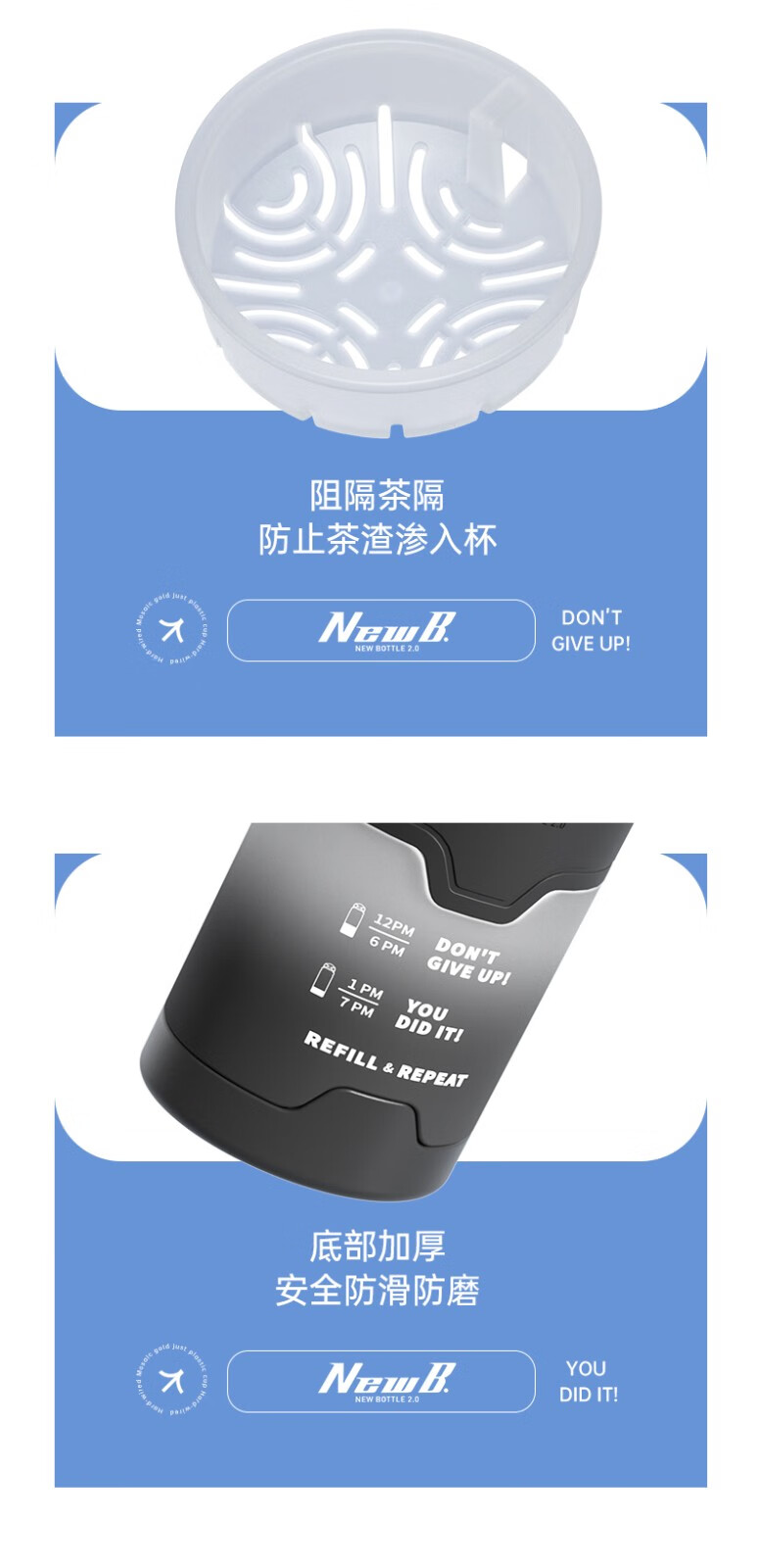 NEWB large-capacity sports kettle Tritan plastic drinking cup for men and women students summer fitness tea cup upgraded with insulation pad-Yaohei 1000ml