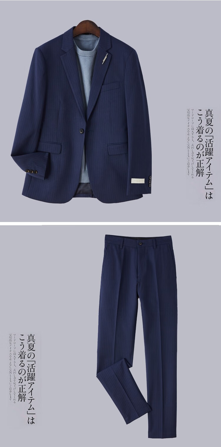 DK brand suit suit men's spring and autumn slim fit small suit jacket men's trendy Korean style light mature style suit complete set dark blue-two-piece set M size
