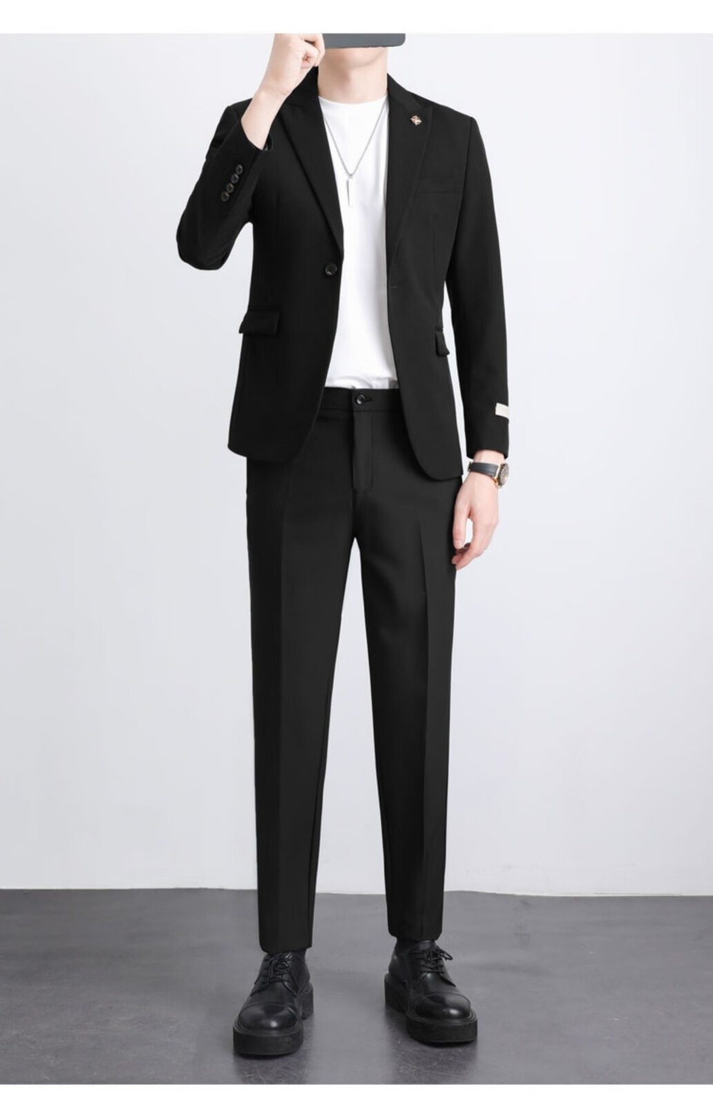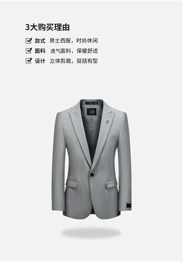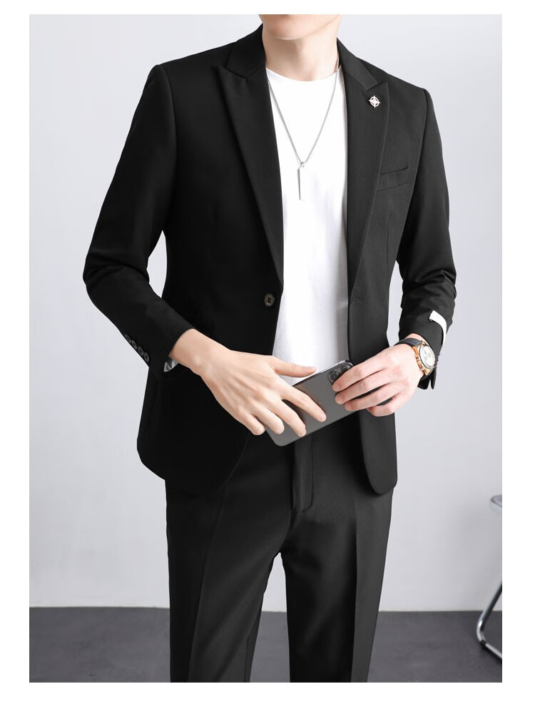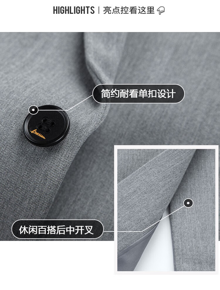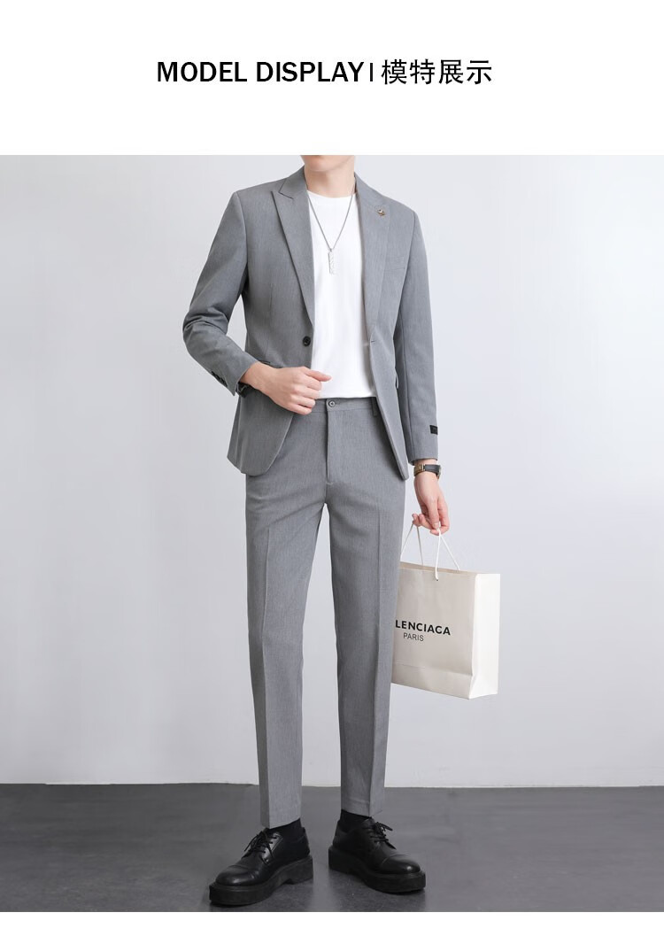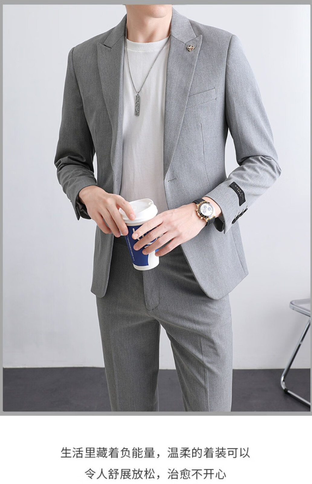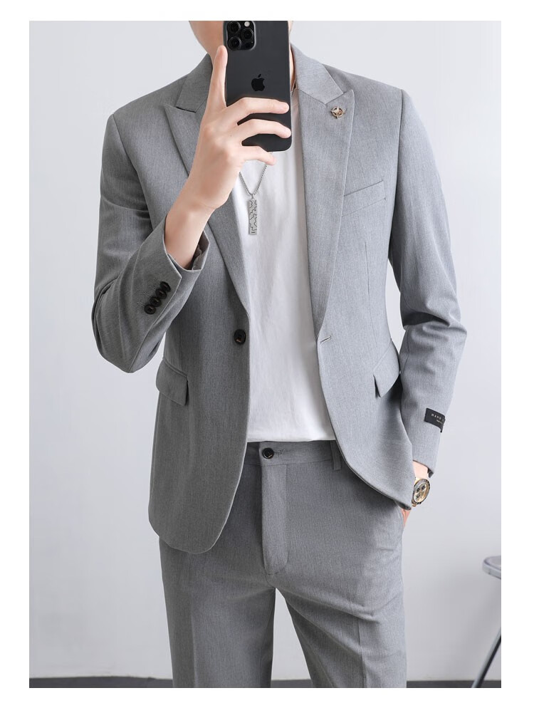 DK brand suit suit men's spring and autumn light mature style small suit jacket men's slim trendy solid color suit complete set gray suit + trousers M size