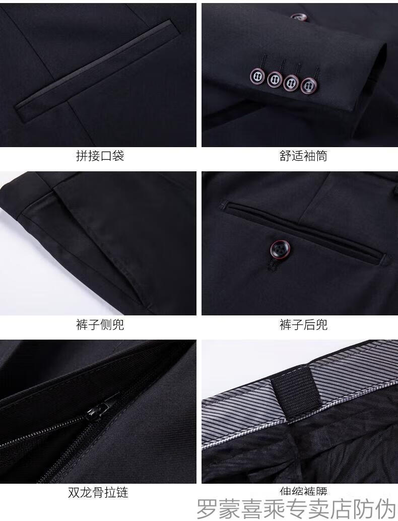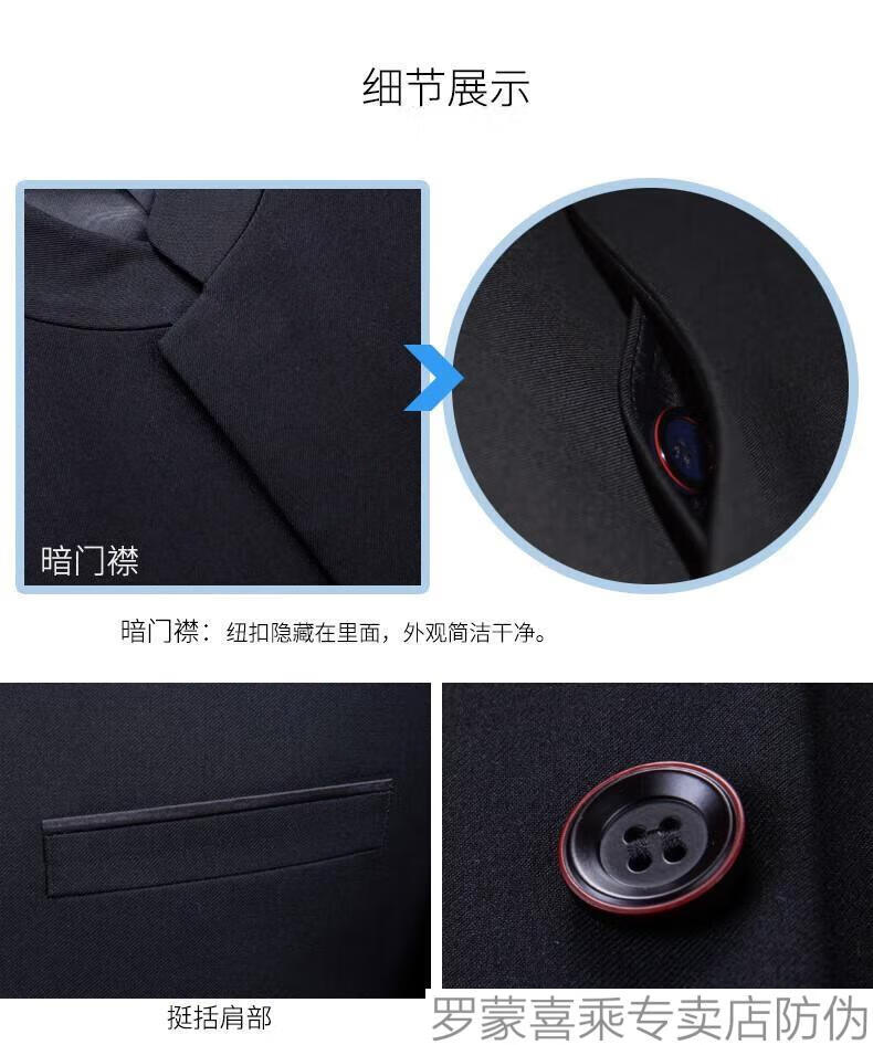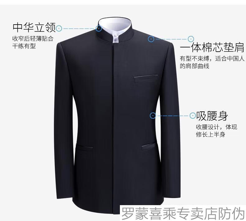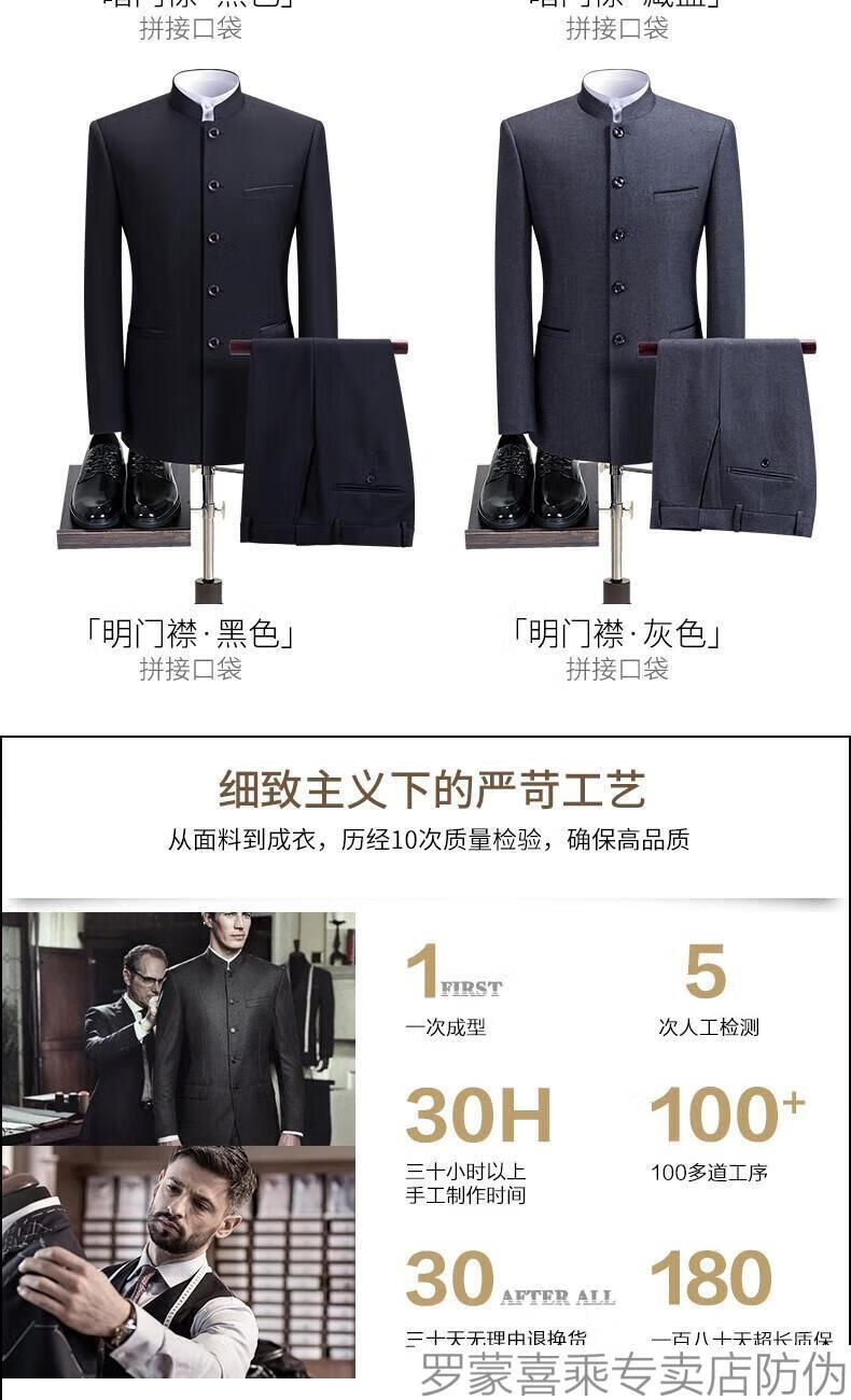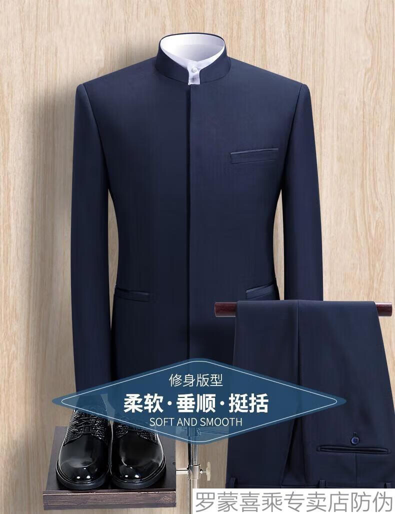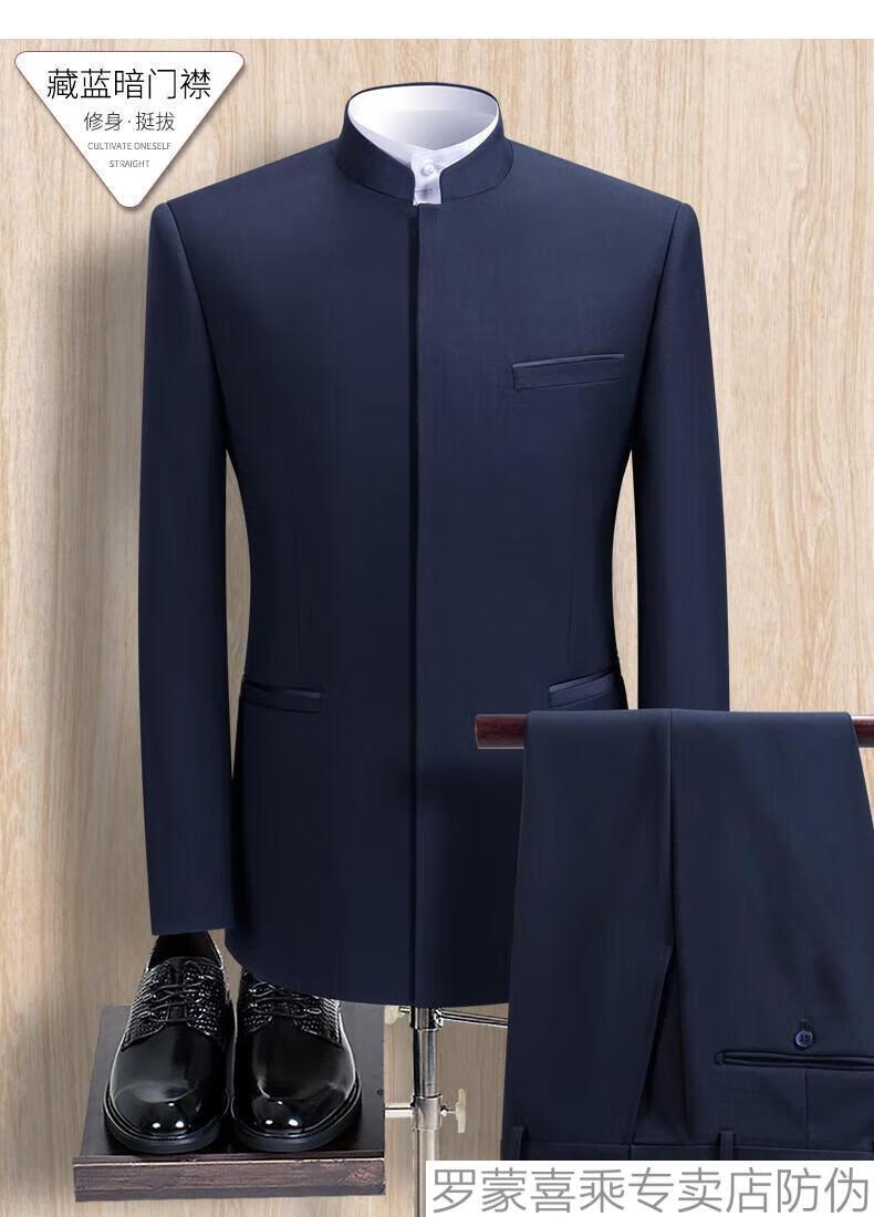 ROMON brand high-end Chinese tunic suit for young men, slim fit Chinese stand-up collar suit suit, Chinese style trendy groom, Chinese wedding new product, navy blue hidden button top and pants + gift bag 175B