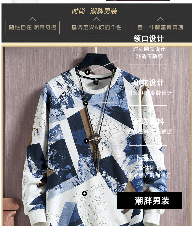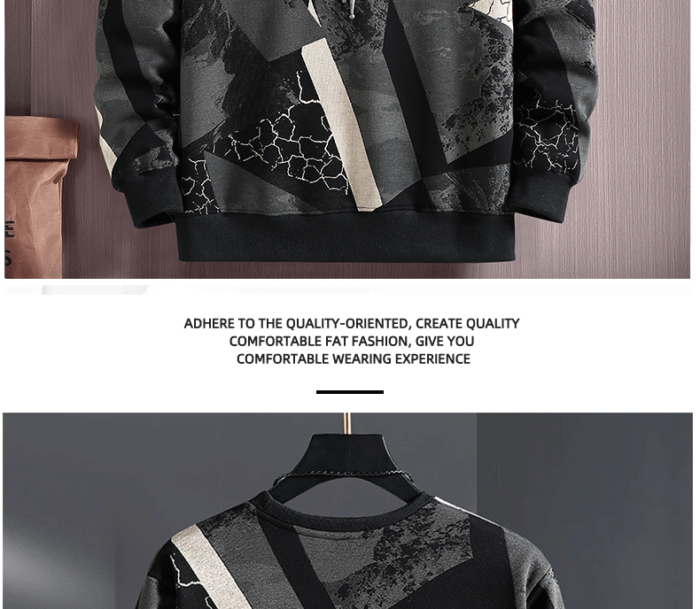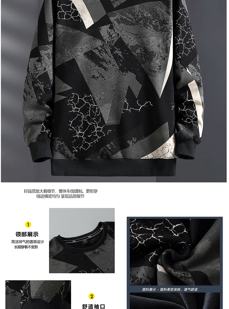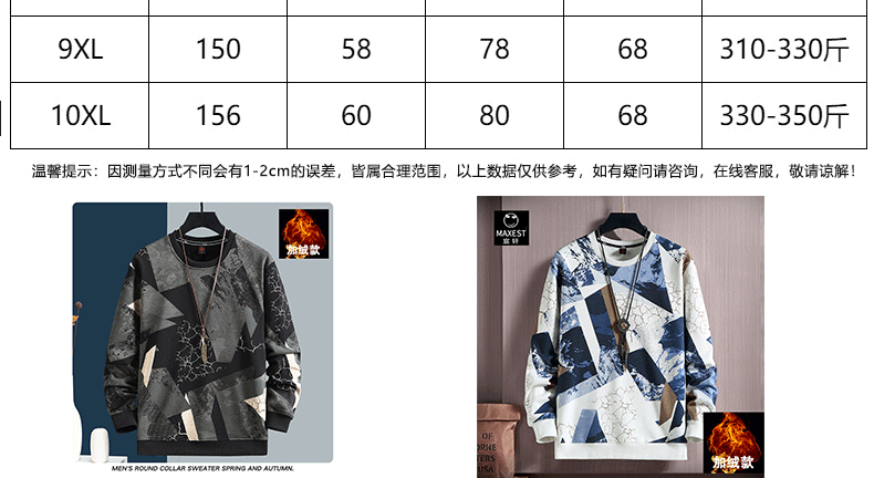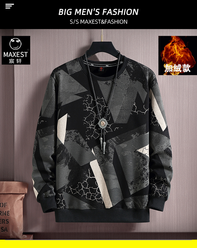 Chenxuan trendy brand large size men's clothing 300Jin Jin is equal to 0.5kg Fat man's round neck sweatshirt plus fat and extra large loose thickened printed fat man bottoming shirt black plus velvet 6XL (220-240Jin Jin is equal to 0.5kg)