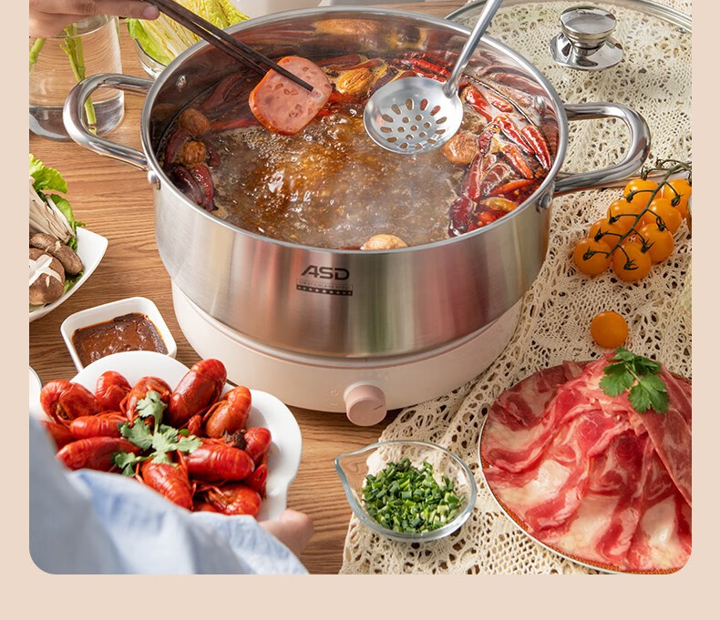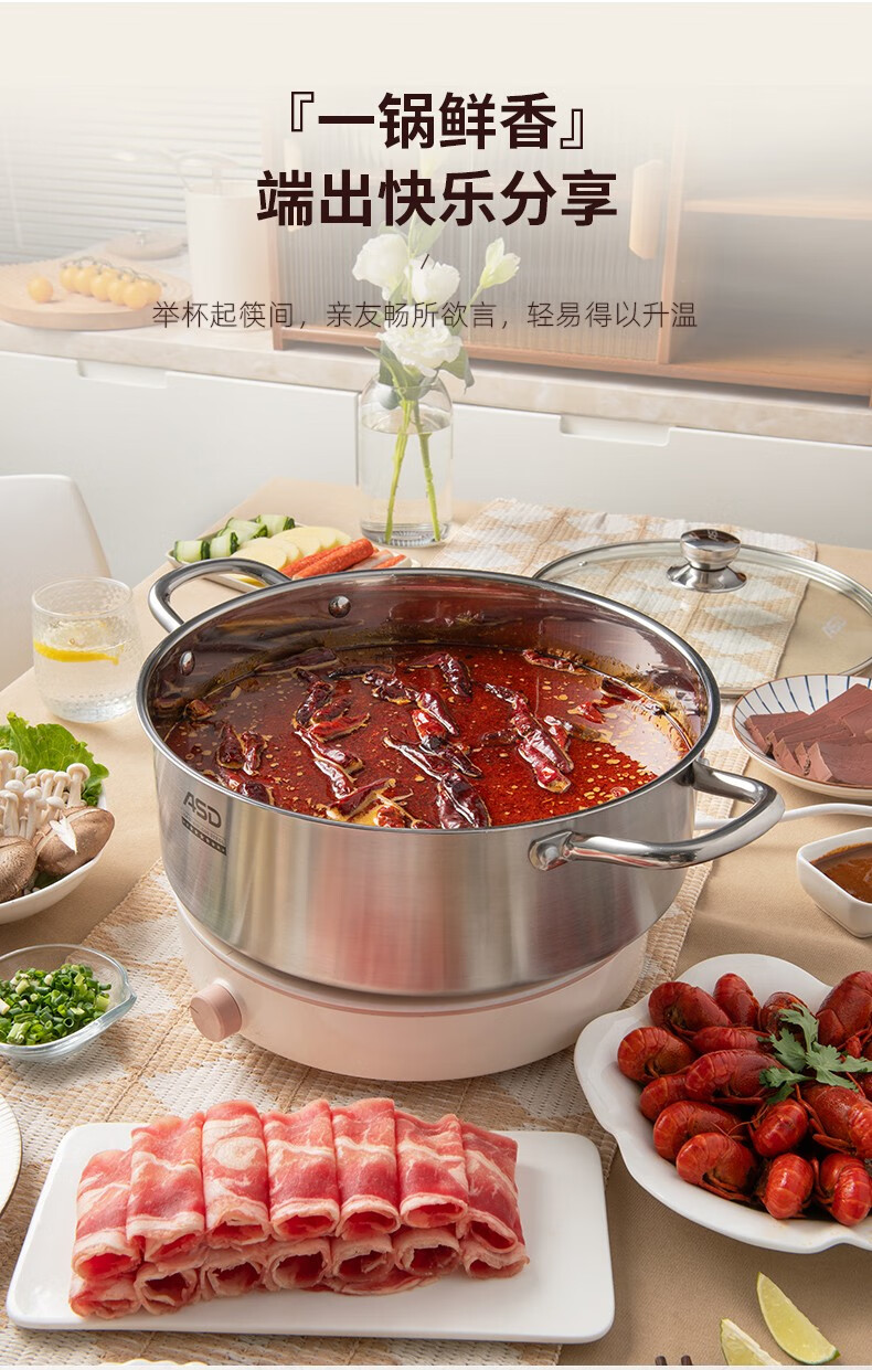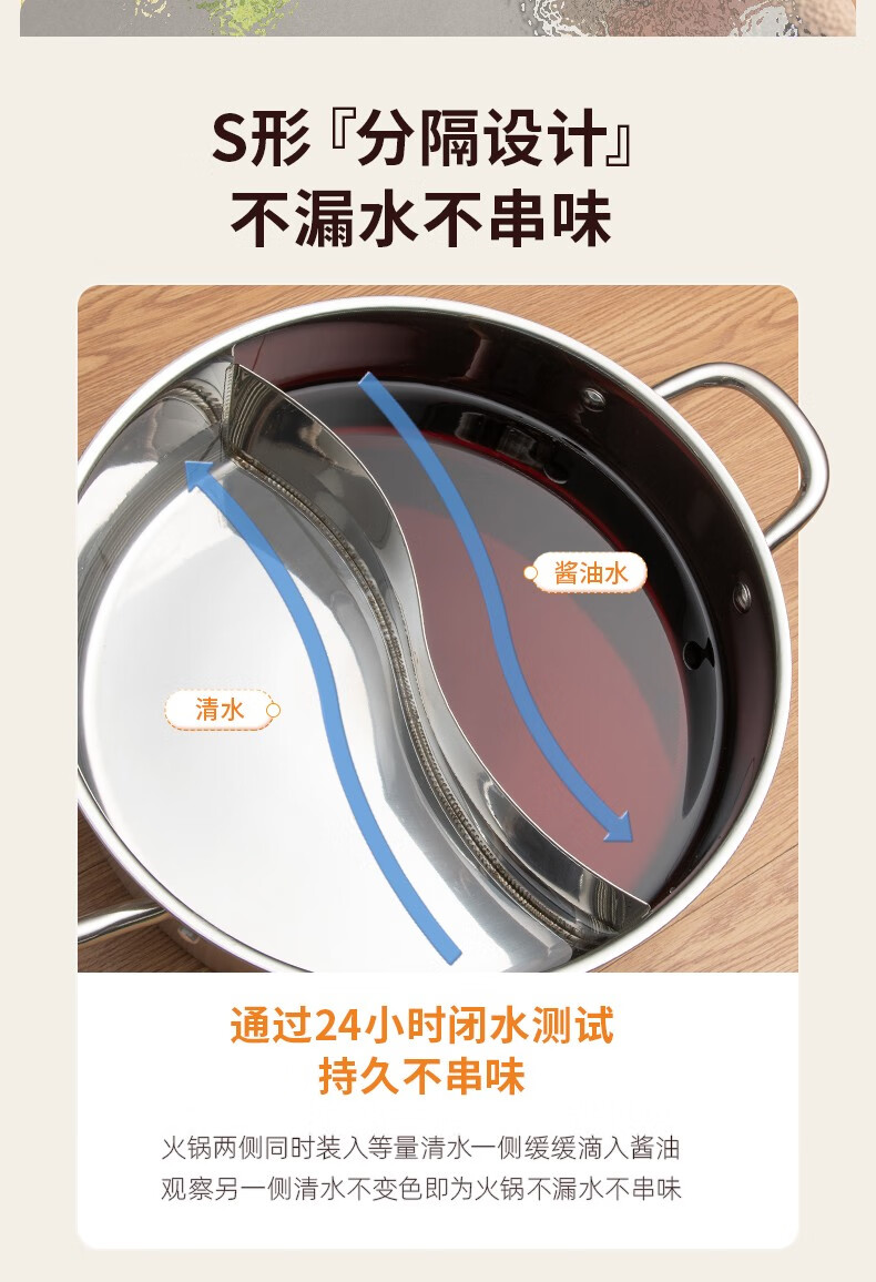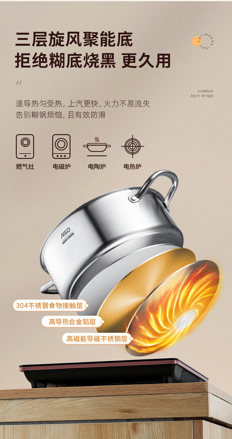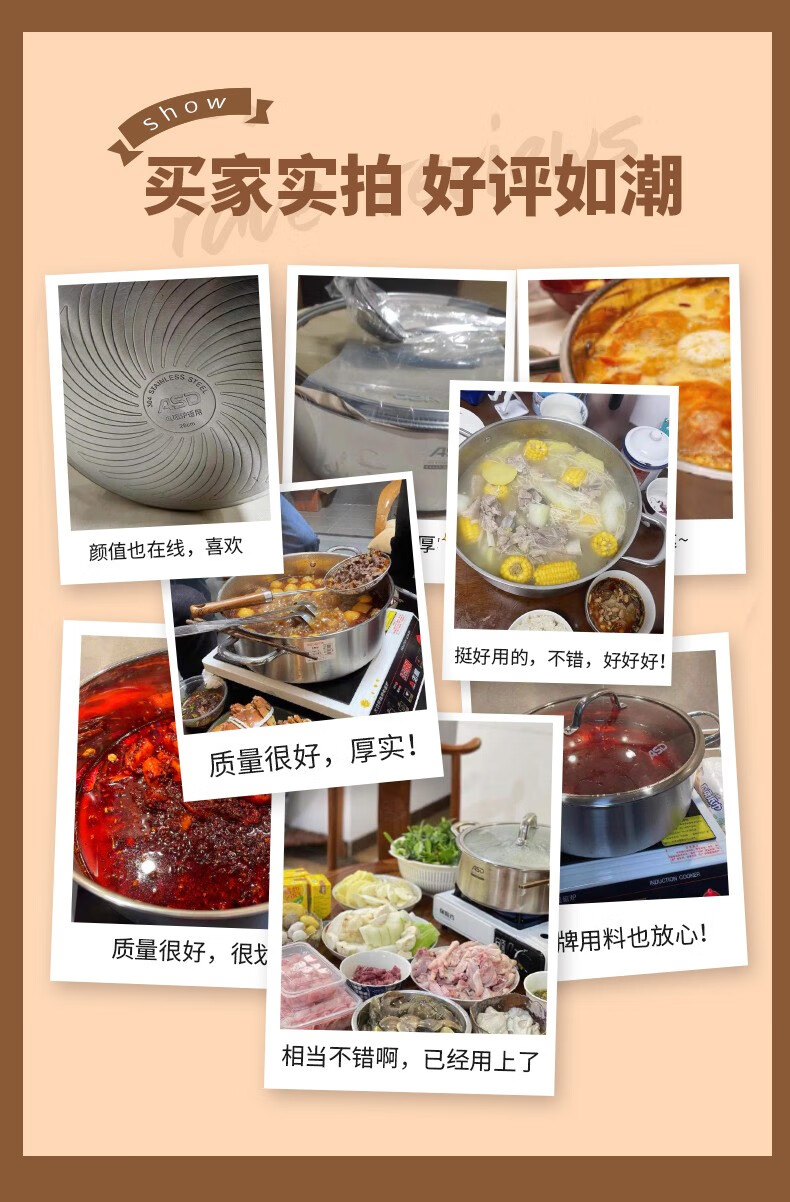 ASD hot pot 304 stainless steel straight large capacity hot pot soup pot kitchen household living room shabu shabu electromagnetic open flame universal cyclone double bottom clear soup hot pot 28cm