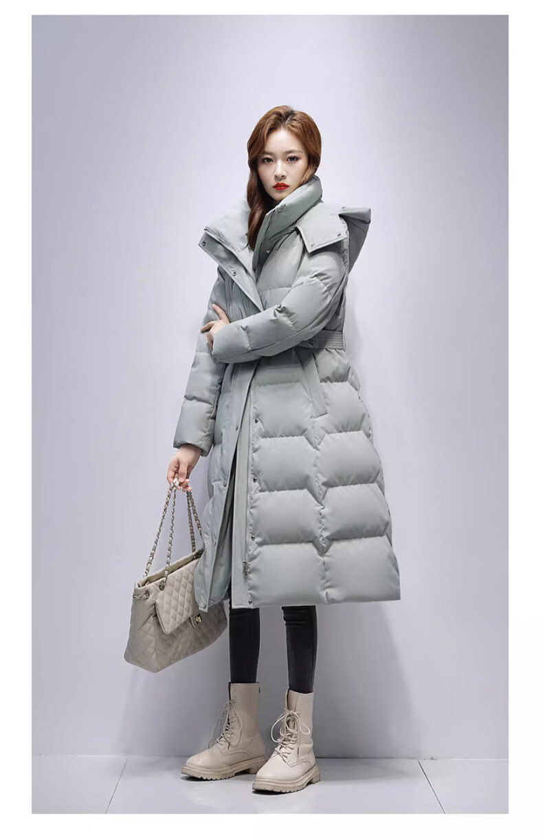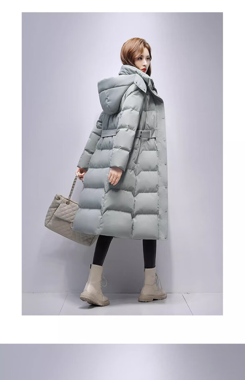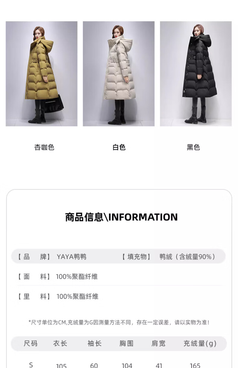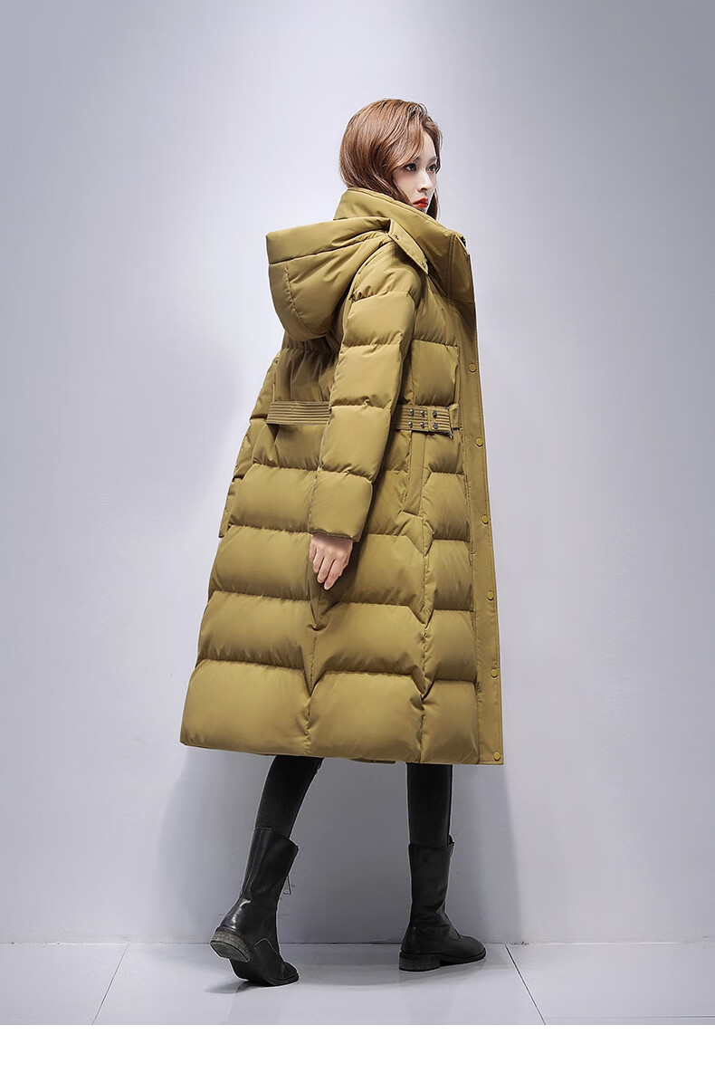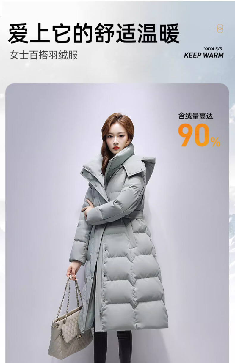 YAYA Down Jacket Women's Winter 2025 New Mid-Length Thickened Women's Fashion Hooded Duck Down Warm Jacket XB Porcelain Green M (160)