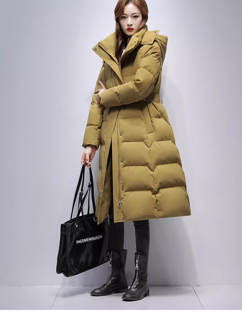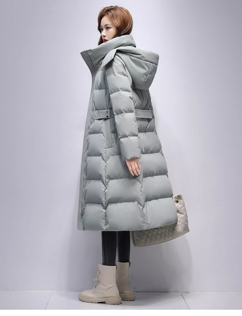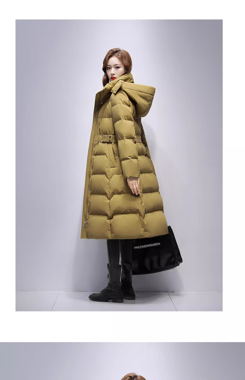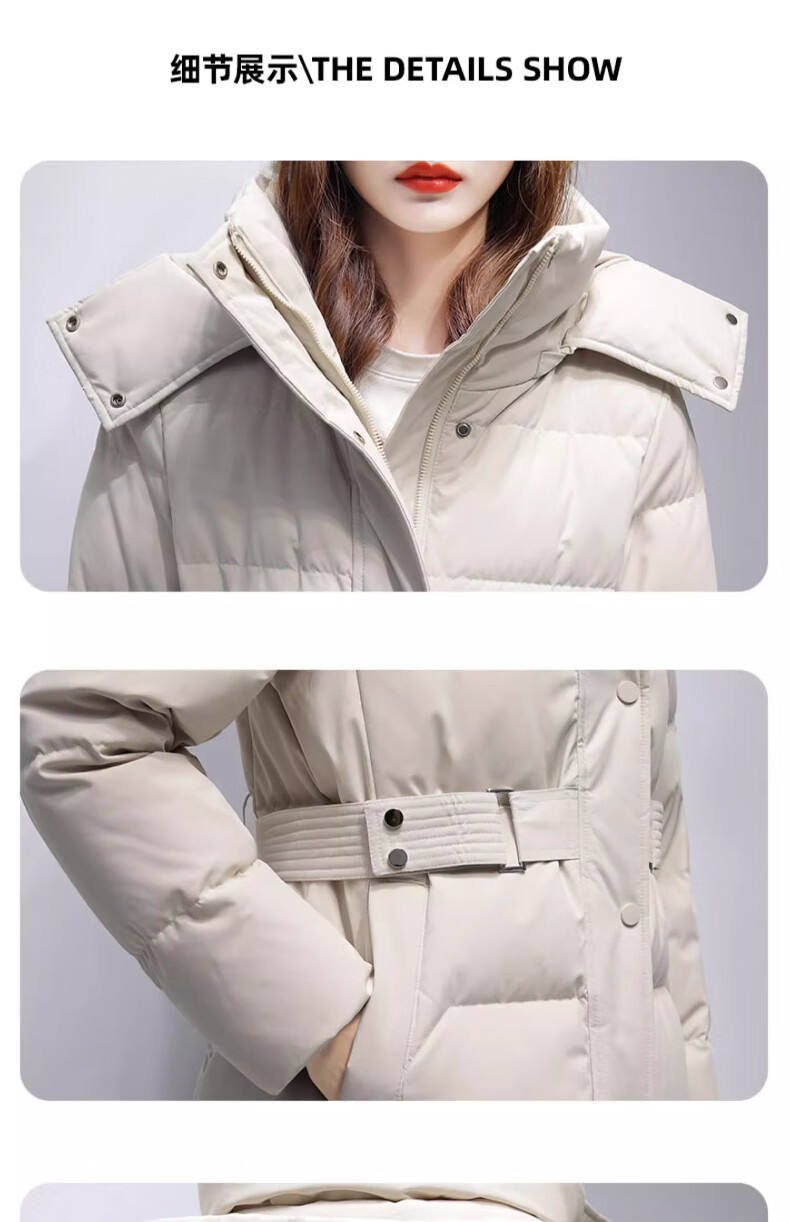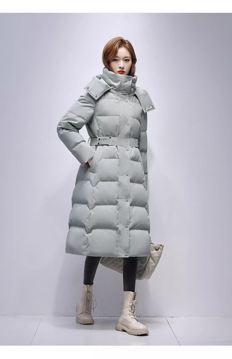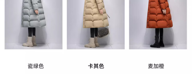 YAYA Down Jacket Women's Winter 2025 New Mid-Length Thickened Women's Fashion Hooded Duck Down Warm Jacket XB Porcelain Green M (160)
