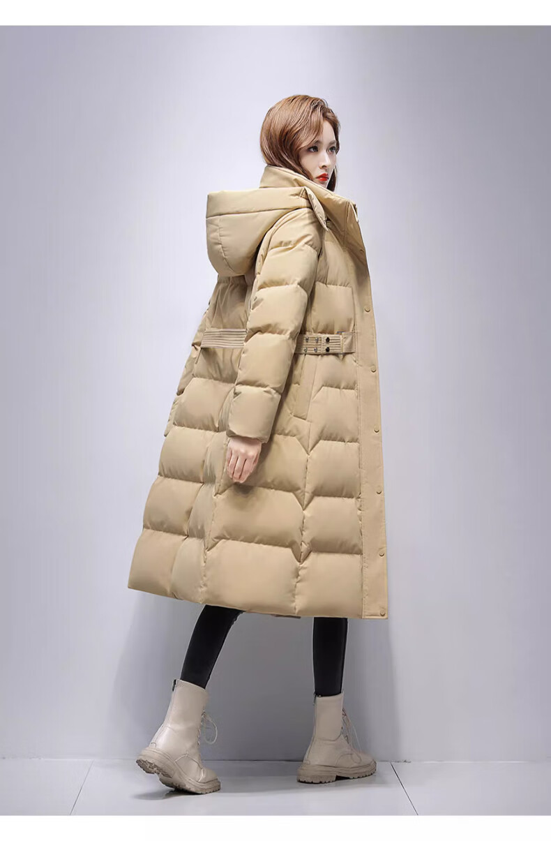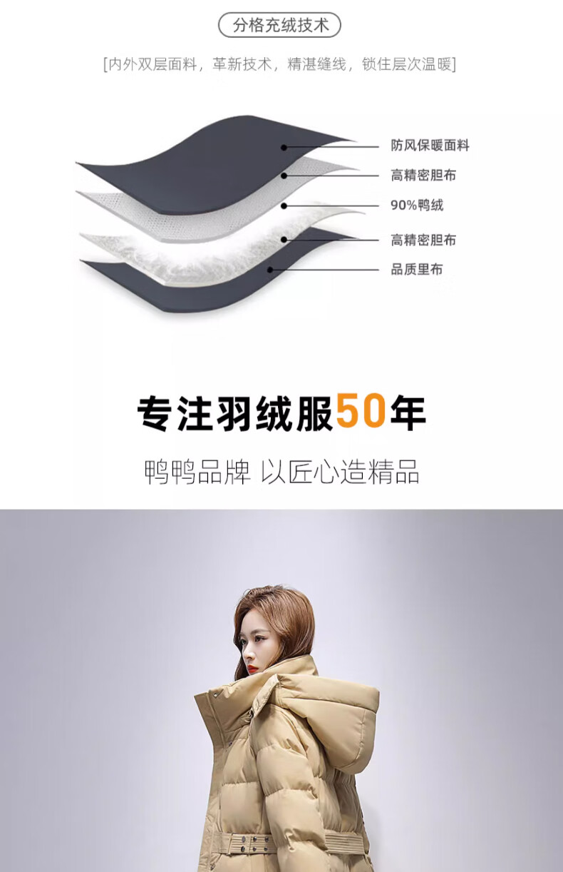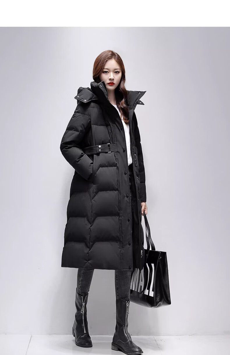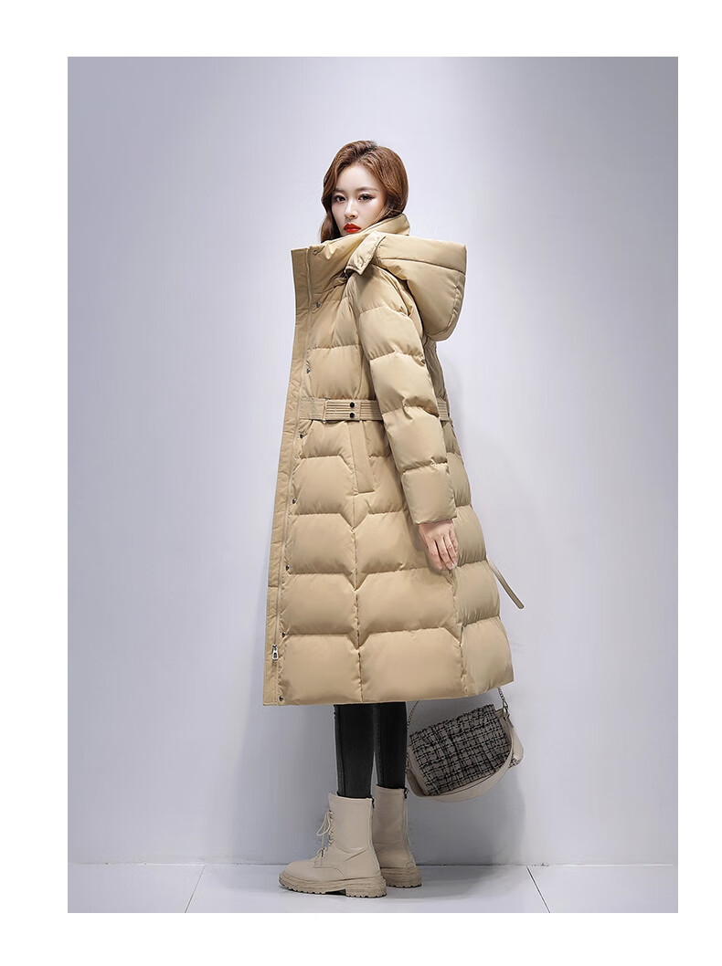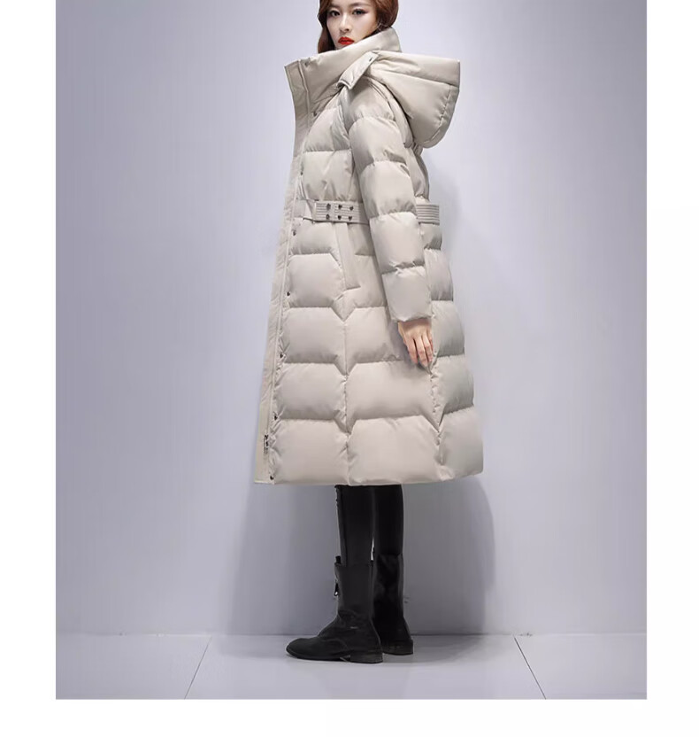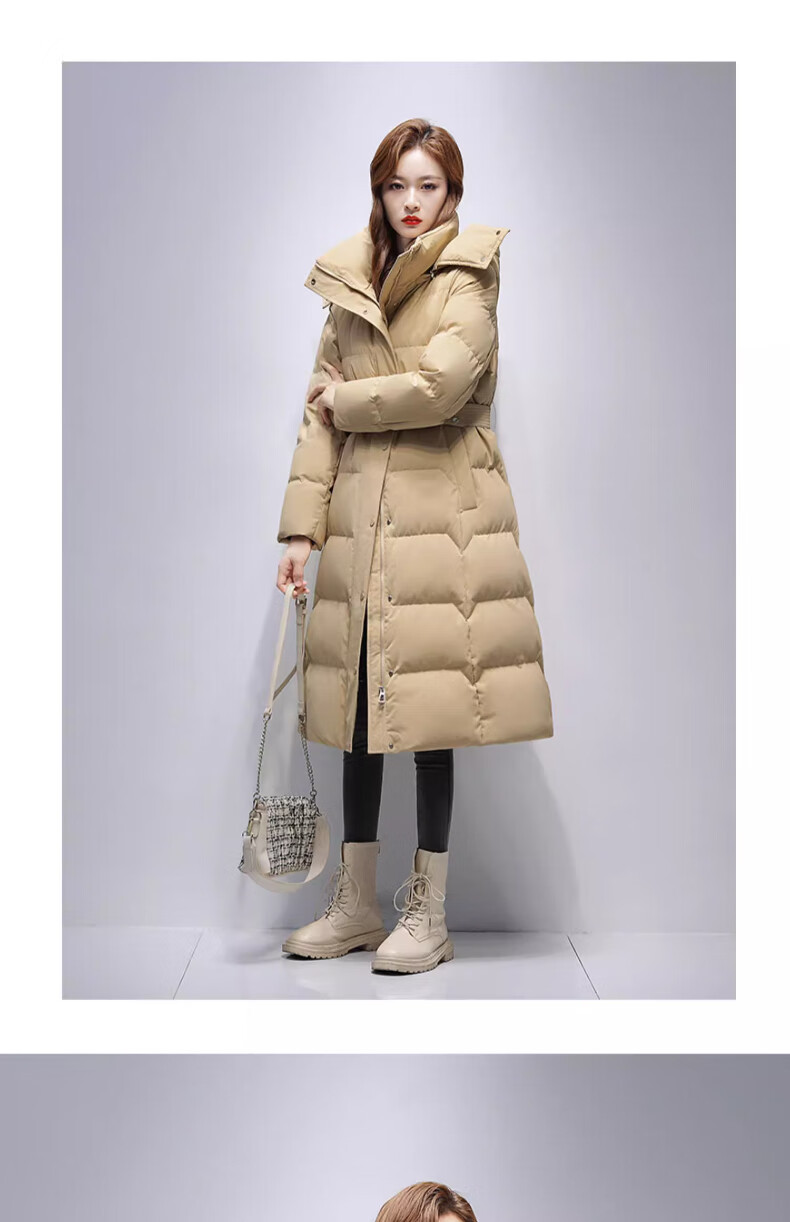 YAYA Down Jacket Women's Winter 2025 New Mid-Length Thickened Women's Fashion Hooded Duck Down Warm Jacket XB Porcelain Green M (160)