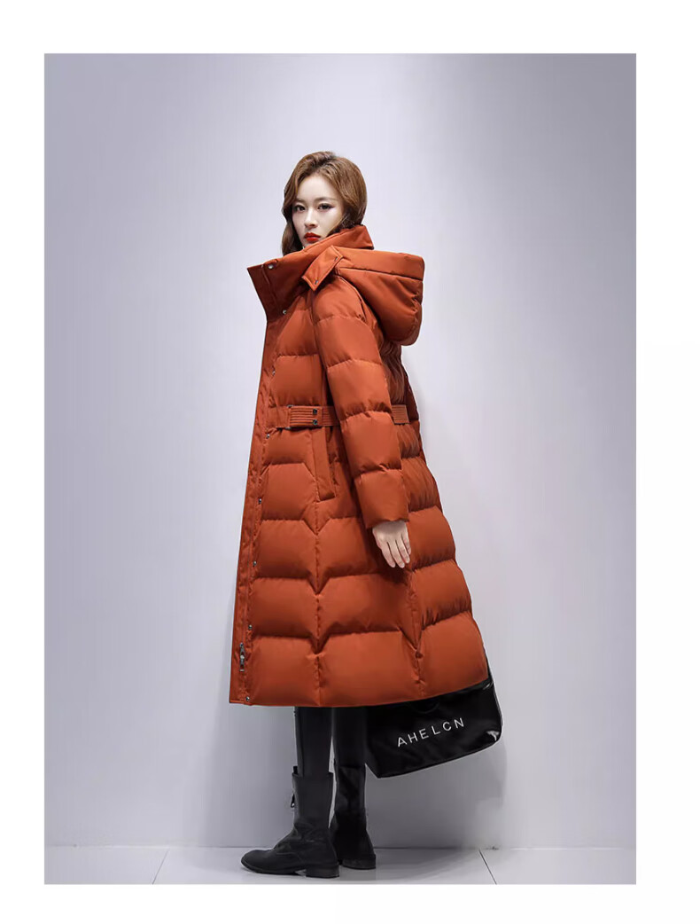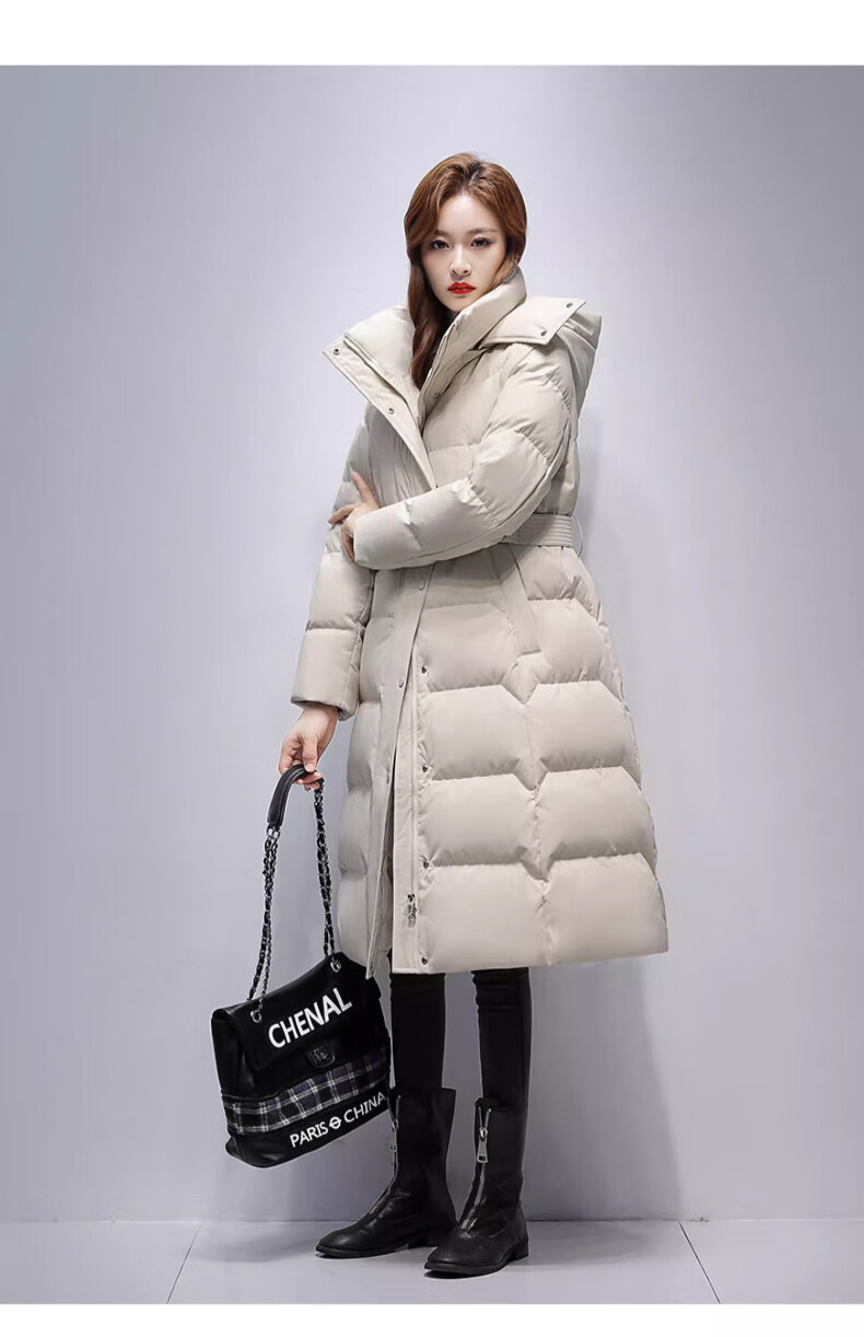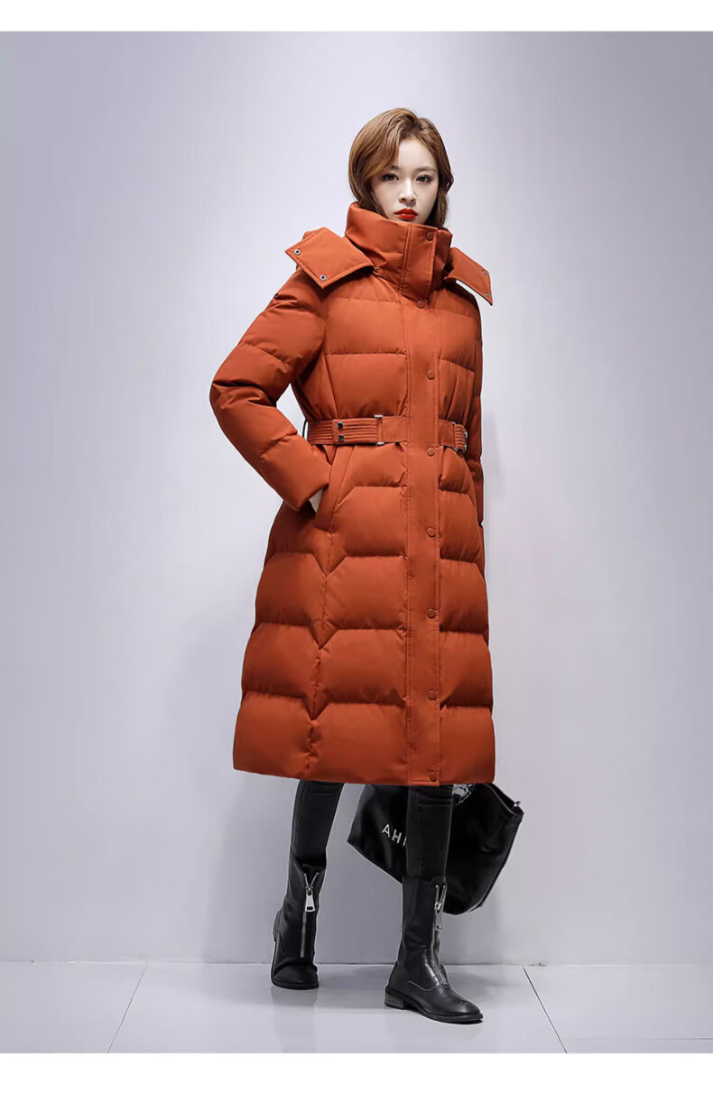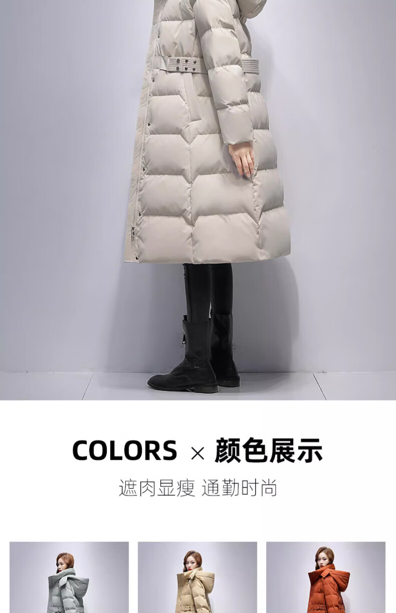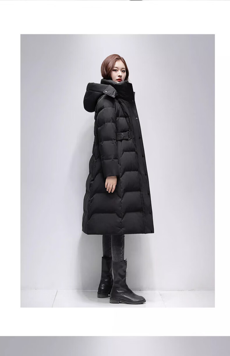 YAYA Down Jacket Women's Winter 2025 New Mid-Length Thickened Women's Fashion Hooded Duck Down Warm Jacket XB Porcelain Green M (160)