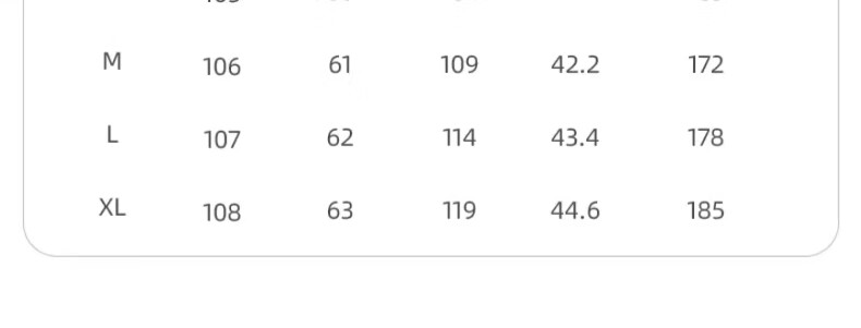 Outseam (cm) 99 cm 101.5 cm 104 cm 106.5 cm 109 cm