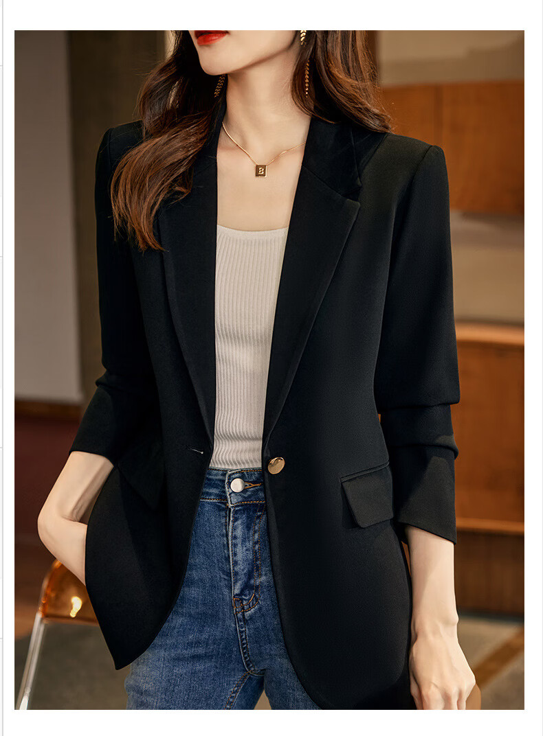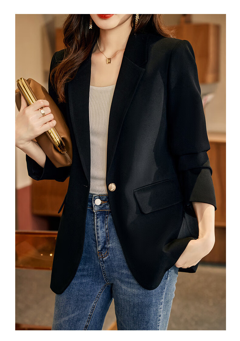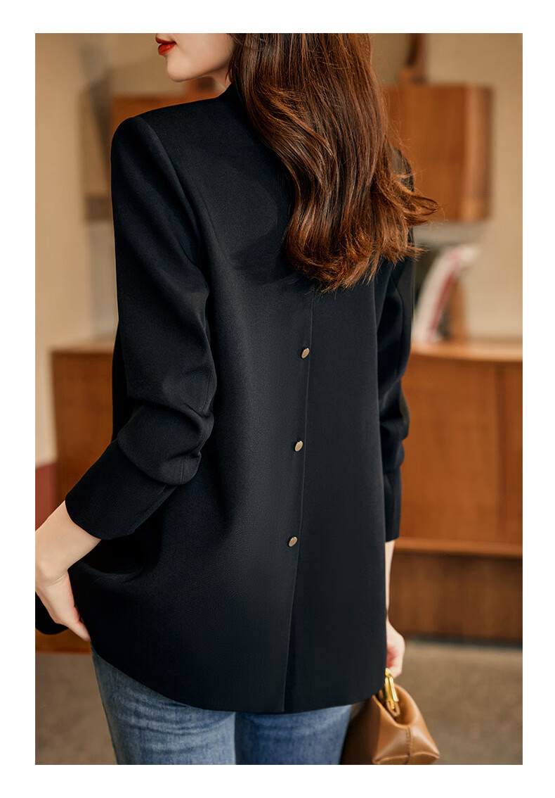 ROMON Light Luxury Women's Casual Small Blazer Women's 2025 Spring and Autumn New Korean Style High-end Commuting Top Single Black Suit XL
