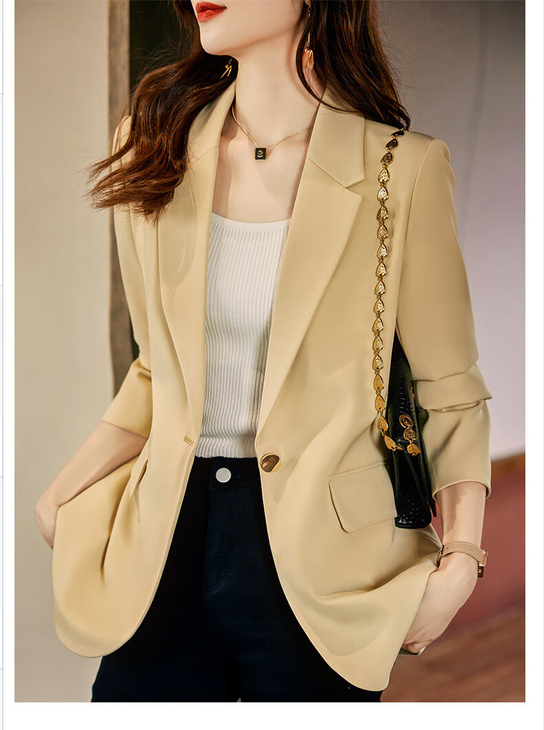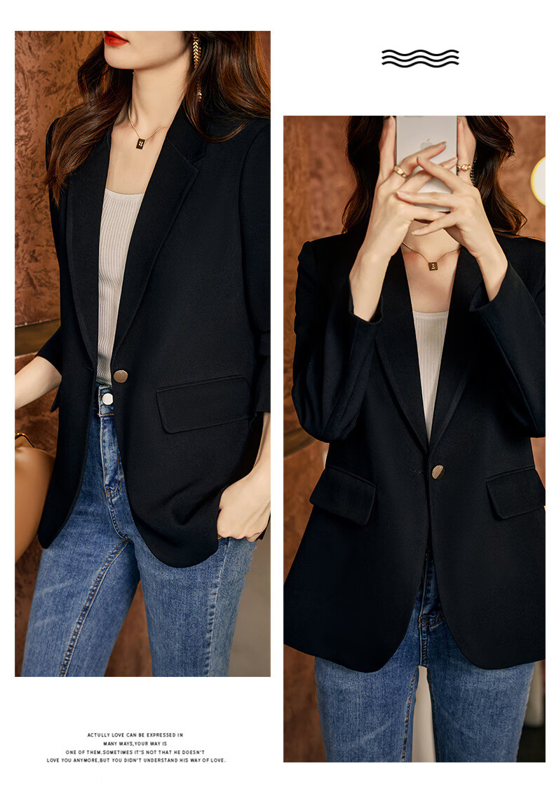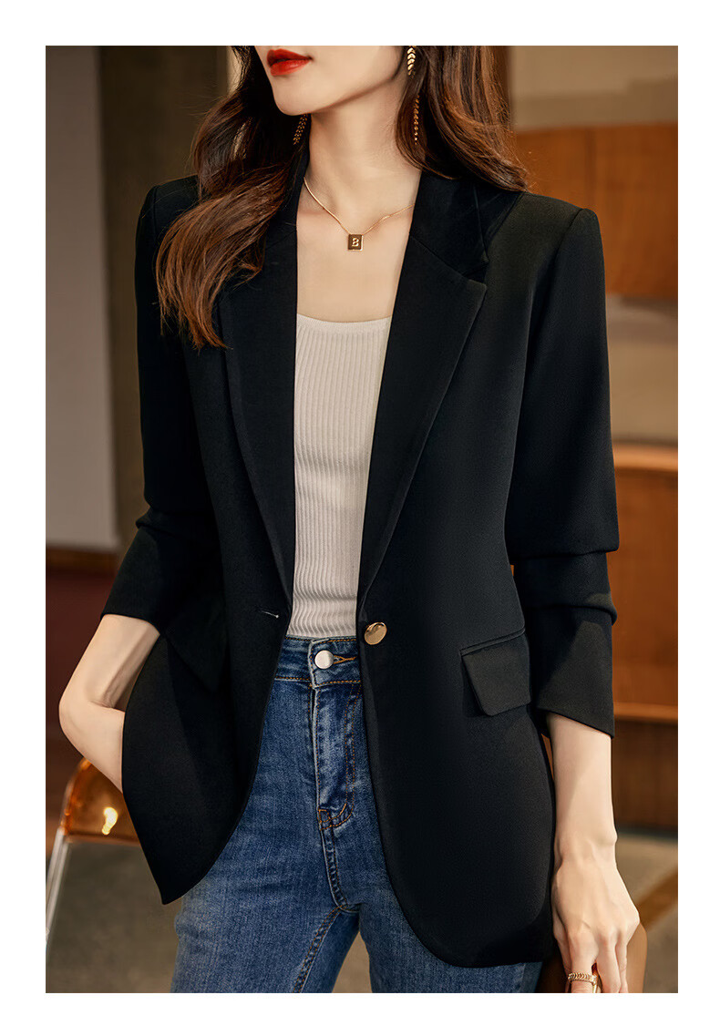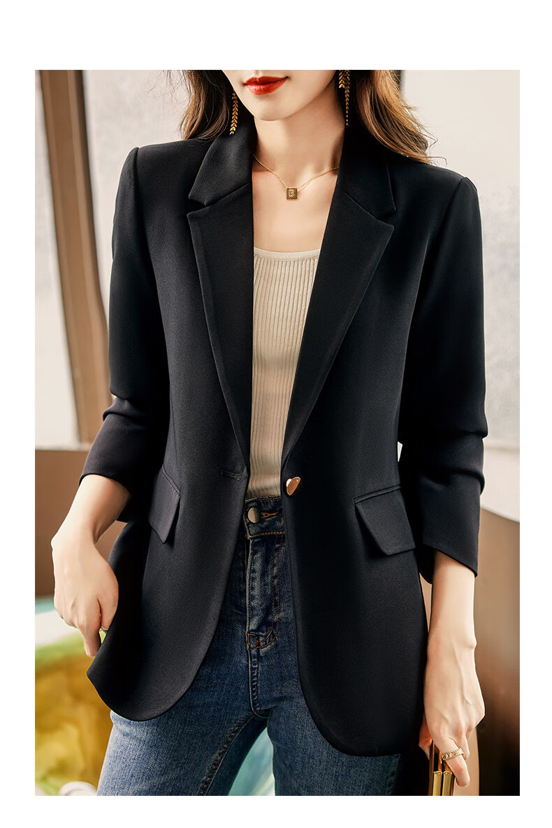 ROMON Light Luxury Women's Casual Small Blazer Women's 2025 Spring and Autumn New Korean Style High-end Commuting Top Single Black Suit XL