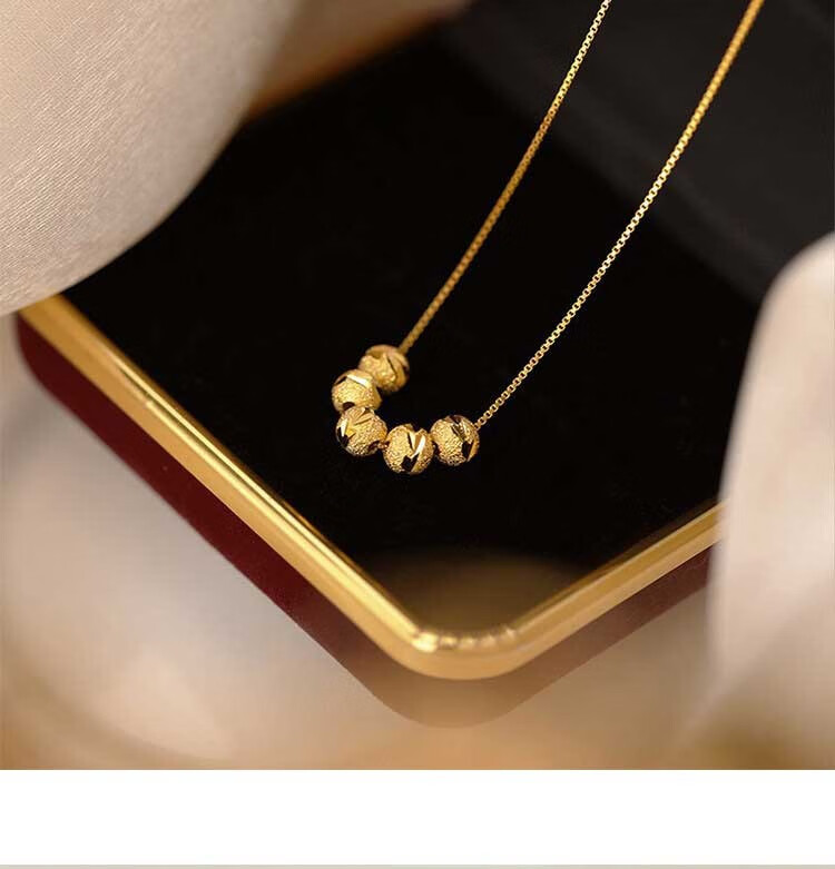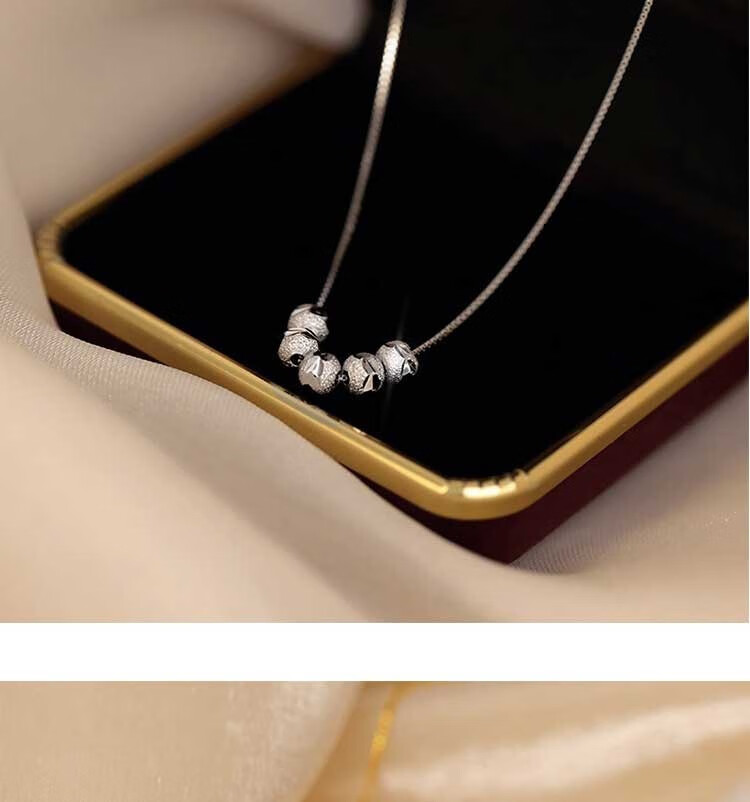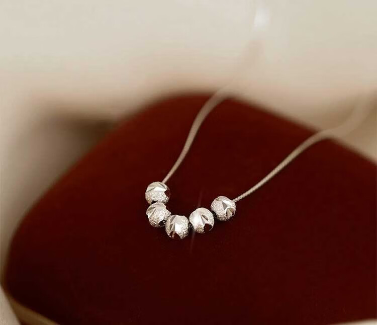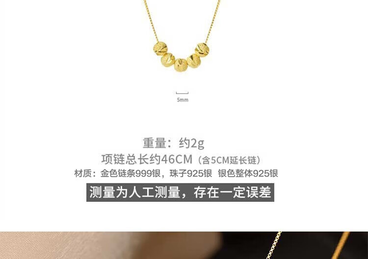KASIYU999 Pure Silver Five Blessings Transfer Bead Necklace for Women, Pendant for Girlfriend, Wife, Birthday, Chinese Valentine's Day Gift, Gold Necklace + Certificate + High-end Gift Box