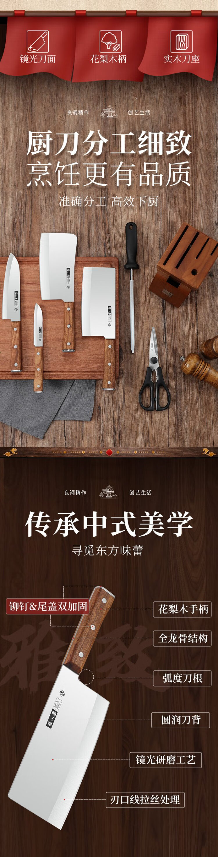 Zhang Xiaoquan Huayun kitchen knife set kitchen knife set household kitchen knife set household kitchen knife set knife combination two-piece set 2-piece set