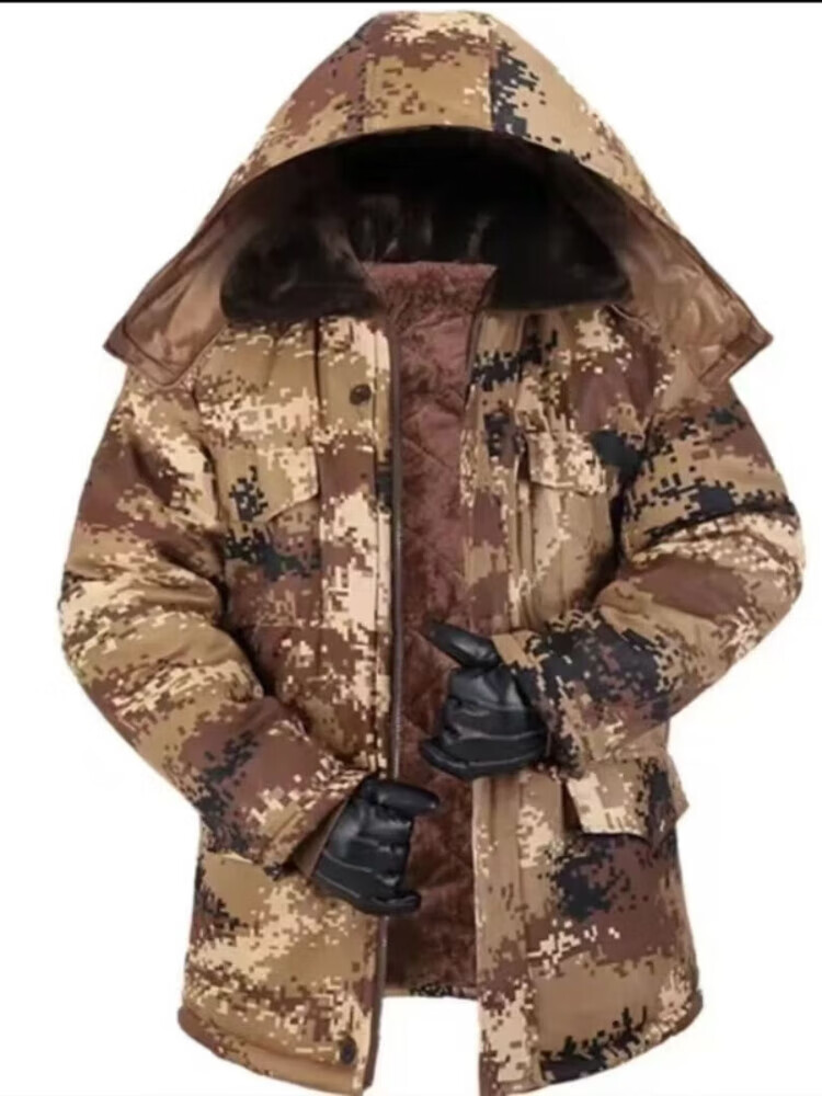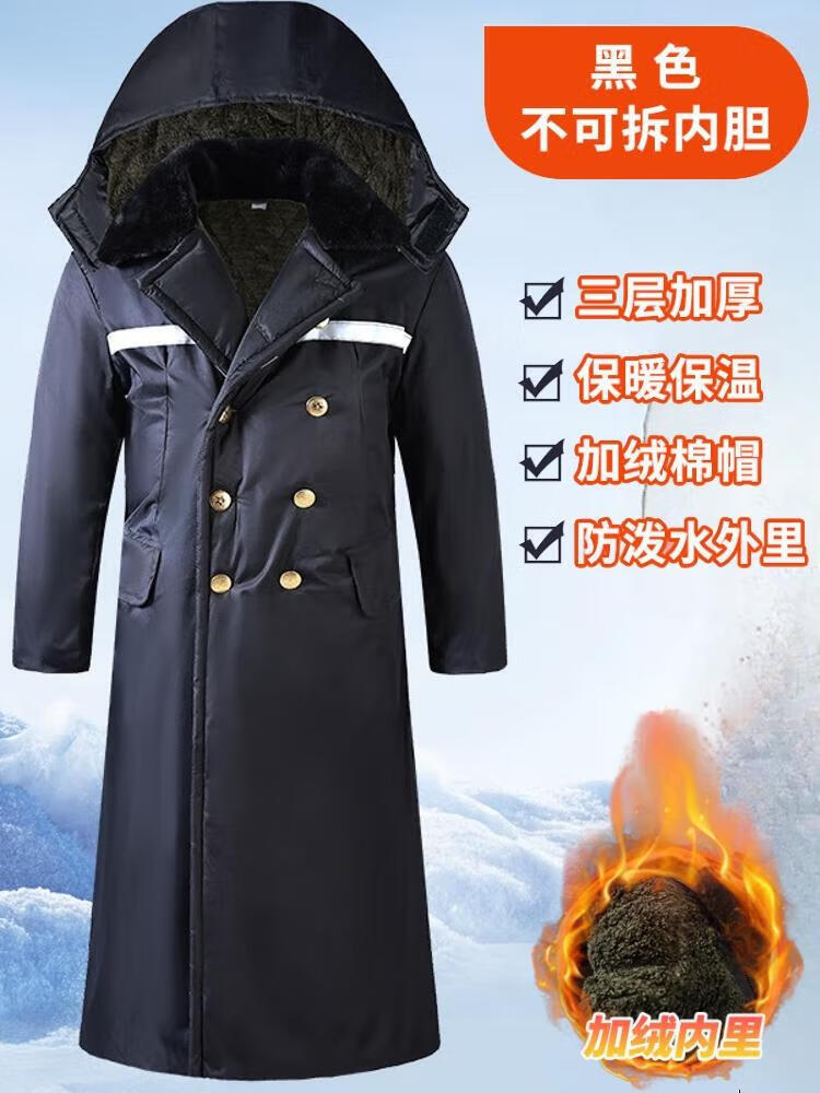 Muzisheng (MUZISHENG) medium-length cotton coat for men with velvet and thickening for construction site work, labor protection cotton clothing, cold storage cold-proof clothing, cotton coat and camouflage coat, black busy medium-length cotton coat with hood 2XL recommended 100-135Jin Jin is equal to 0.5 kg