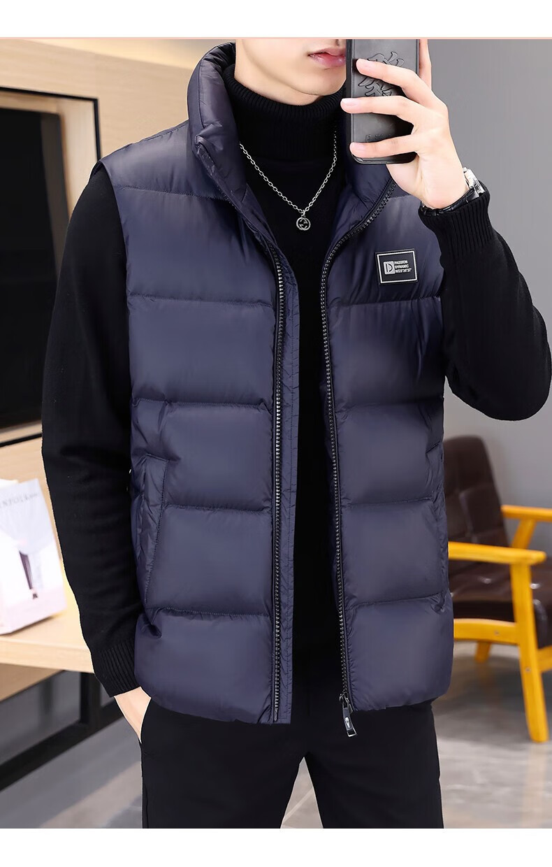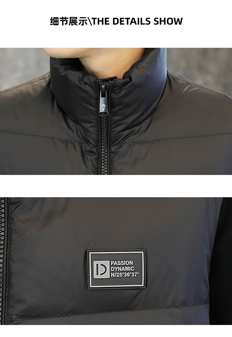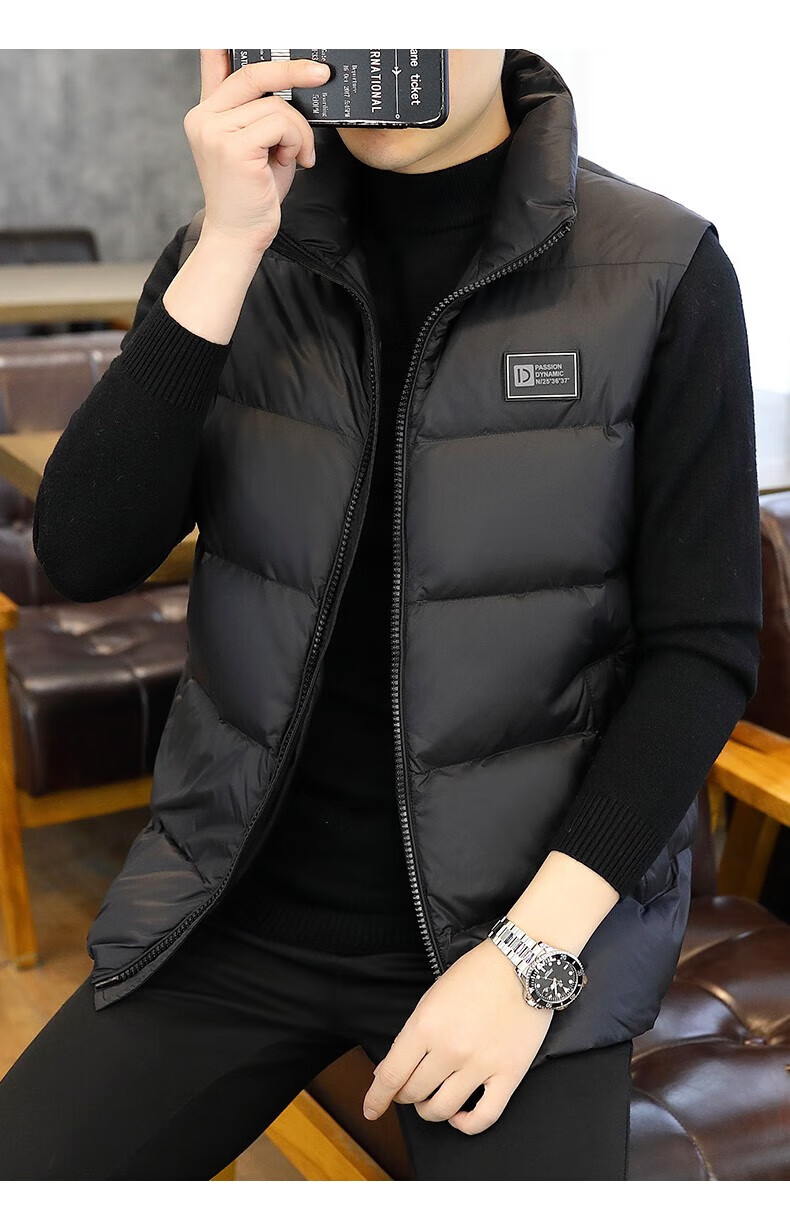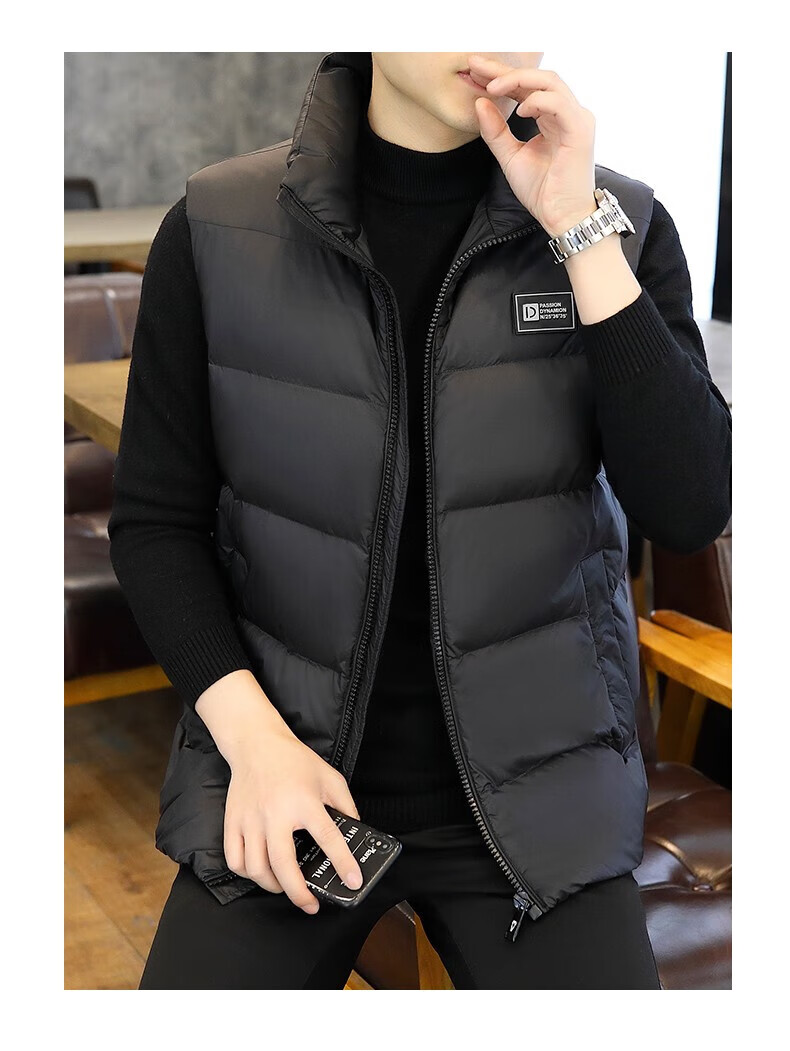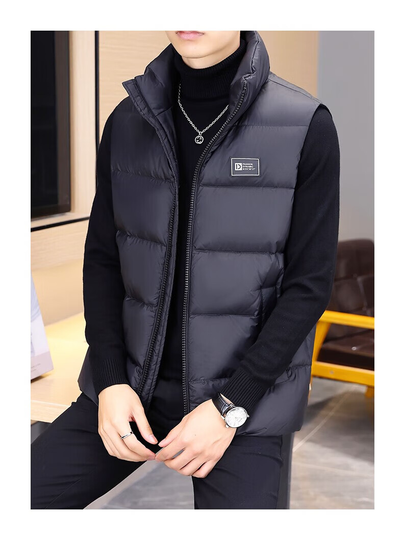 Duck Down Vest Short Style Autumn and Winter New Style Stand Collar Business Casual Comfort Versatile Men's Warm Outer Wear Vest PG Black L (175)