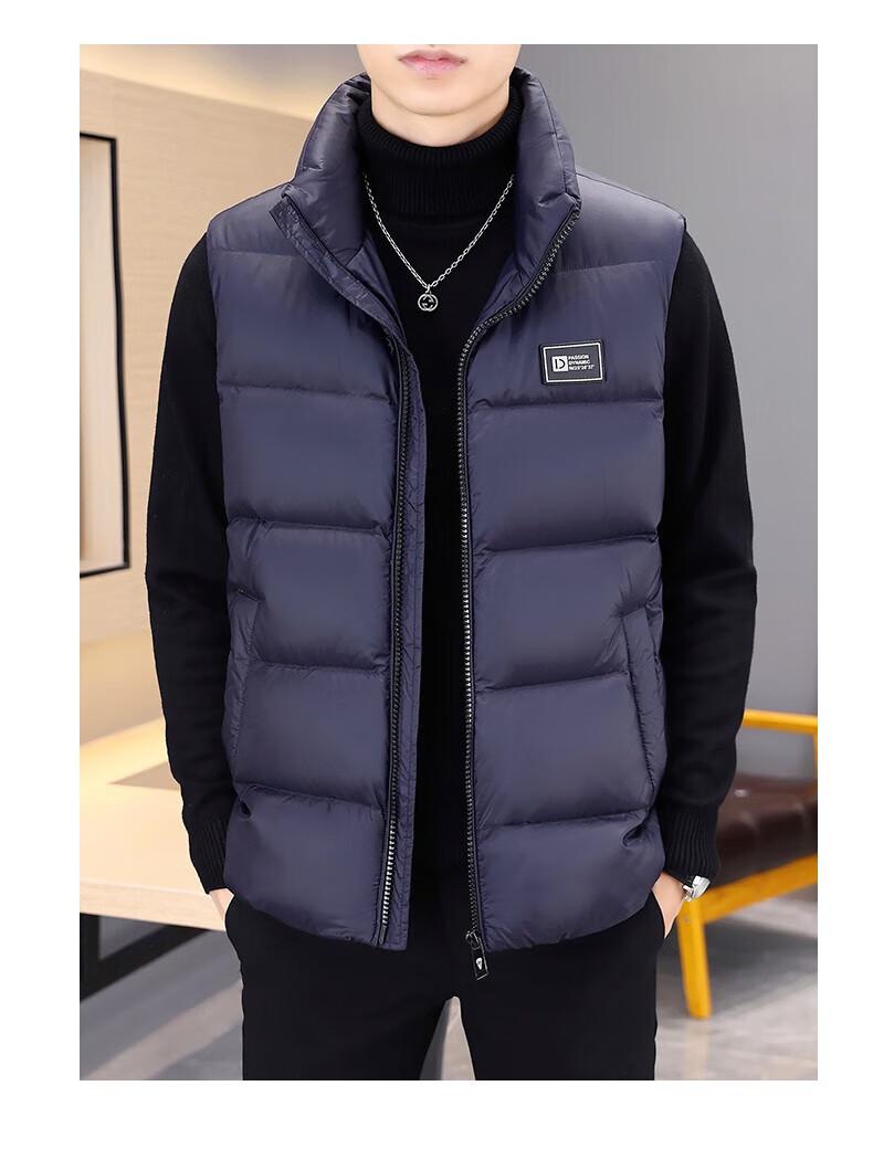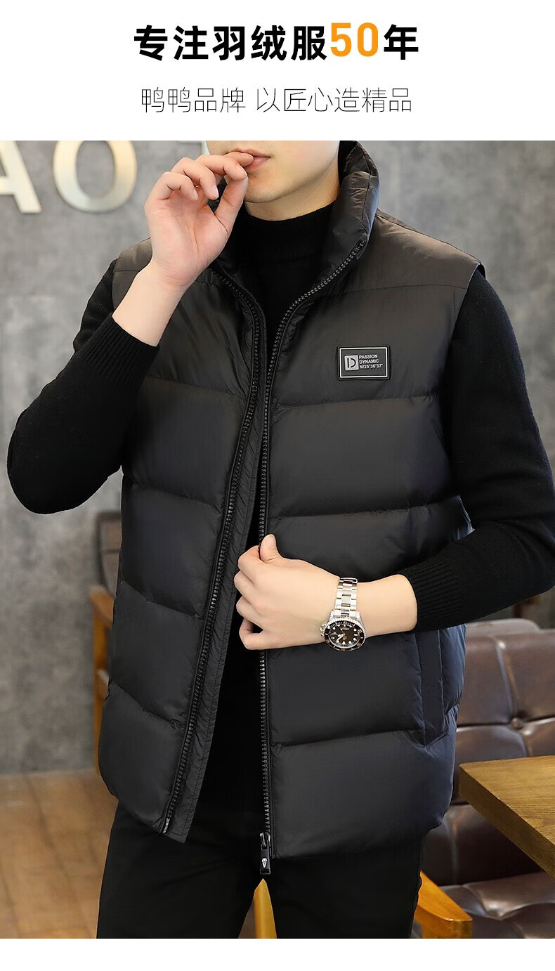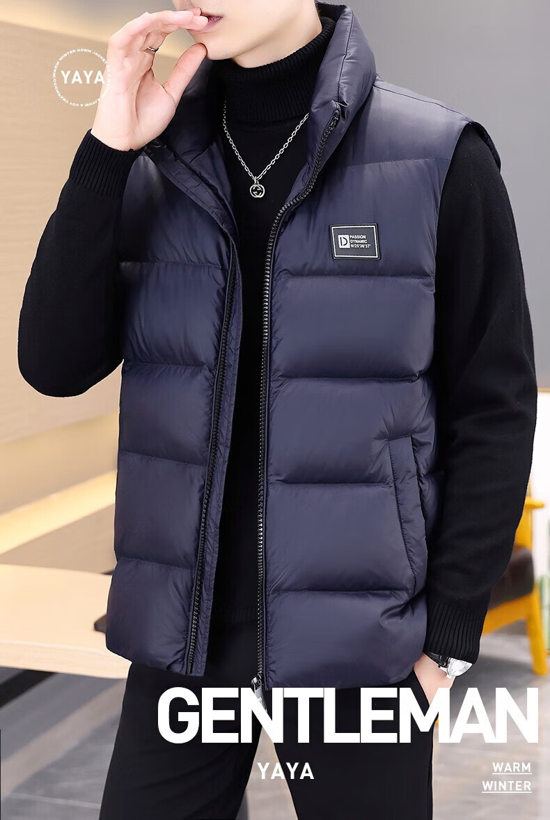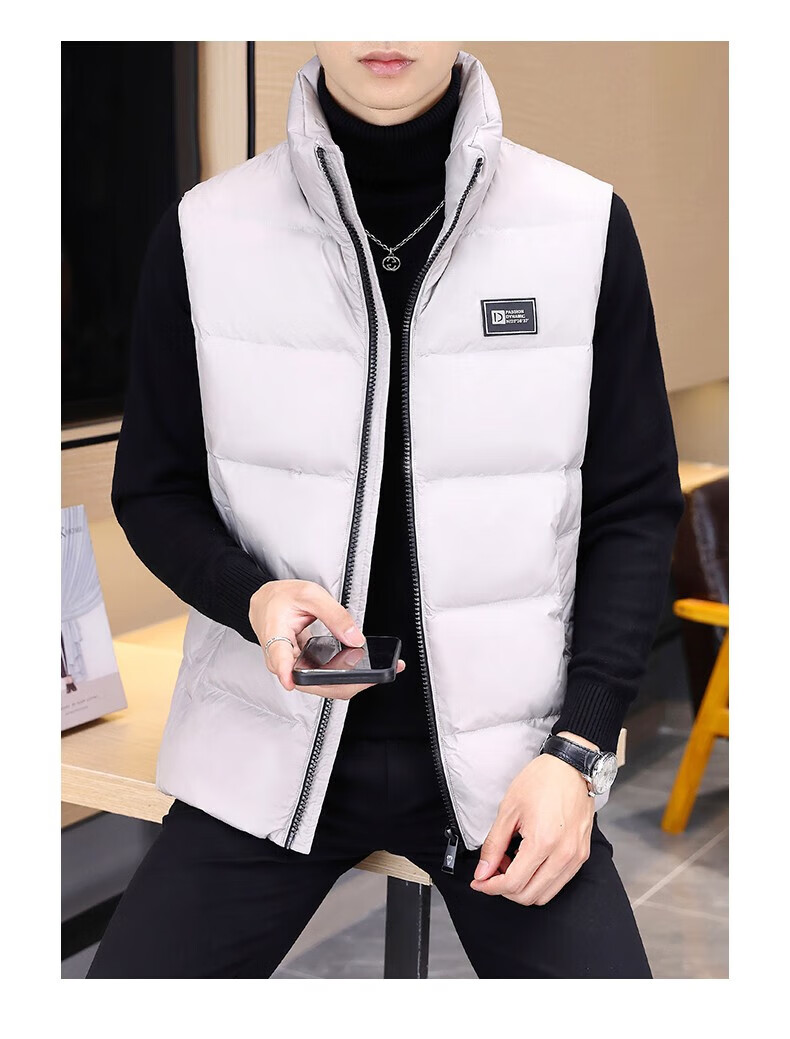 Duck Down Vest Short Style Autumn and Winter New Style Stand Collar Business Casual Comfort Versatile Men's Warm Outer Wear Vest PG Black L (175)
