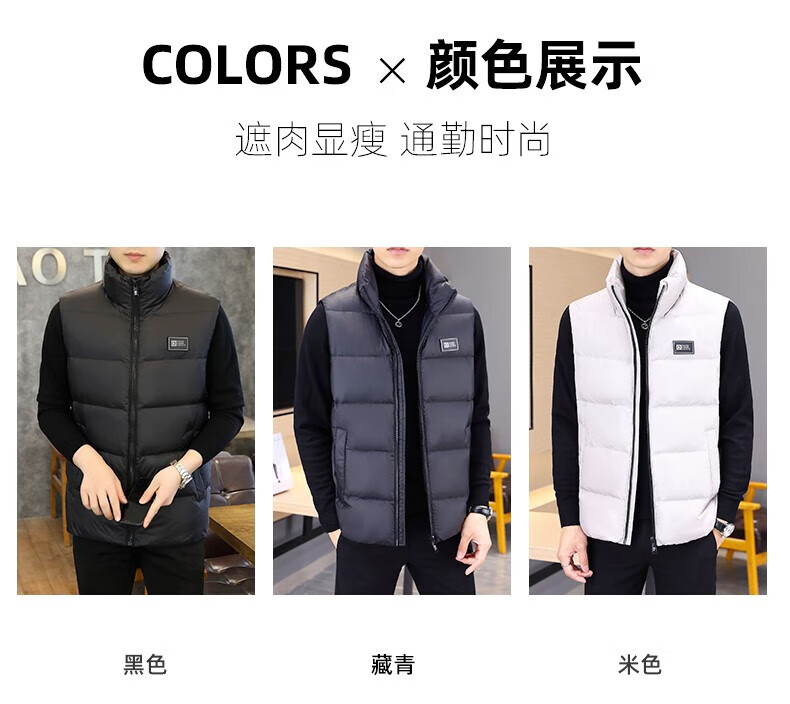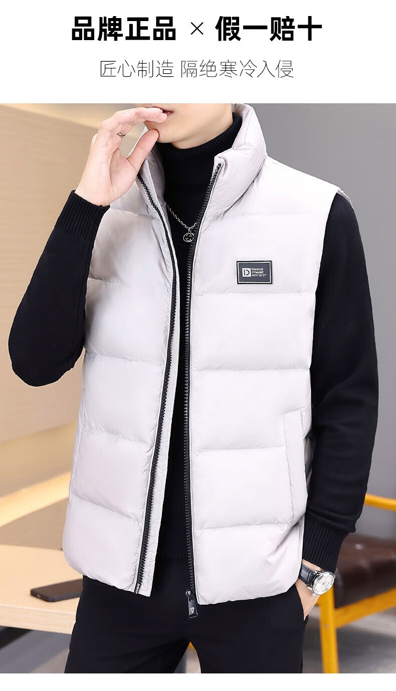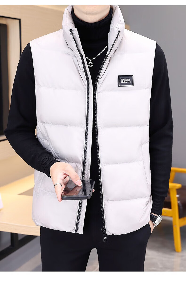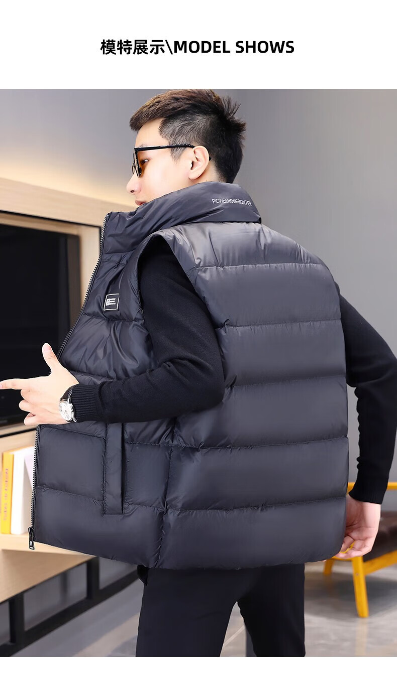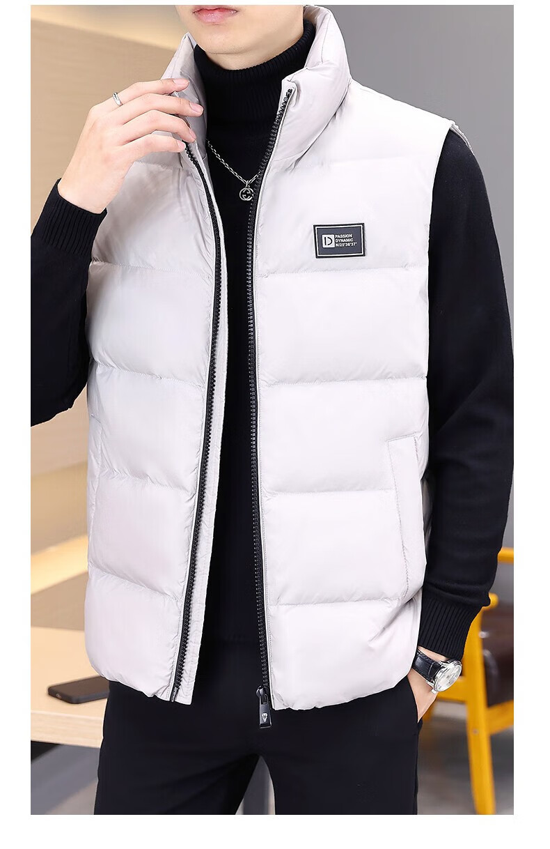 Duck Down Vest Short Style Autumn and Winter New Style Stand Collar Business Casual Comfort Versatile Men's Warm Outer Wear Vest PG Black L (175)
