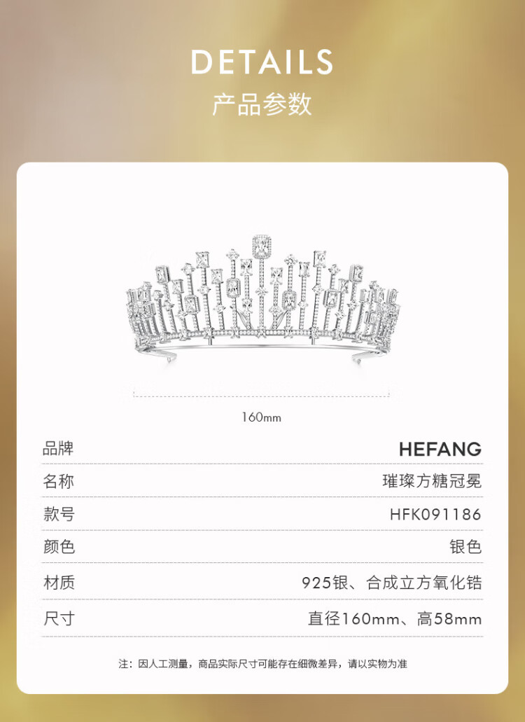 HEFANG He Fang Jewelry Sparkling Sugar Cube Crown Elegant Ladies Light Luxury High-end Birthday Gift for Girlfriend Silver (Customized products do not support returns or exchanges)