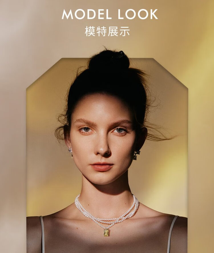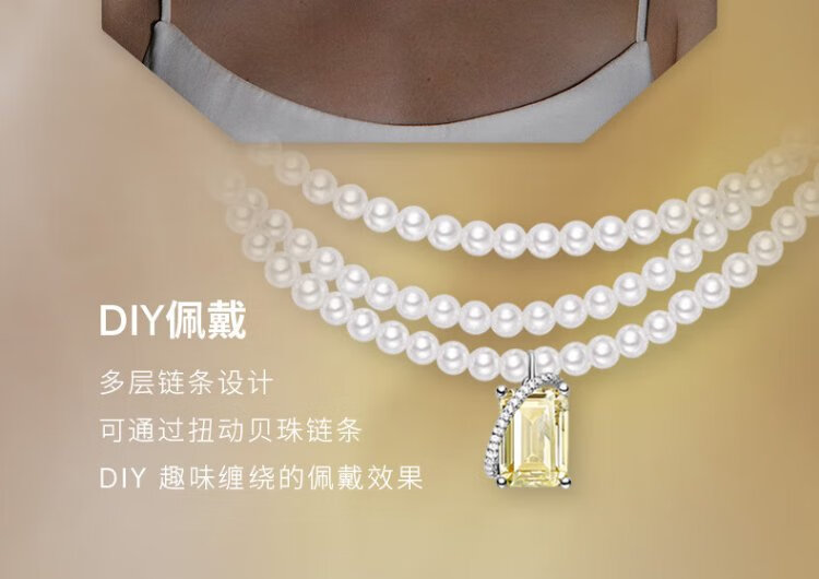 HEFANG He Fang jewelry gilt sugar cube three-layer chain clavicle chain light luxury high-end birthday gift for girlfriend yellow