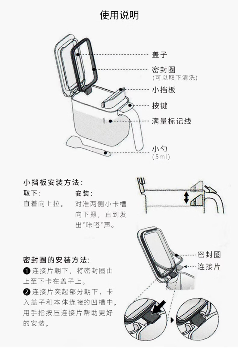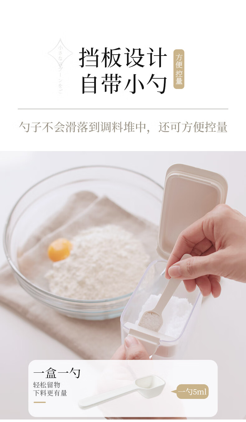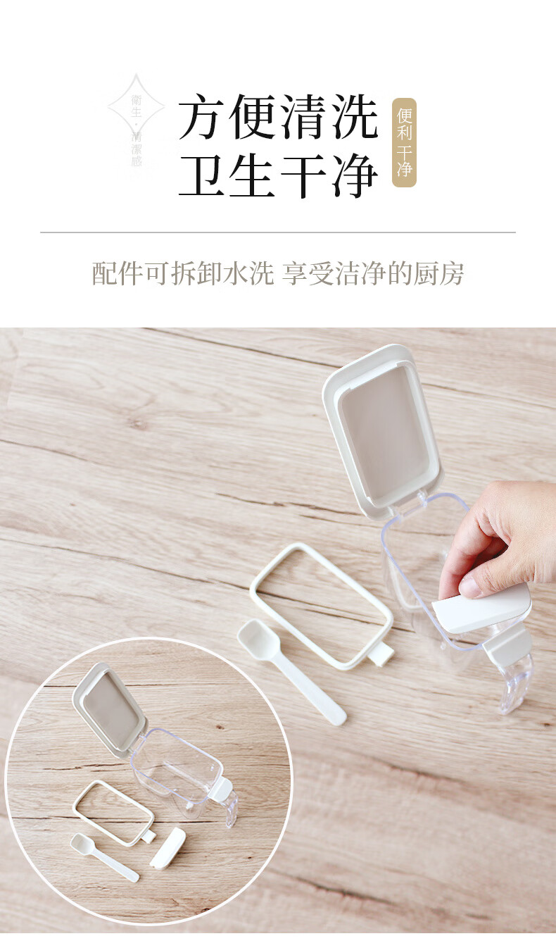 MARNA Japanese imported button-type seasoning box with removable sealing ring and integrated moisture-proof seasoning salt jar with spoon lid, narrow gray-370ml