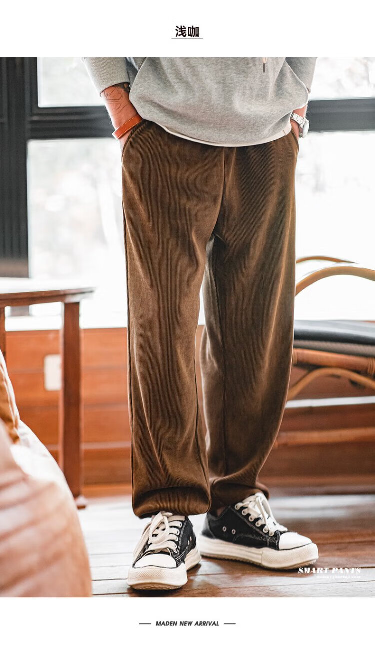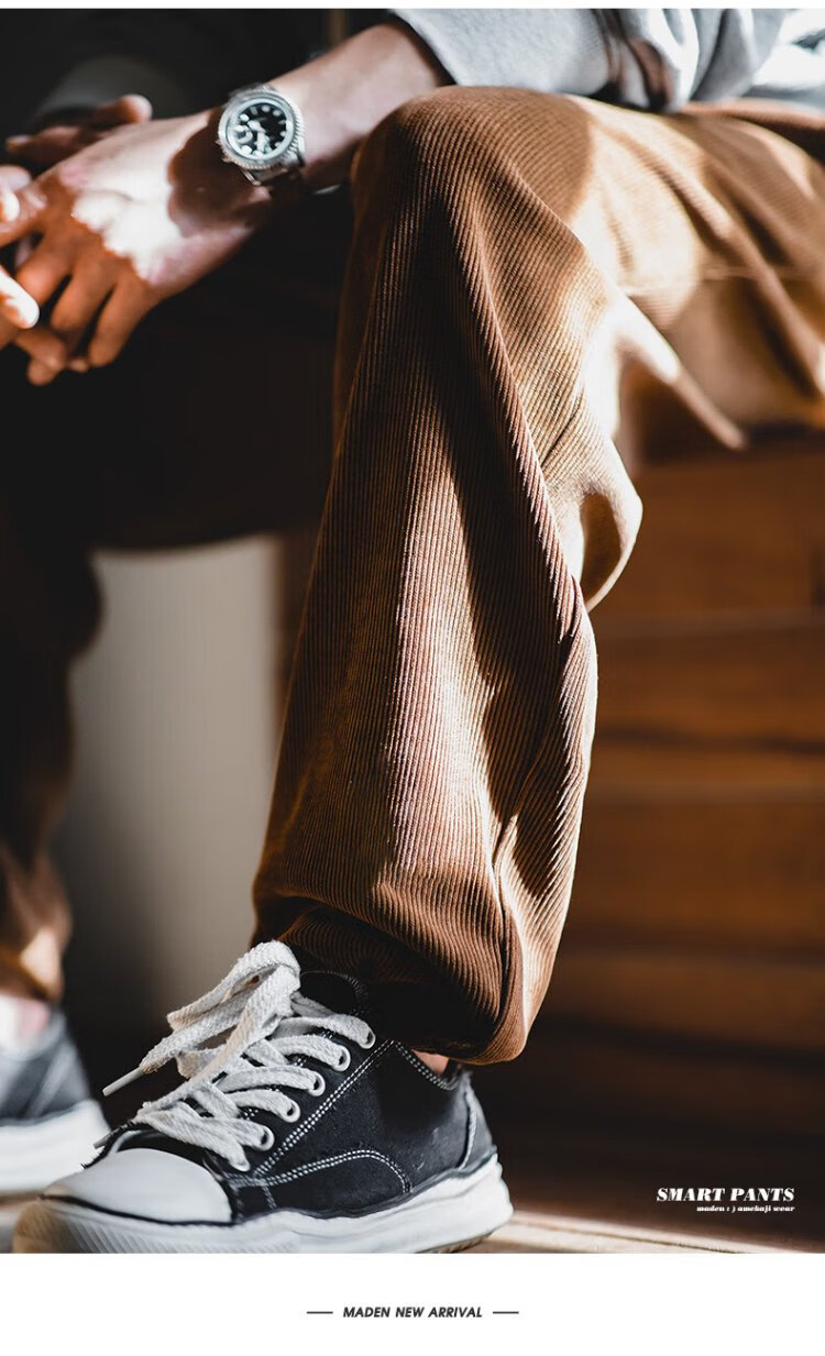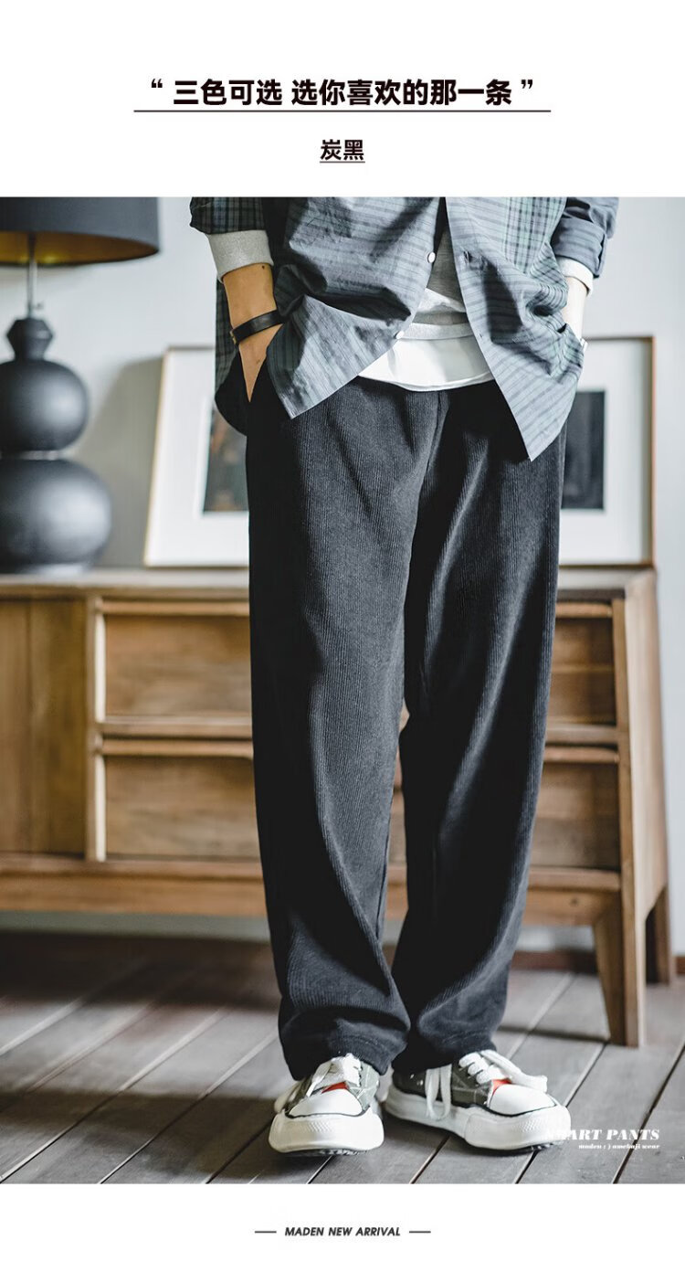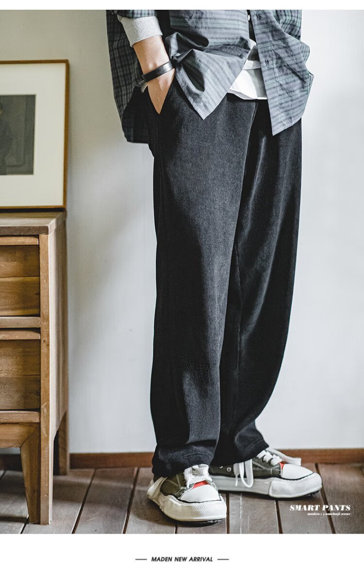 Madden Workwear Chenille Draped Smart Pants American Barn Style Straight Casual Pants Imitation Corduroy Legged Long Pants Men Black 2XL