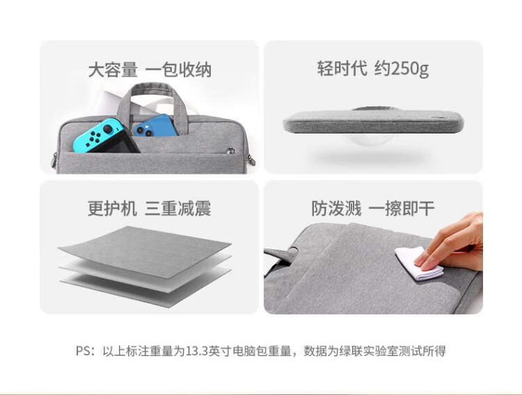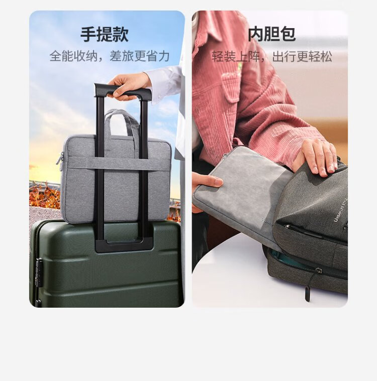Green Link Computer Bag Portable Laptop Bag Storage Bag Business Travel Suitable for Apple Huawei Lenovo Xiaoxin Double-Layer Upgrade/Plush Protector/14-14.9 Inch