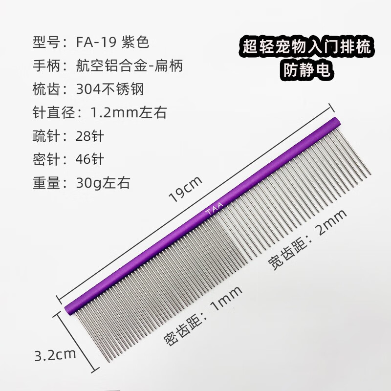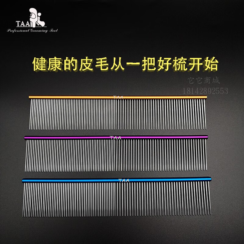 It it Taiwan TAA it it color pet groomer comb FA19 pet dog and cat refined aluminum handle comb entry style comb pink + needle comb cute pink