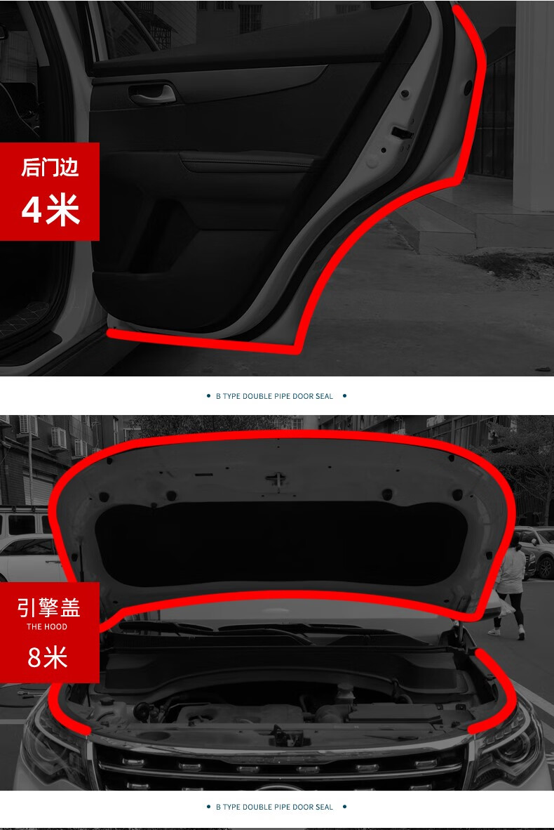 Yancheng car seal strip sound insulation strip double-layer thickened door side engine door seam car universal waterproof strip for the whole car new 8th generation extra large suitable for medium and large SUV/truck/van four doors + hood 32 meters + central control strip + tools