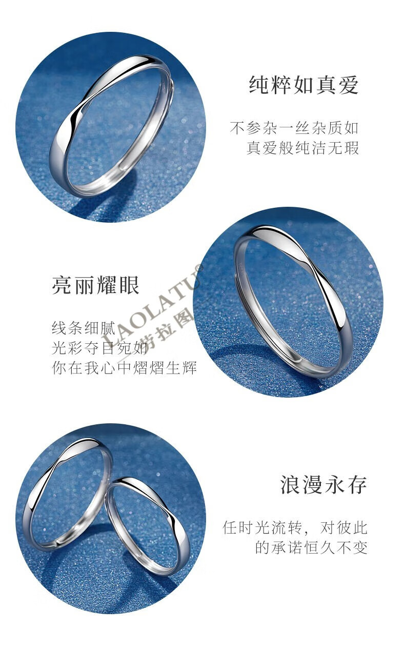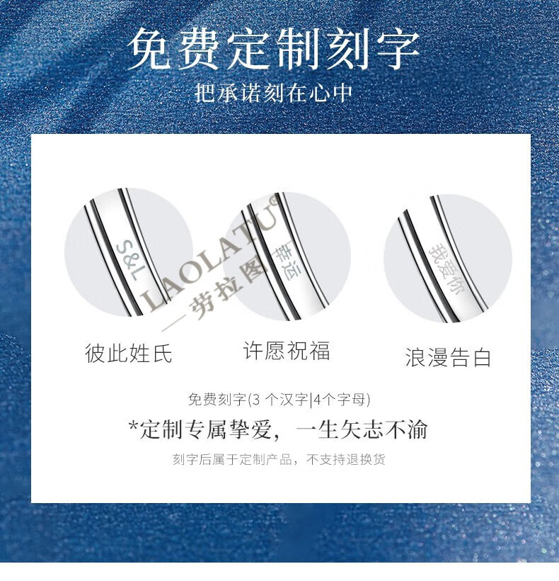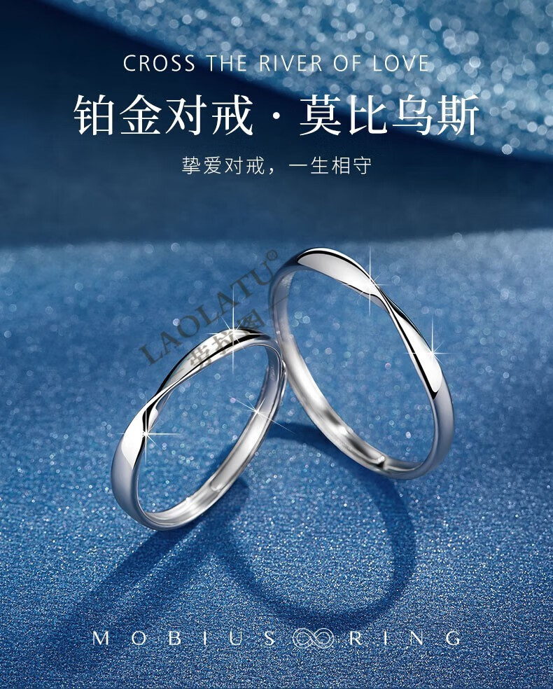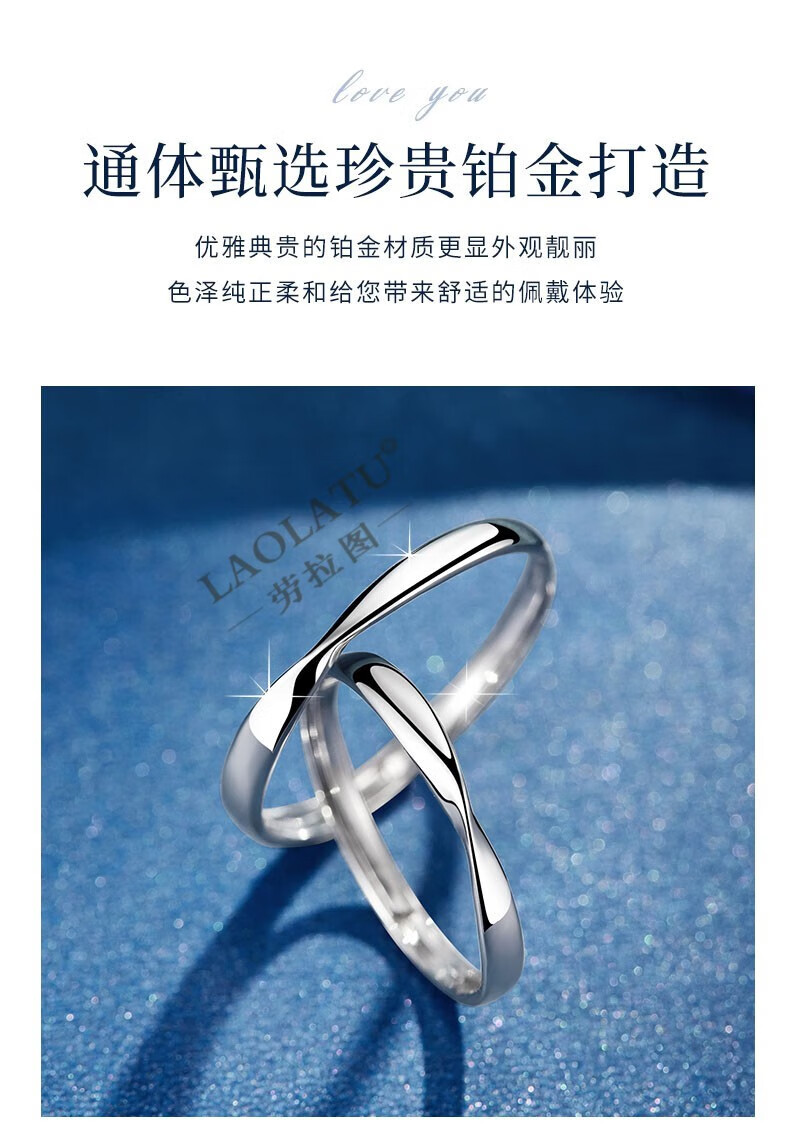 LAOLATU brand platinum couple ring for women PT950 platinum pair ring Spring Festival and New Year gift for girlfriend and wife, light luxury model-diamond model, free engraving