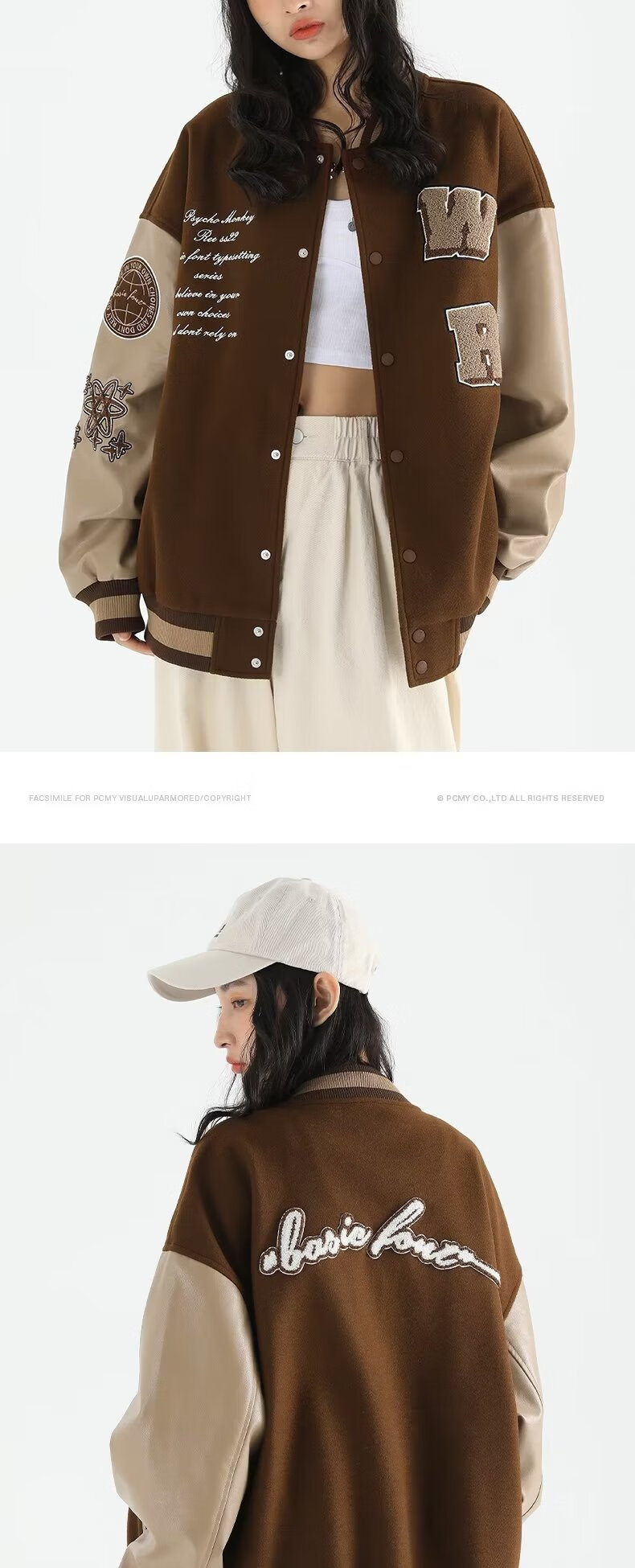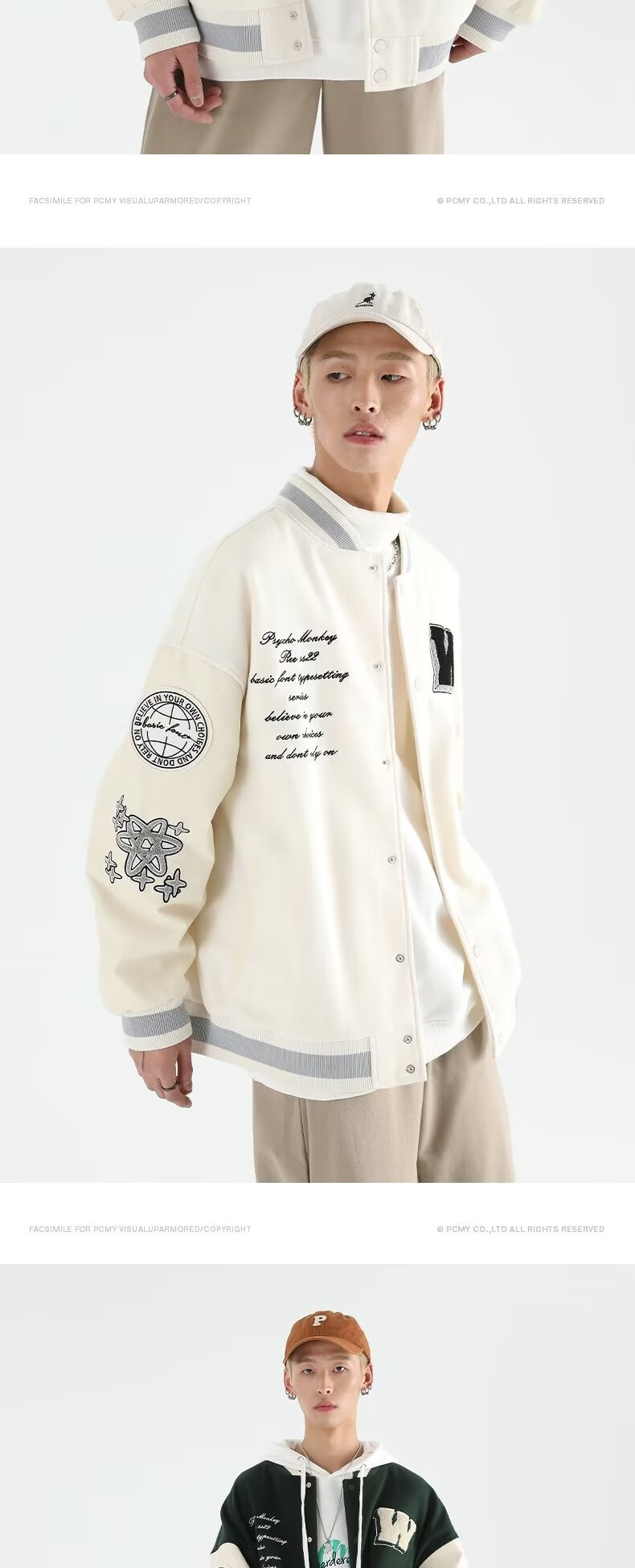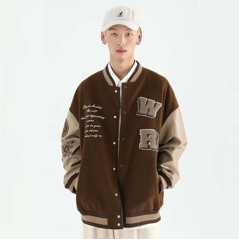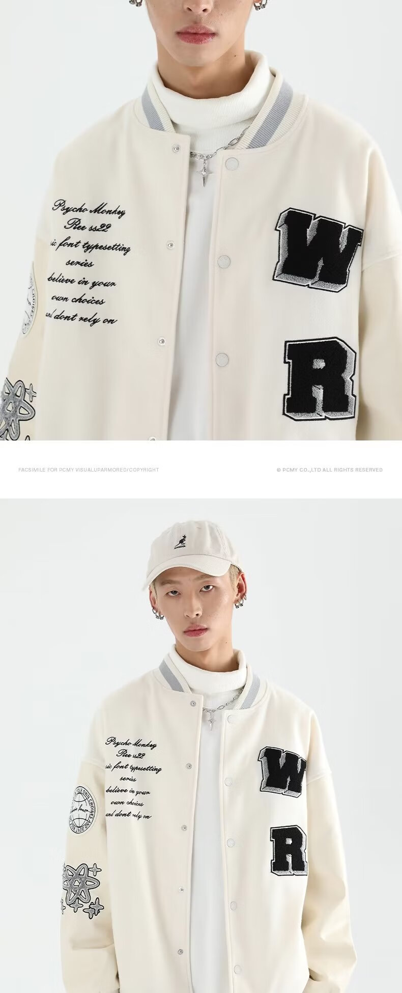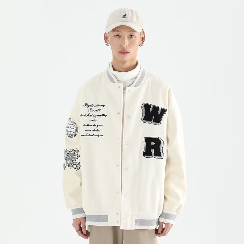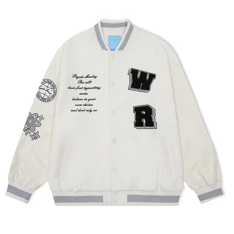 Taozilang high-end trendy joy PCMY American retro national trend hip-hop trendy brand loose couple woolen baseball uniform jacket men white M