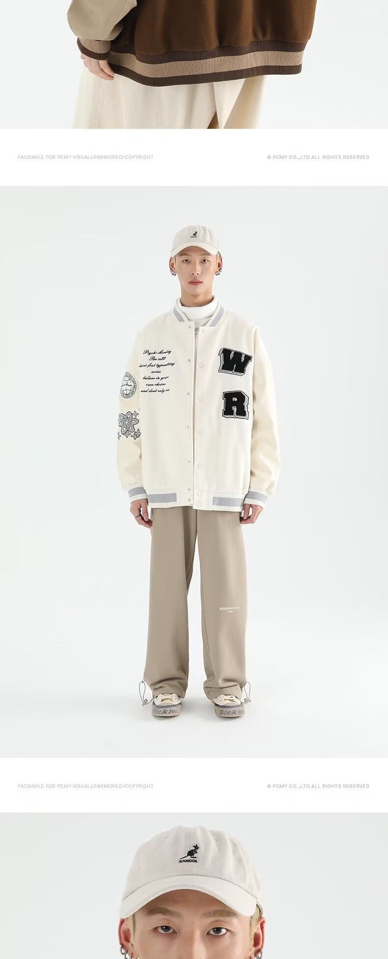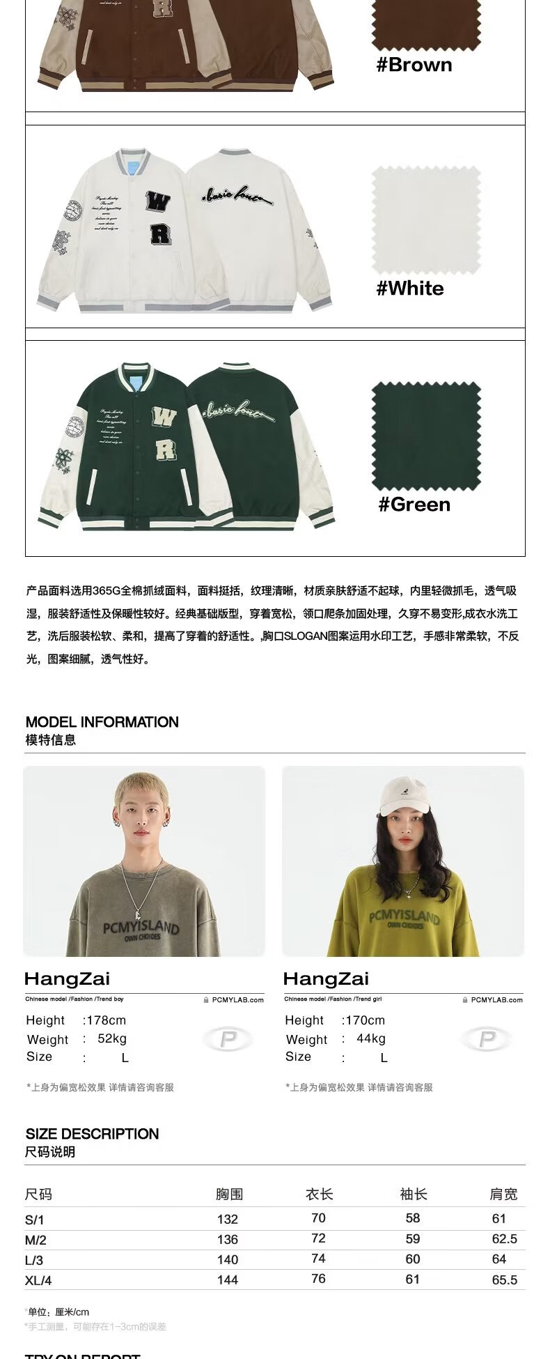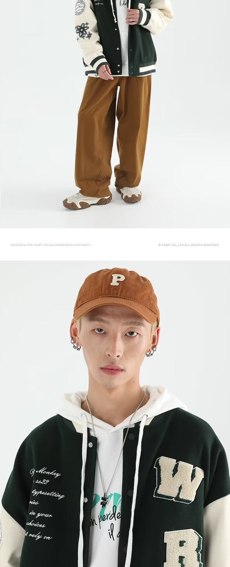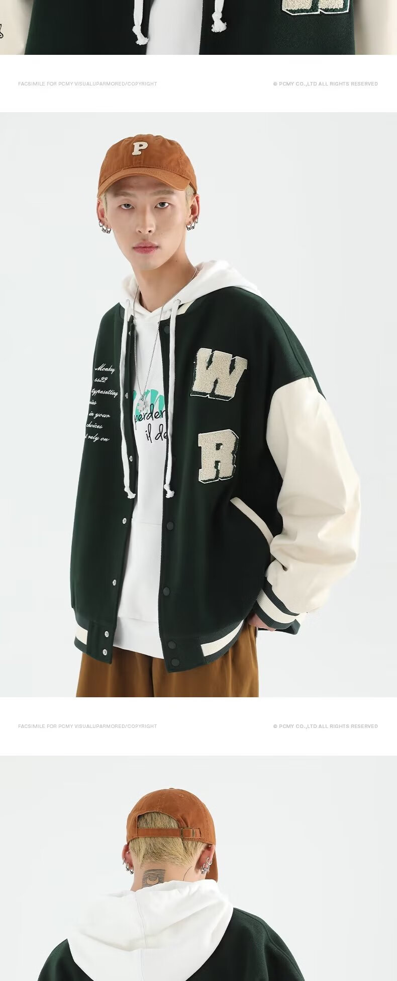 Taozilang high-end trendy joy PCMY American retro national trend hip-hop trendy brand loose couple woolen baseball uniform jacket men white M
