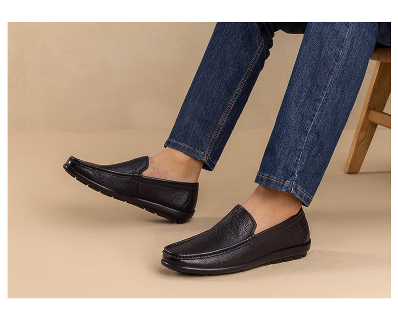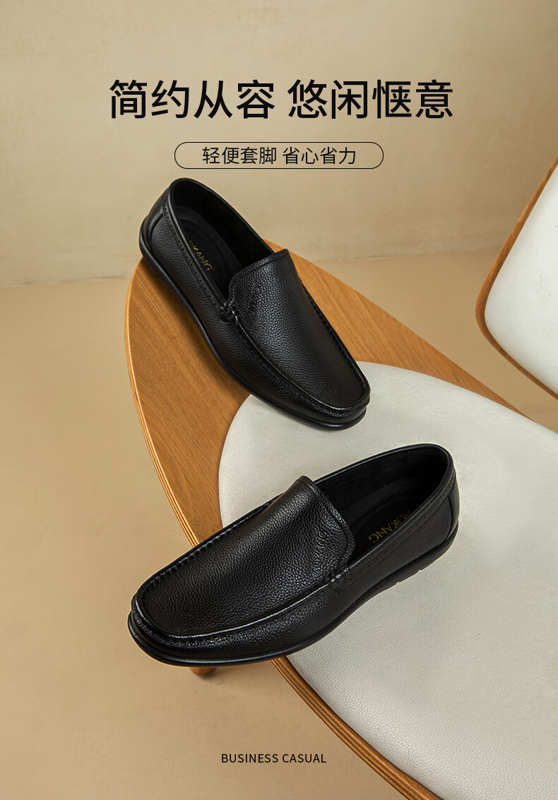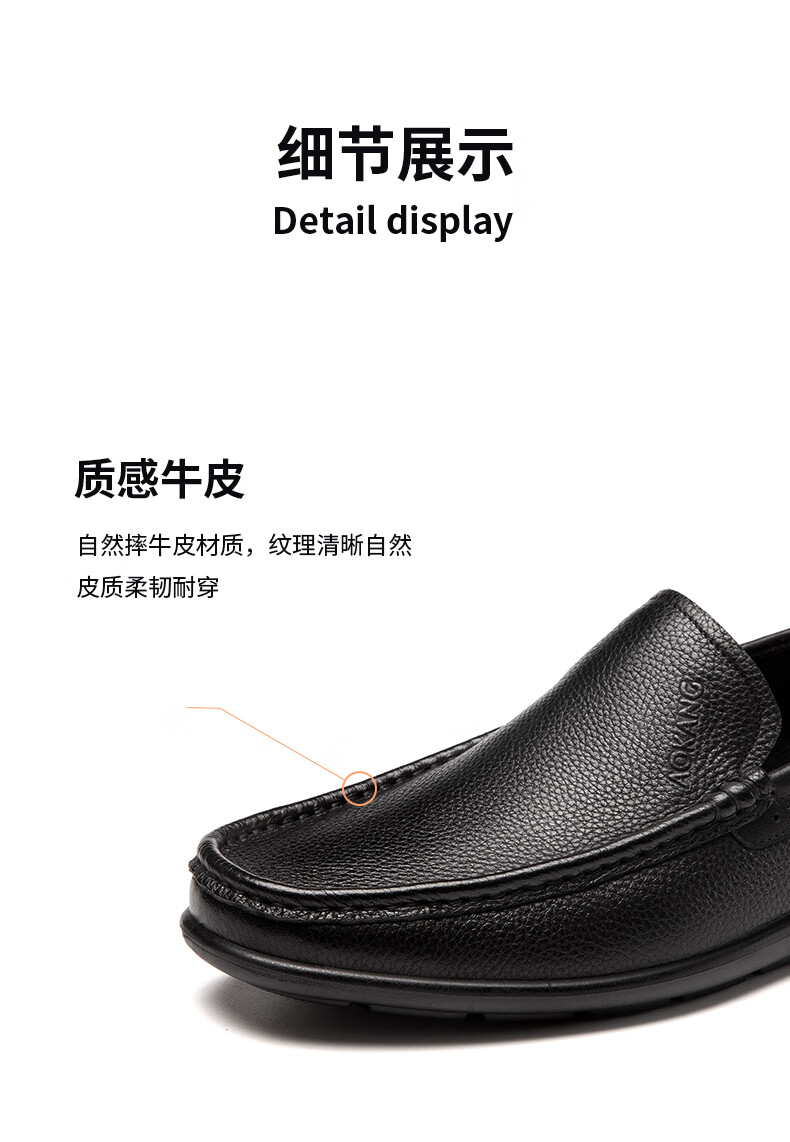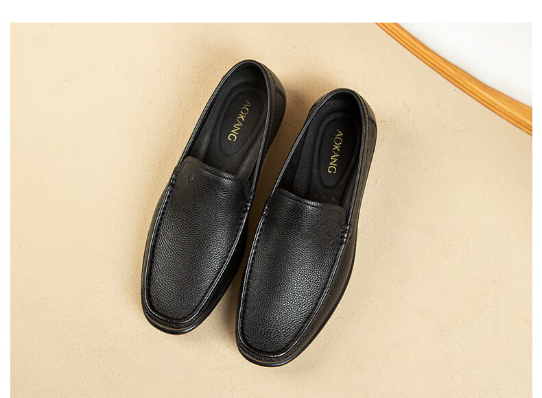Aokang official men's shoes, spring and autumn men's slip-on business casual leather shoes, versatile genuine leather soft-soled loafers, black T253424007B 40 250mm