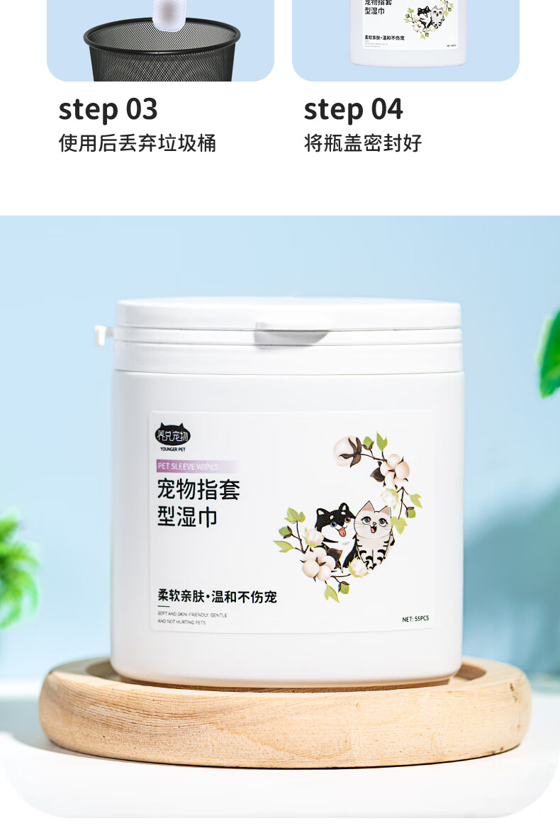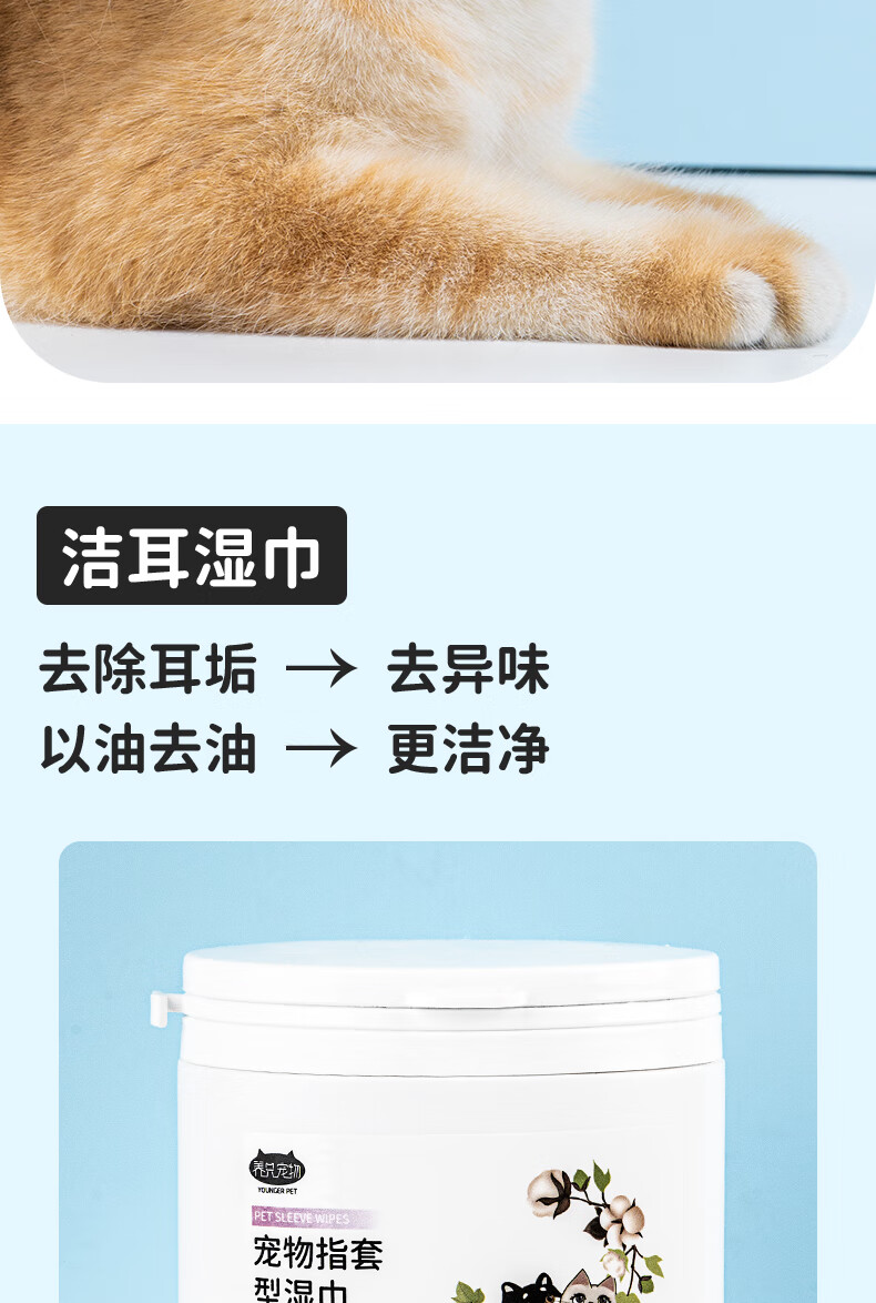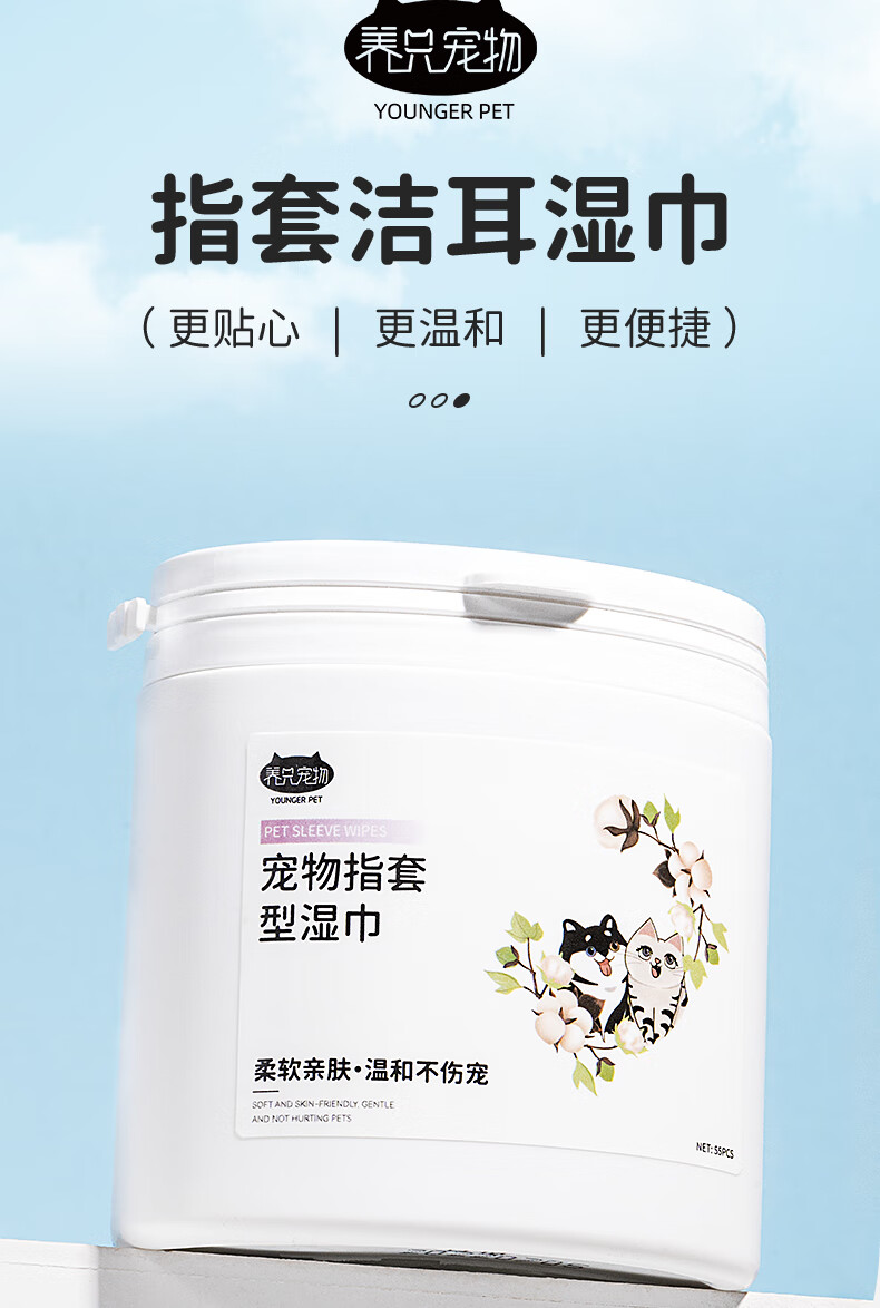 Keep a Pet (YOUNGER PET) Pet Ear Finger Cots for Dogs and Cats Cleaning and Removal Wipes for Cleaning Cats Ear Canal Ear Mites Ear Cleansing Liquid Pet Finger Cot Type Wet Wipes 55 Pieces