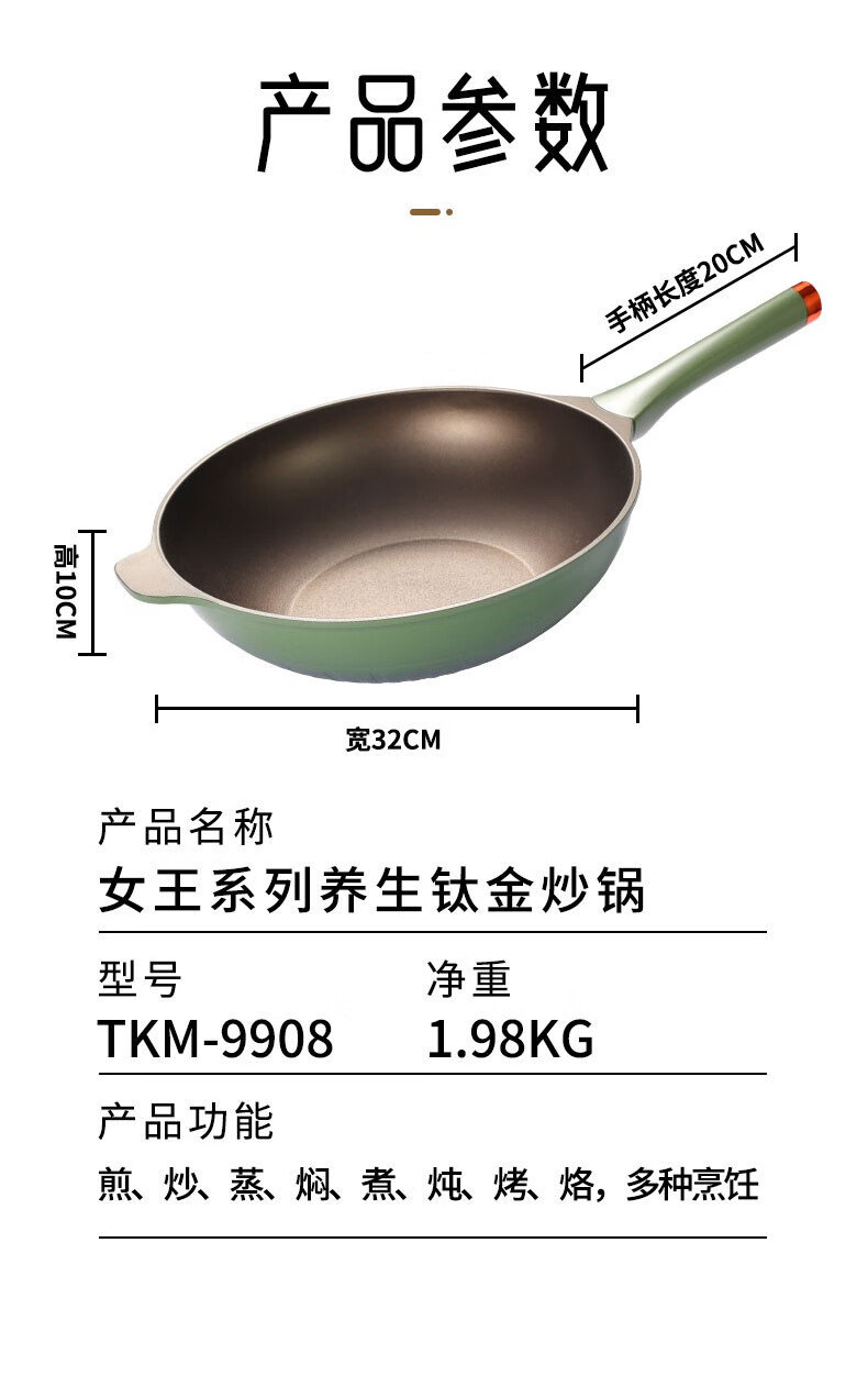 Murata Inao wok titanium pan non-stick wok wok pan frying pan dual-purpose titanium pan titanium alloy steak pan Morand 32-titanium pan-frying pan
