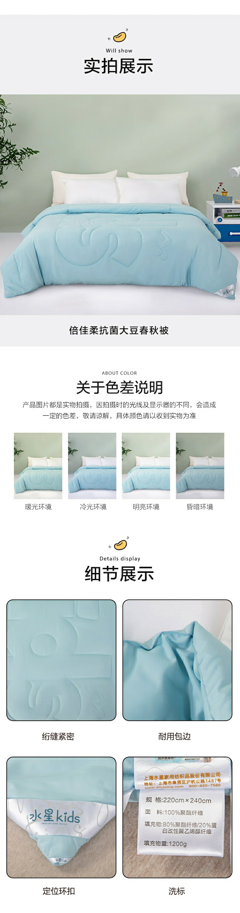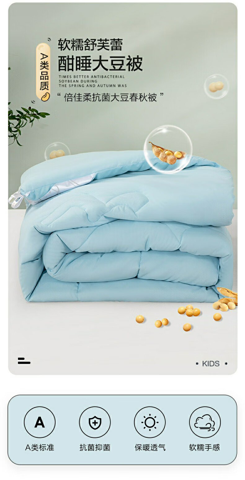 Mercury Home Textiles Soybean Fiber Quilt Infant Class A Standard Single and Double Autumn and Winter Thickened Warm Quilt Core Class A Quality Soybean Fiber Winter Quilt 200x230cm (Adapted to 1.5m bed set)