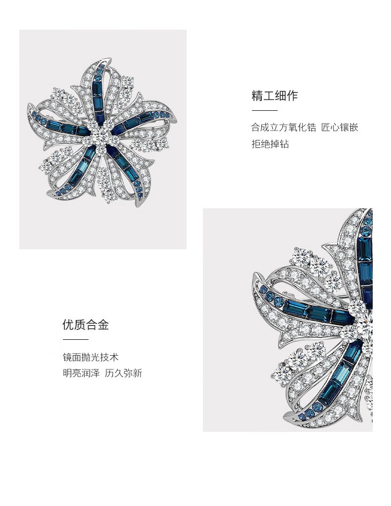 Jay's new Austrian brooch high-end female corsage birthday gift for elder mother and mother-in-law blue