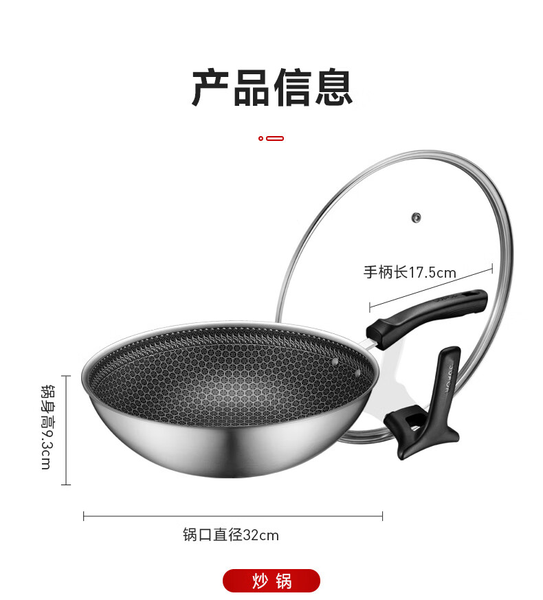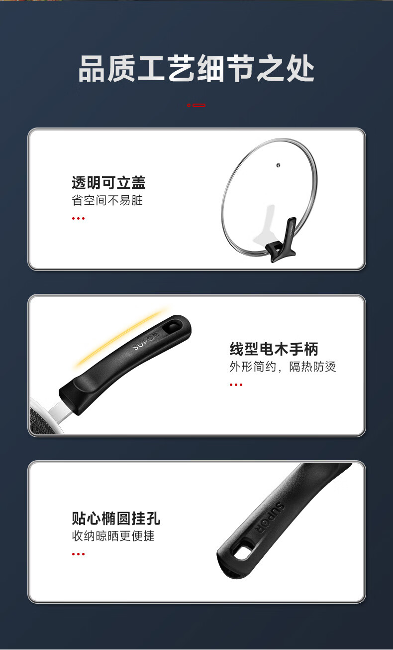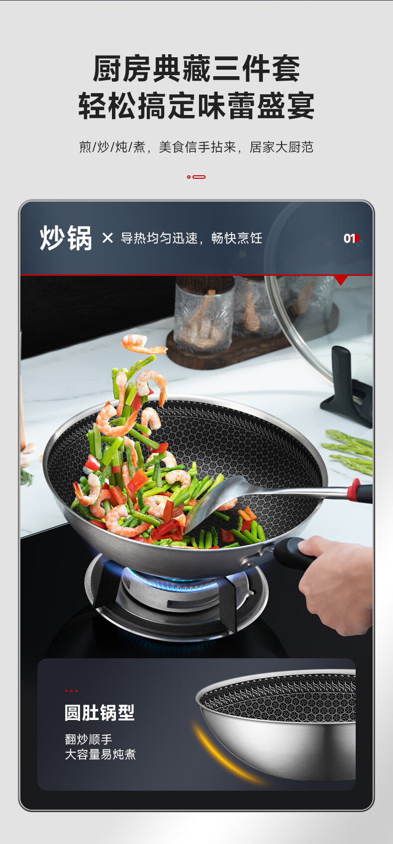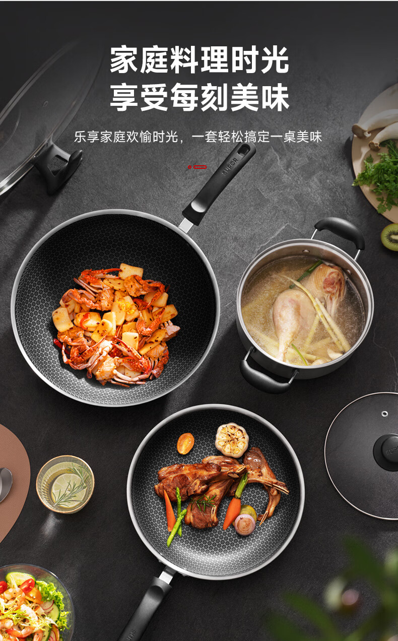 SUPOR pot set non-stick honeycomb crystal stainless steel three-piece set home kitchen wok frying pan soup pot healthy TP2212E