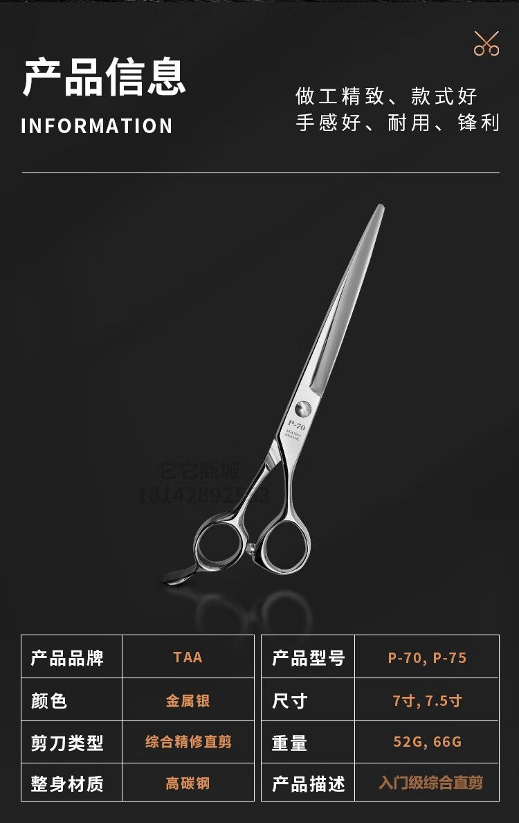 TAA Taiwan taa it it 7.5-inch P-75 straight cut fine trimming pet grooming scissors P-70 for pet shops 7.5-inch straight cut P75