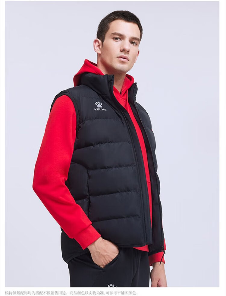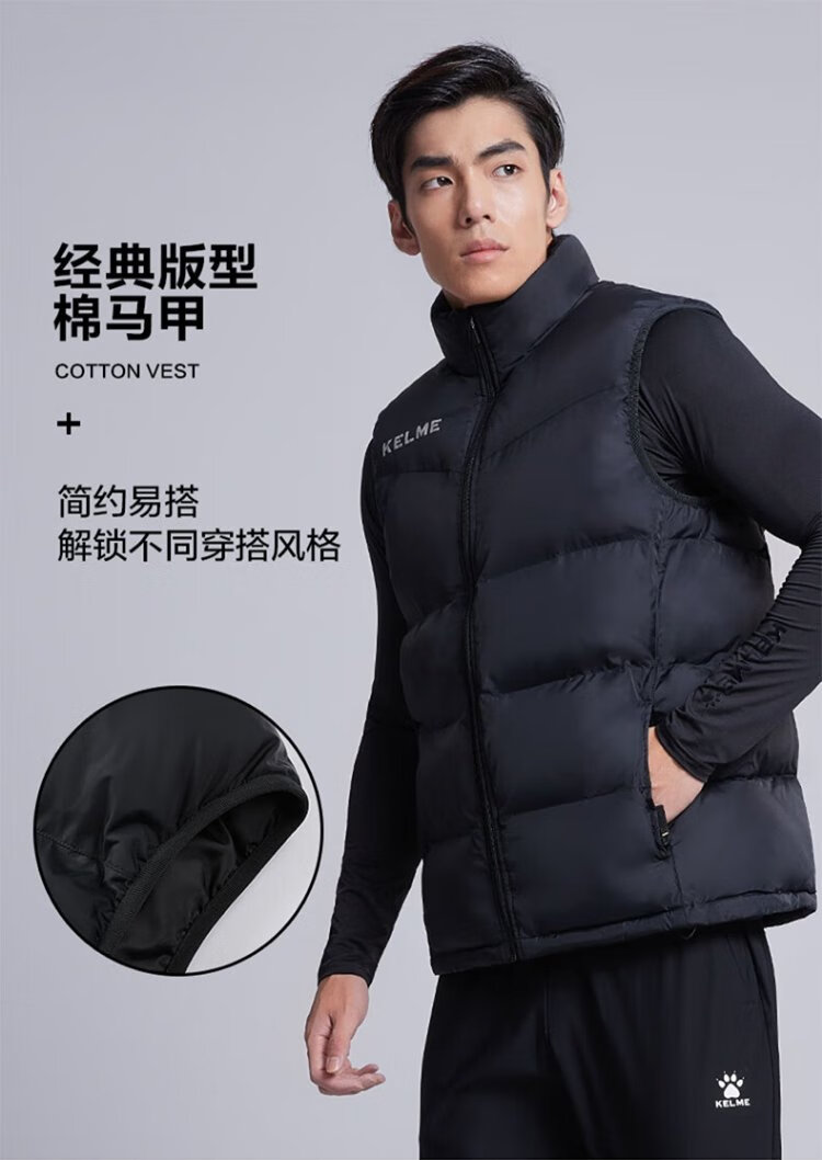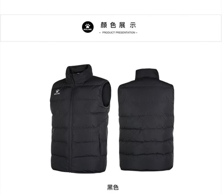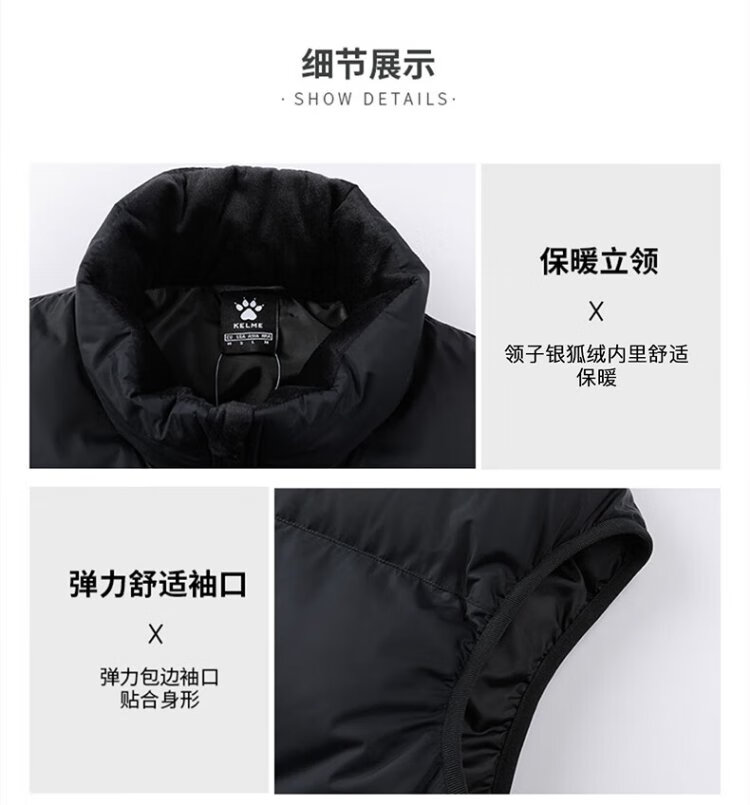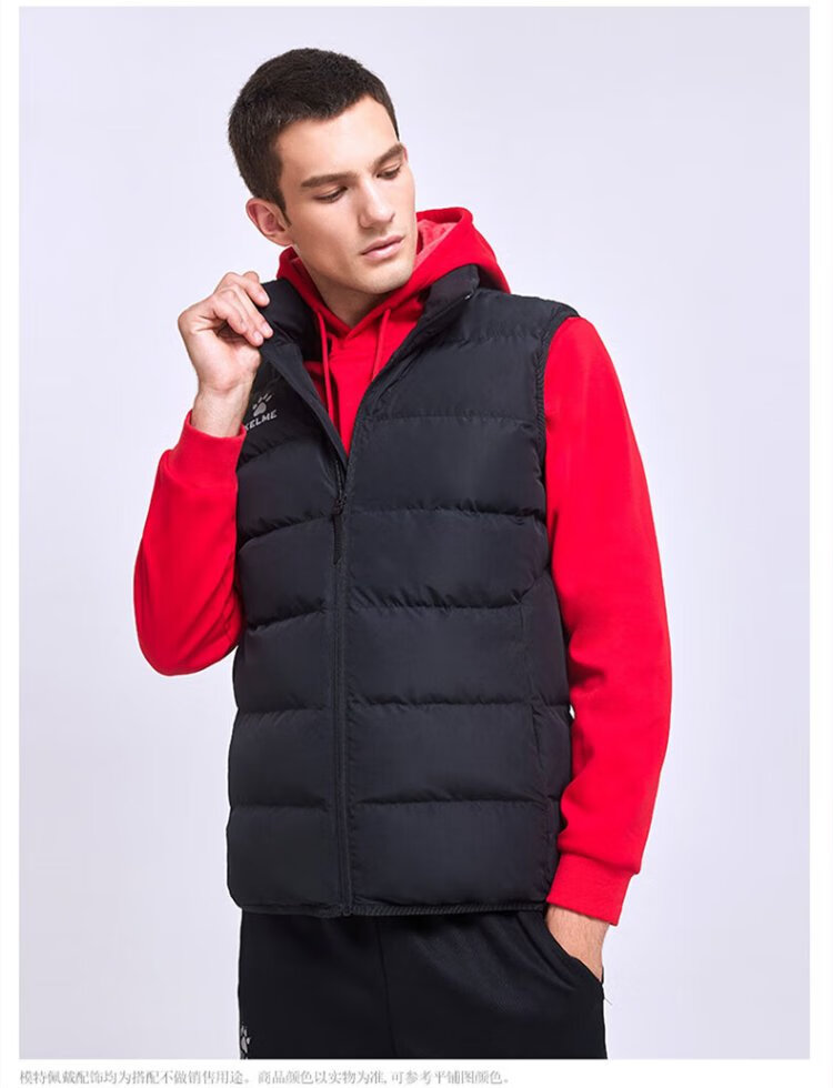 KELME Sports Cotton Vest Men's New Football Training Cotton Vest Thickened Warm Vest Running Cotton Clothes Black L