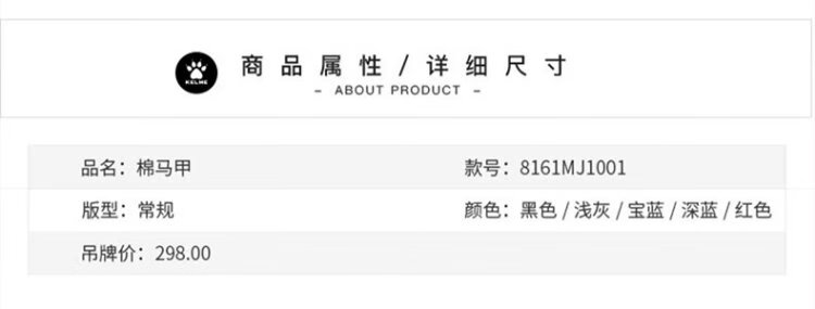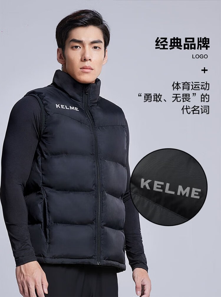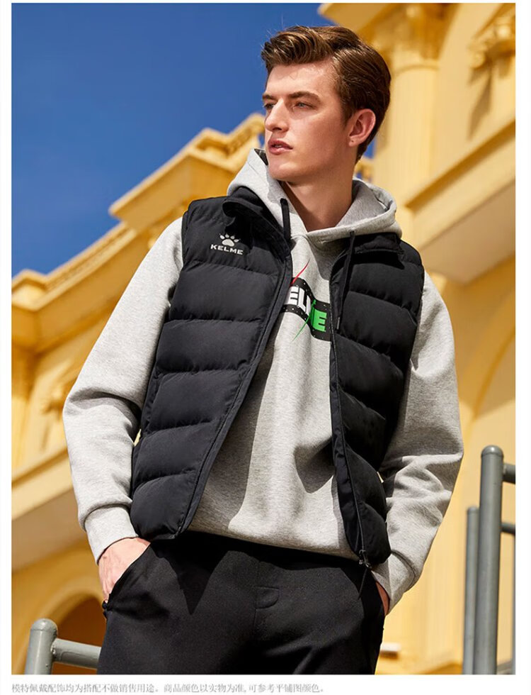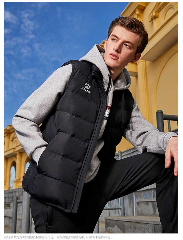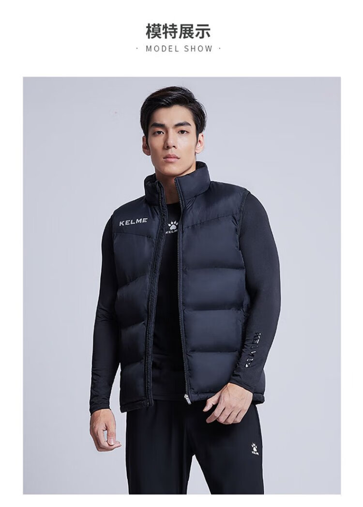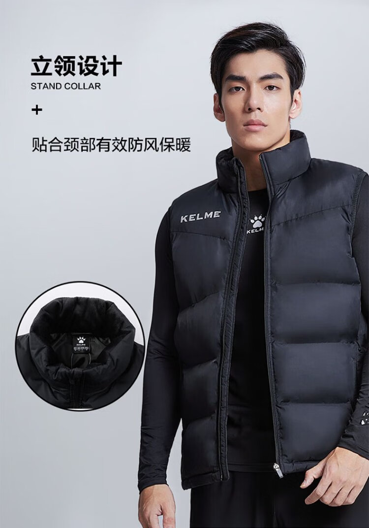KELME Sports Cotton Vest Men's New Football Training Cotton Vest Thickened Warm Vest Running Cotton Clothes Black L