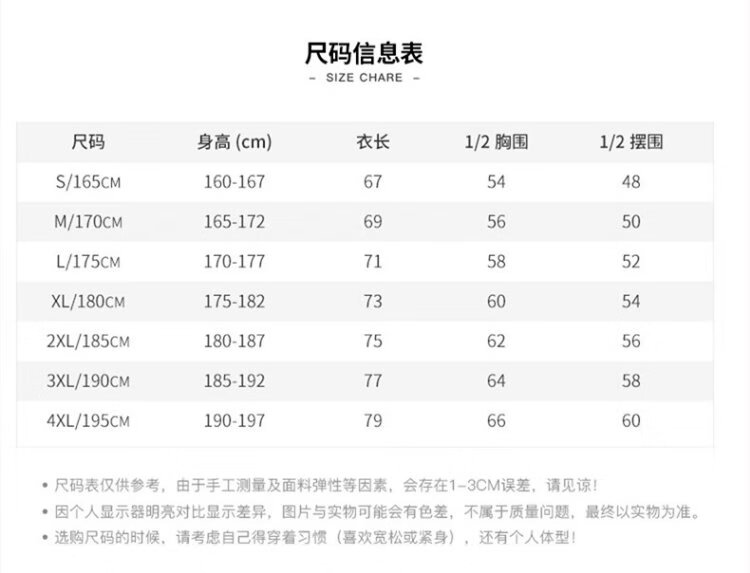 China (cm) 165 / 88-90 170 / 96-98 175 / 108-110 180 / 118-122 185 / 126-130