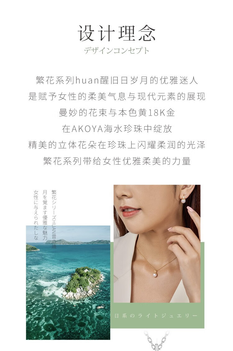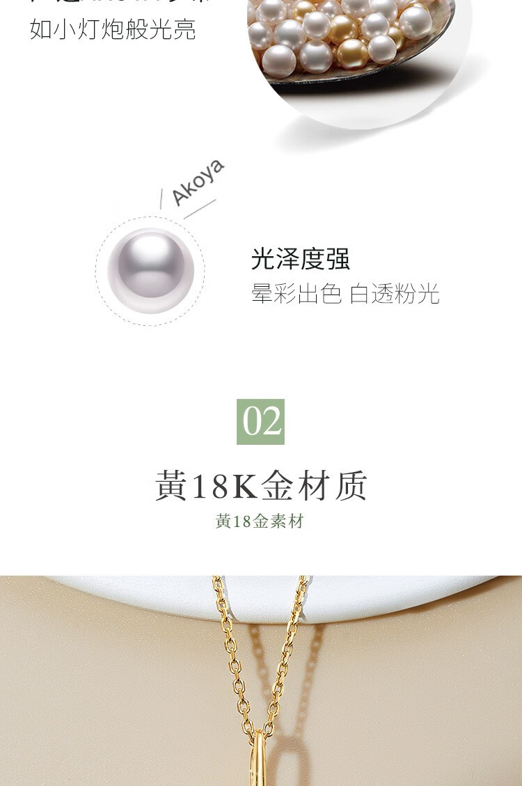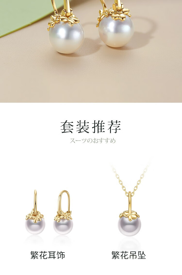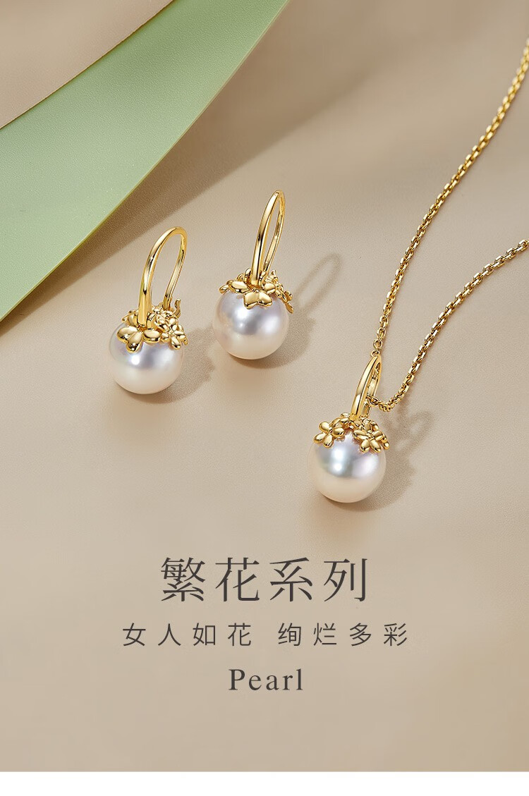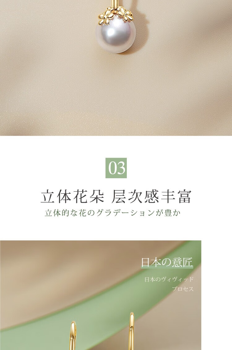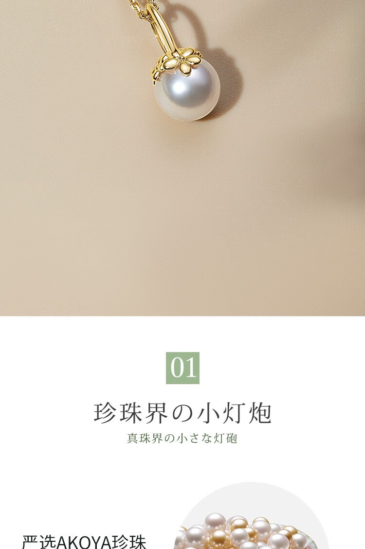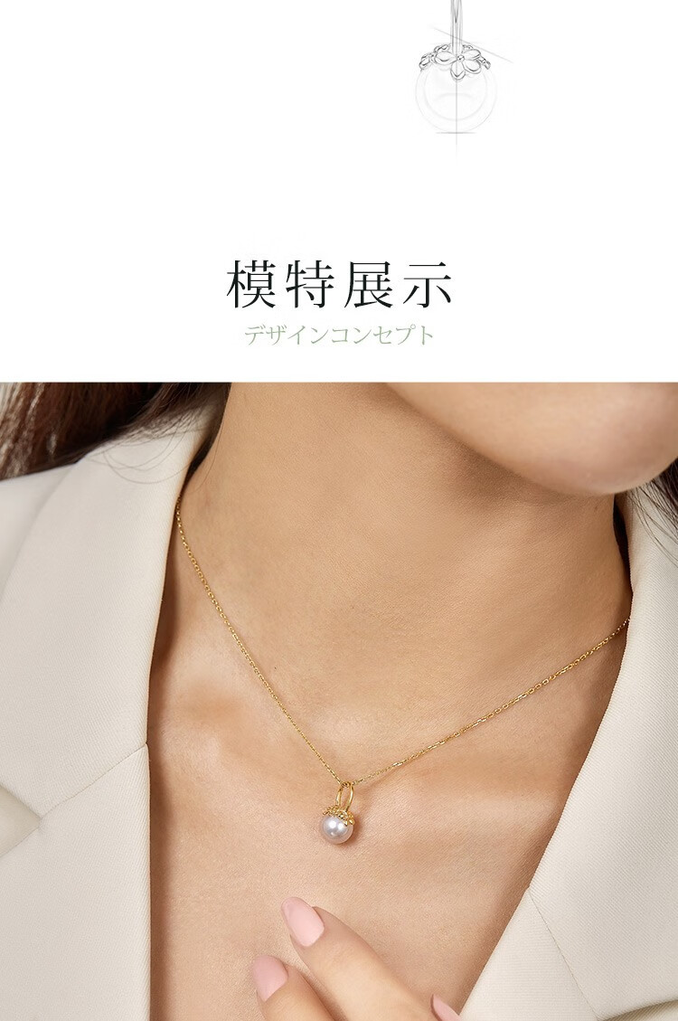 Meluxe18K gold akoya seawater pearl necklace pendant single round flower series birthday gift for wife Akoya8-8.5mm, with silver chain