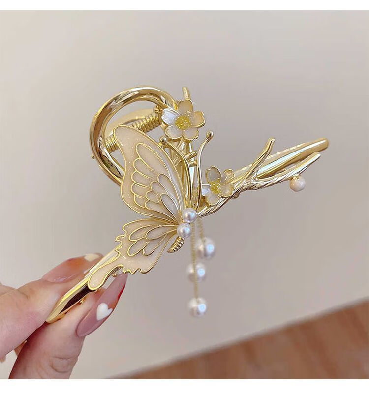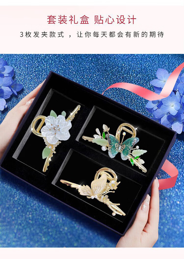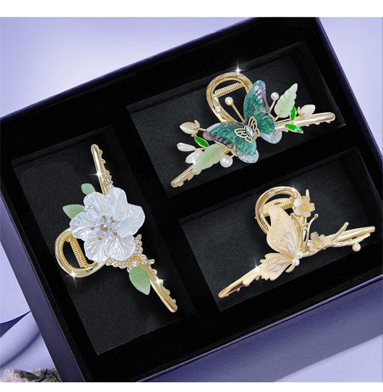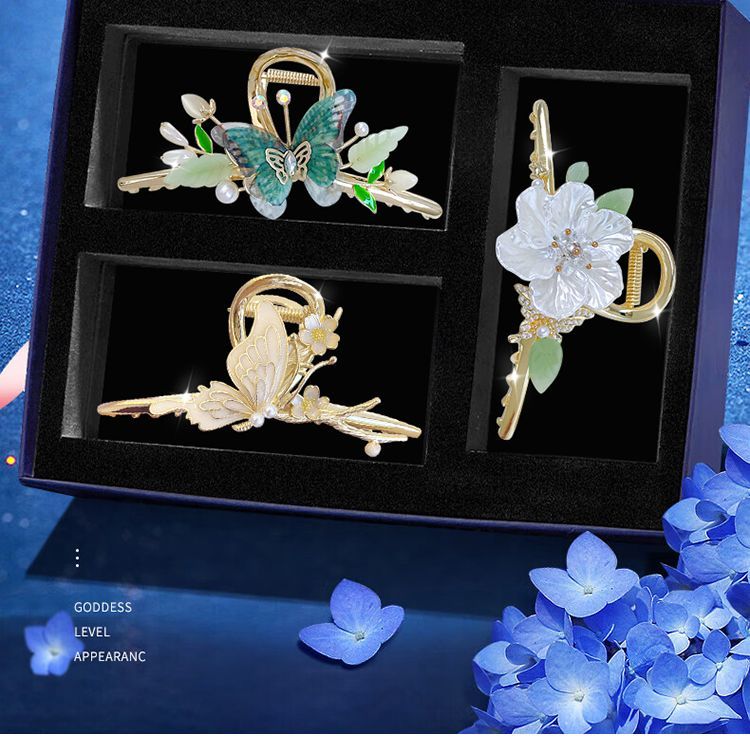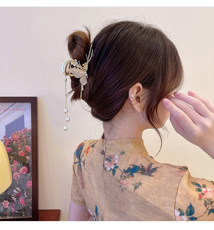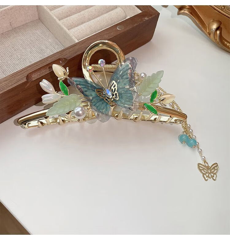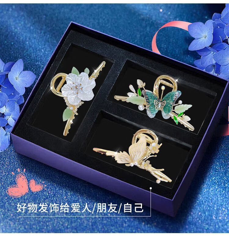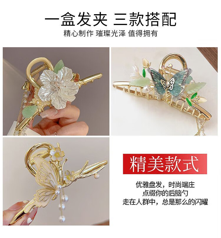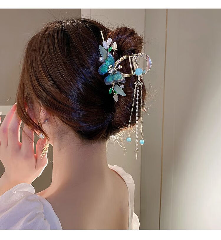Jianlu Hair Clip Women's Back Hair Clip Hair Accessory High-End Hair Clip Hair Accessory Chinese Valentine's Day Gift for Girlfriend Butterfly Flower Tassel Hair Clip Gift Box