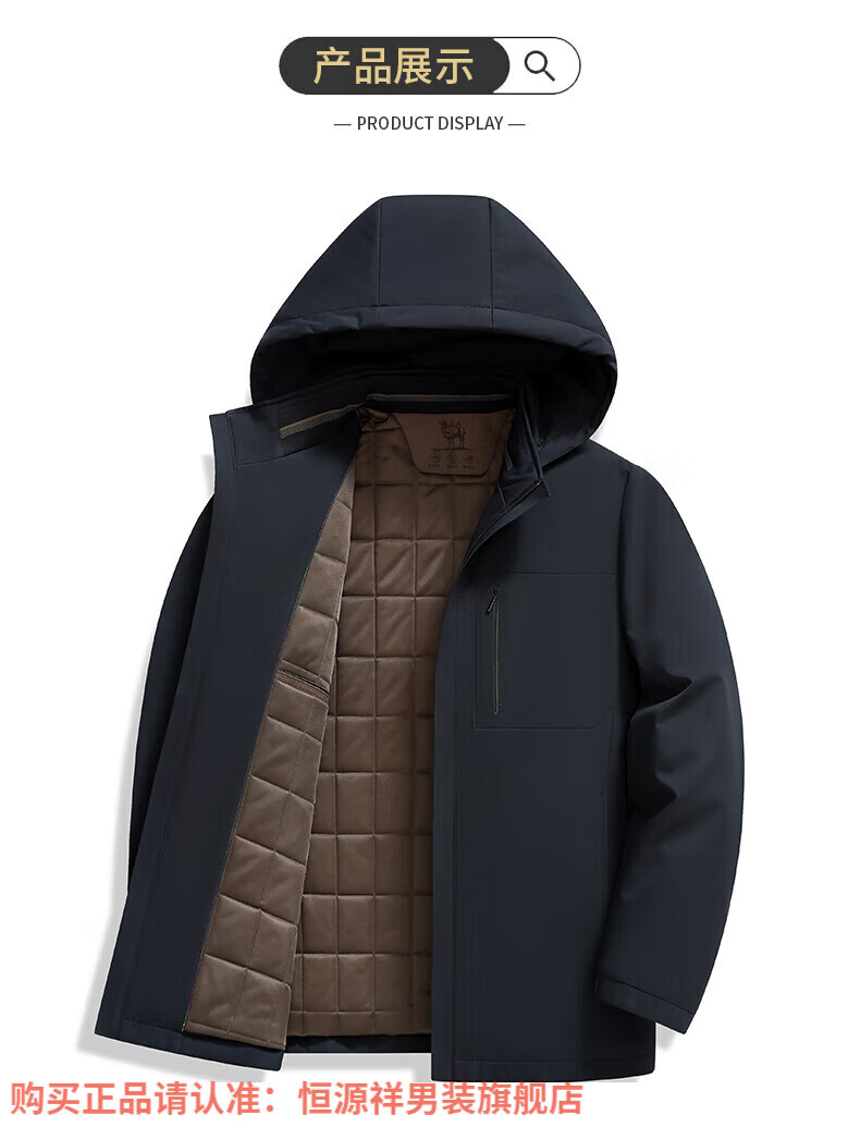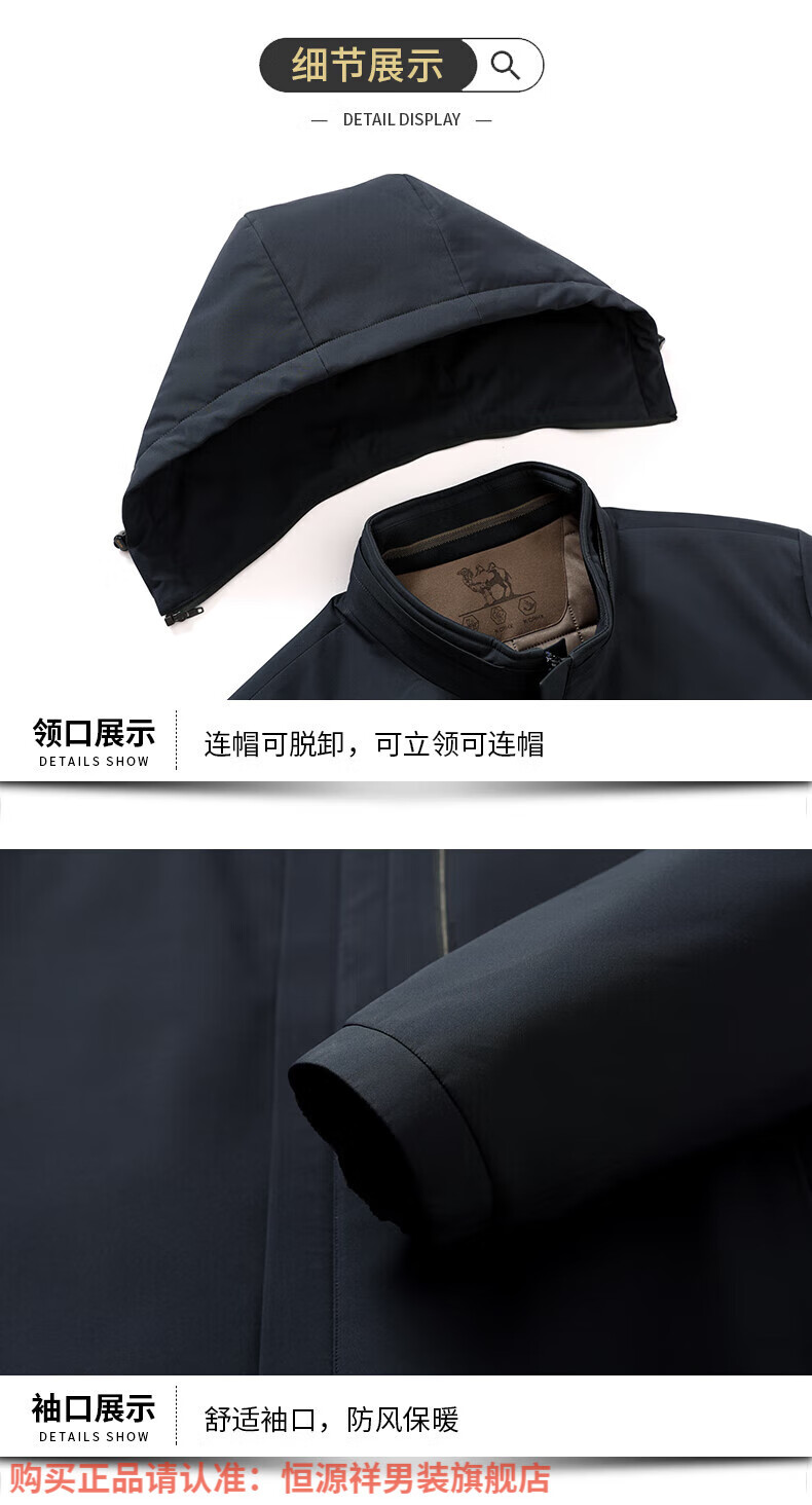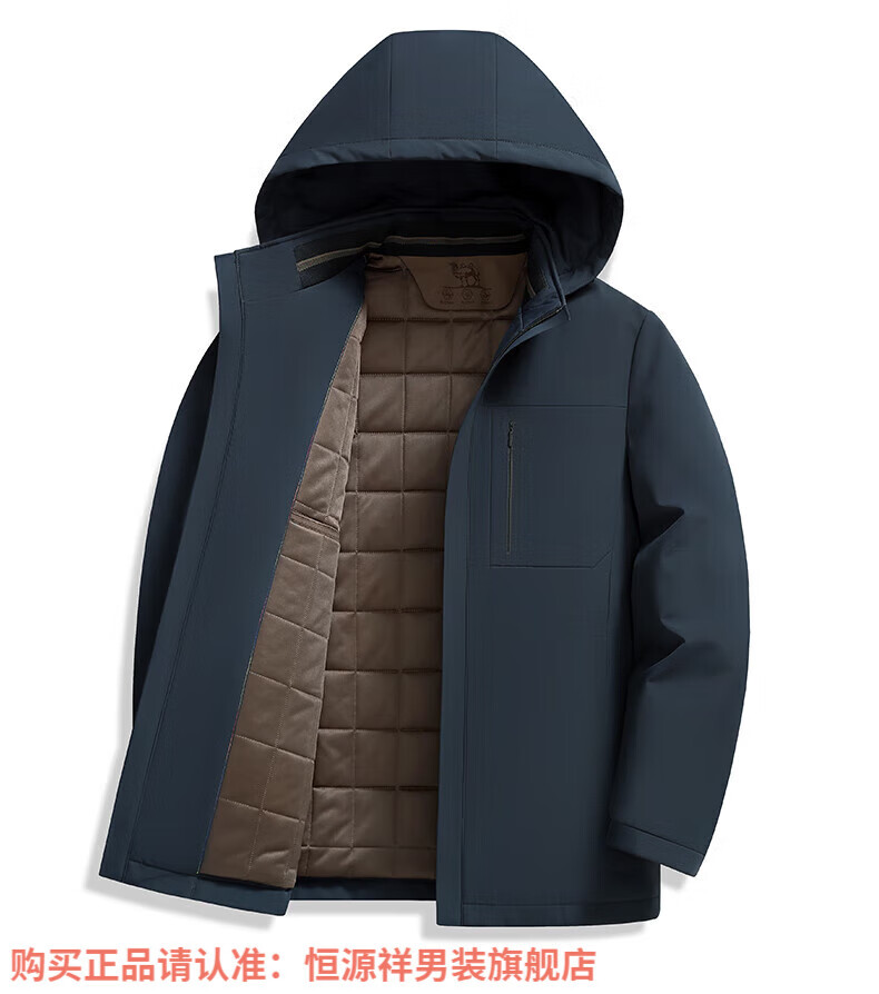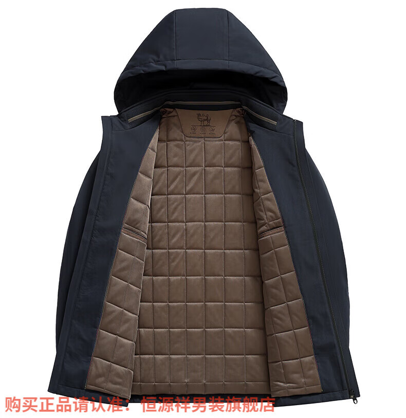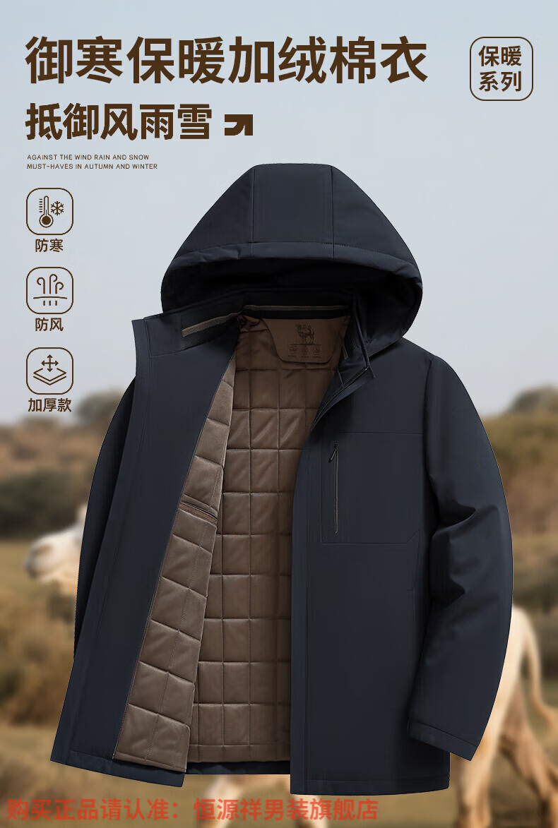 Hengyuanxiang winter camel velvet cotton coat men's jacket cotton coat men's casual removable hooded thickened warm jacket men's cotton-padded jacket dark green L (175)
