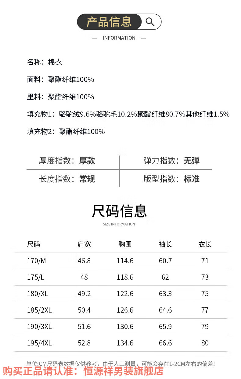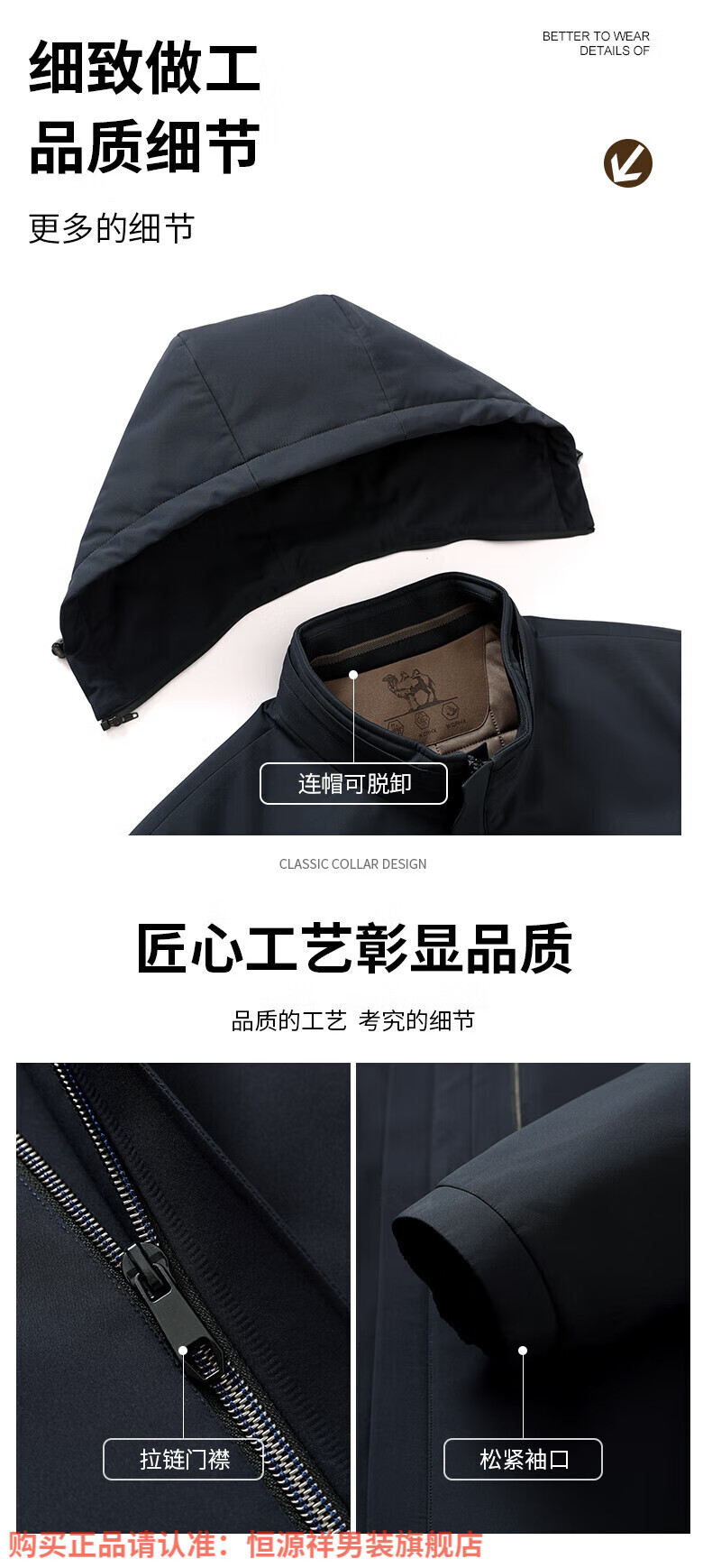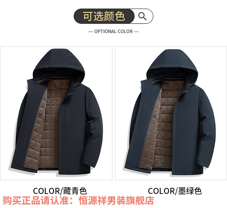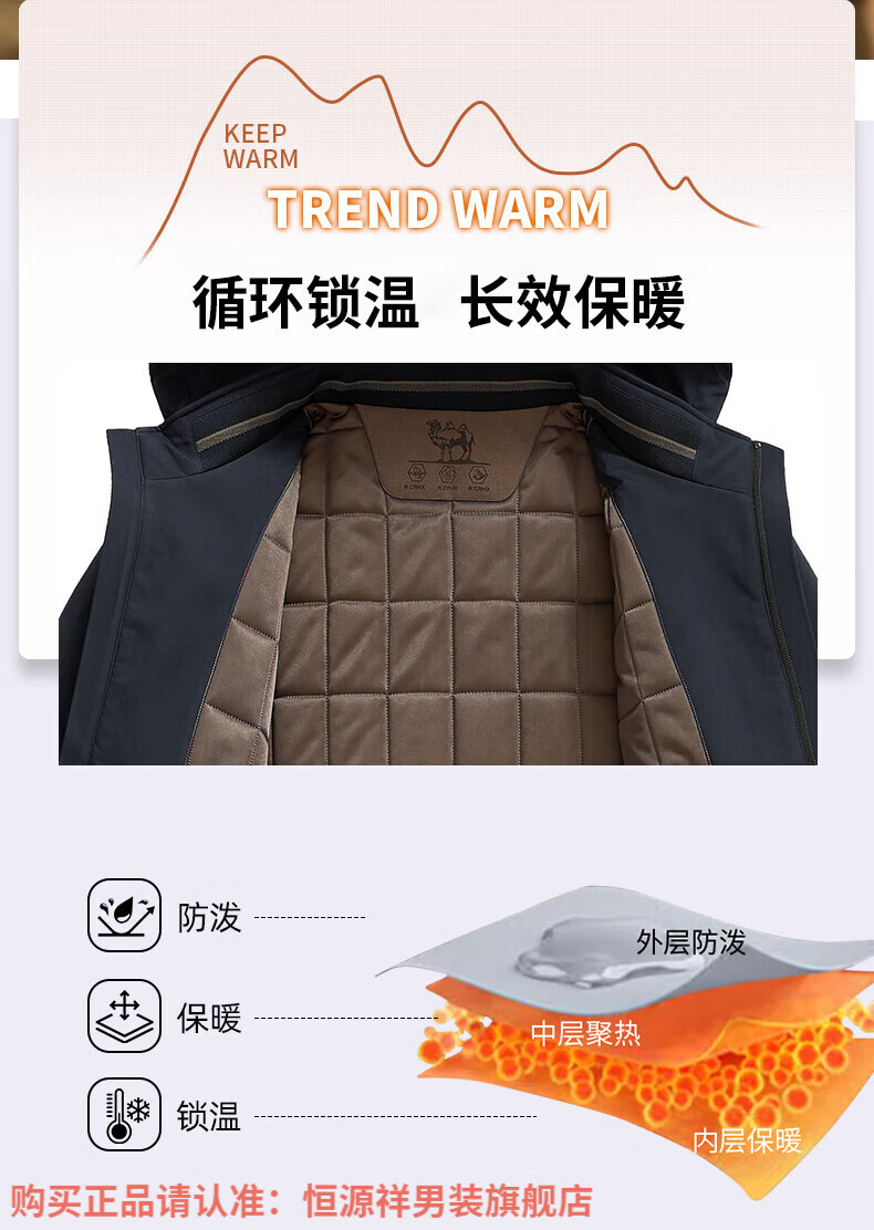 Hengyuanxiang winter camel velvet cotton coat men's jacket cotton coat men's casual removable hooded thickened warm jacket men's cotton-padded jacket dark green L (175)