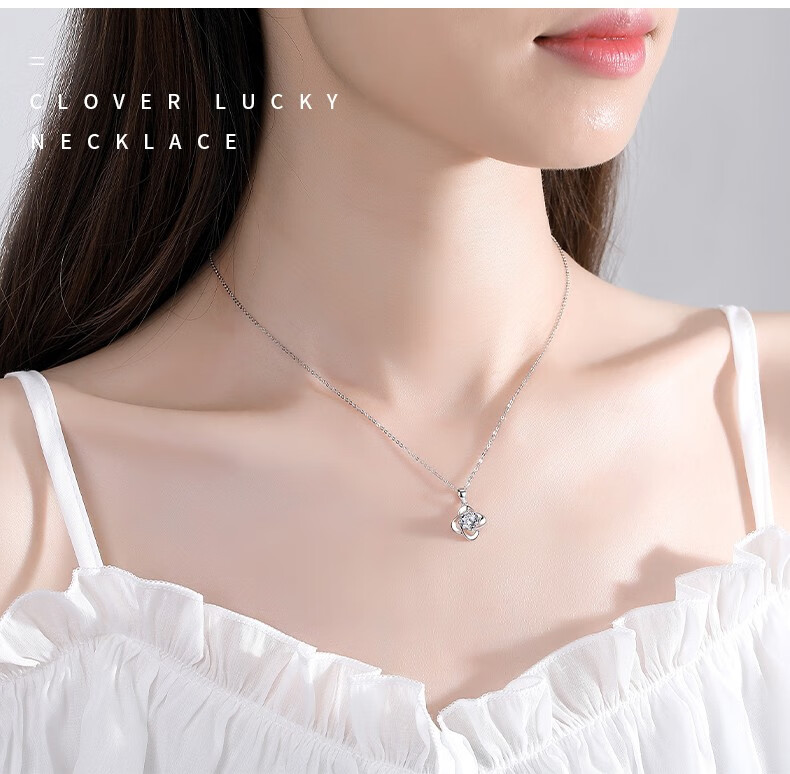 Farin Romosan diamond four-leaf clover platinum necklace women's platinum clavicle chain pendant anniversary birthday gift for girlfriend and wife upgraded arrow heart chain topaz four-leaf clover necklace free custom engraving