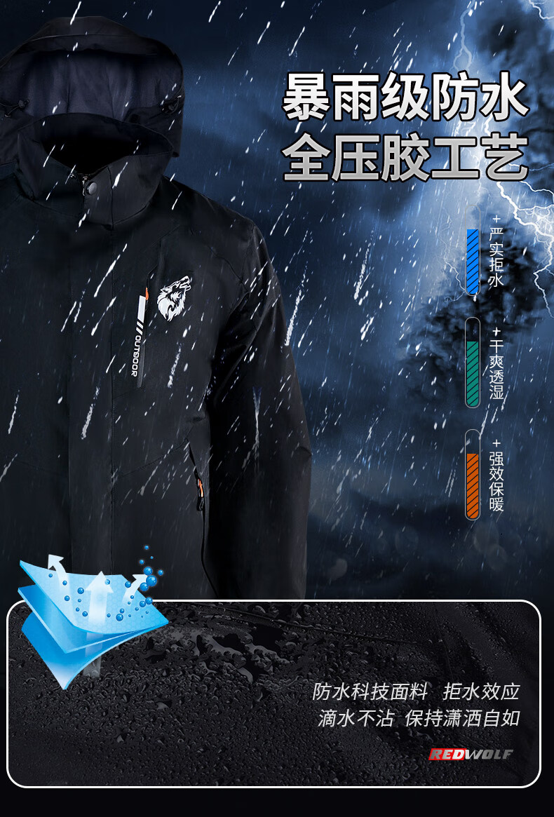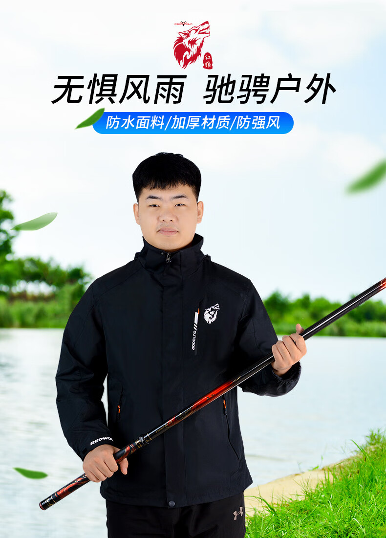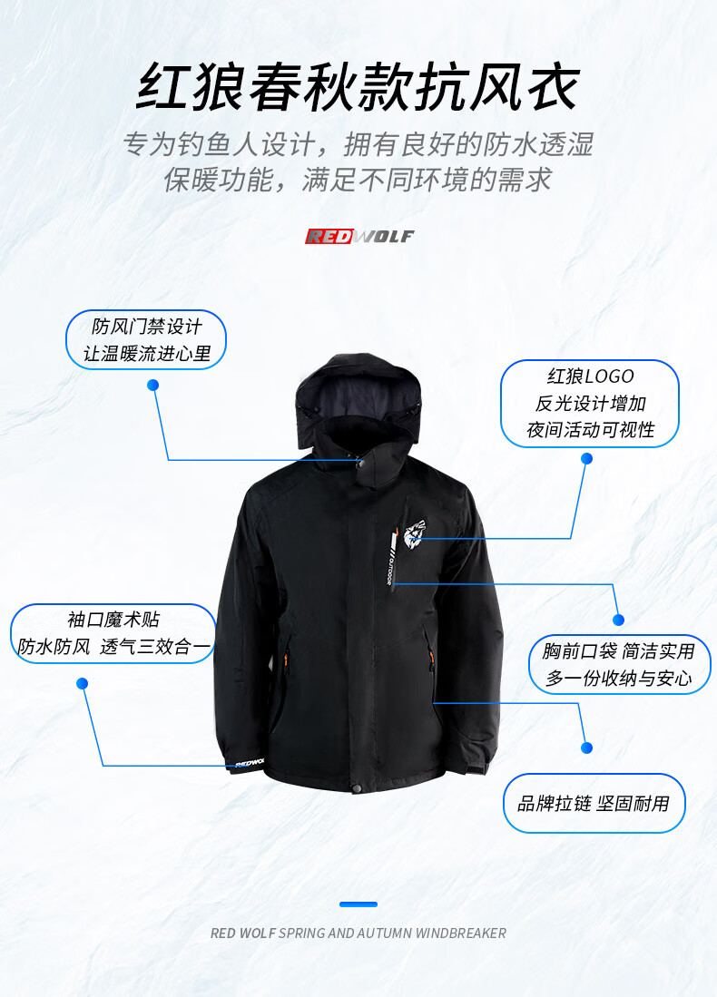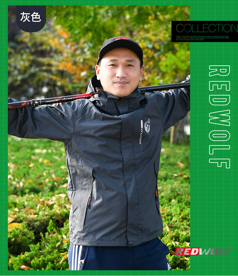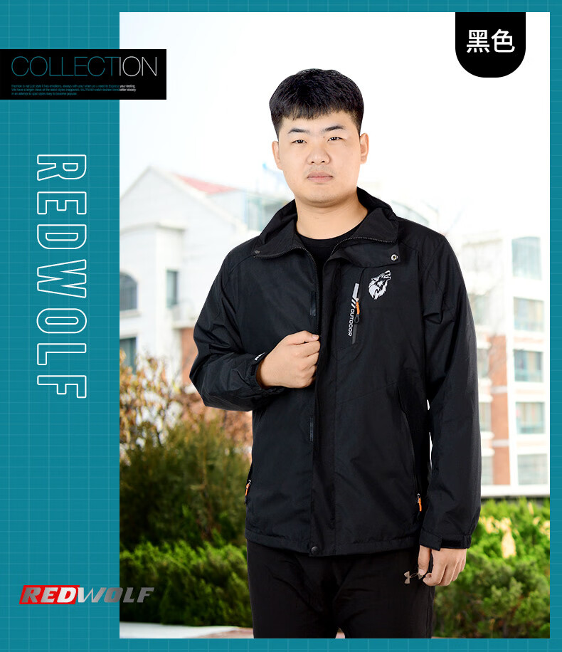 RED WOLF Spring and Autumn Windbreaker for Men and Women Gray Black Windproof and Waterproof Fishing Clothing Outdoor Skiing and Mountaineering Clothing Red Wolf Spring and Autumn Black Windproof Jacket 3XL