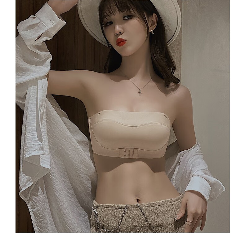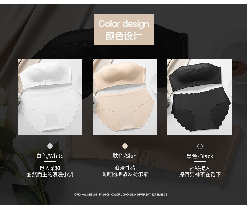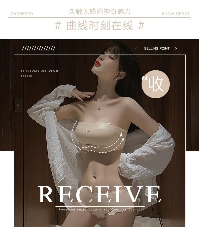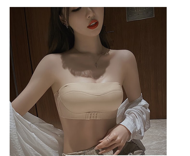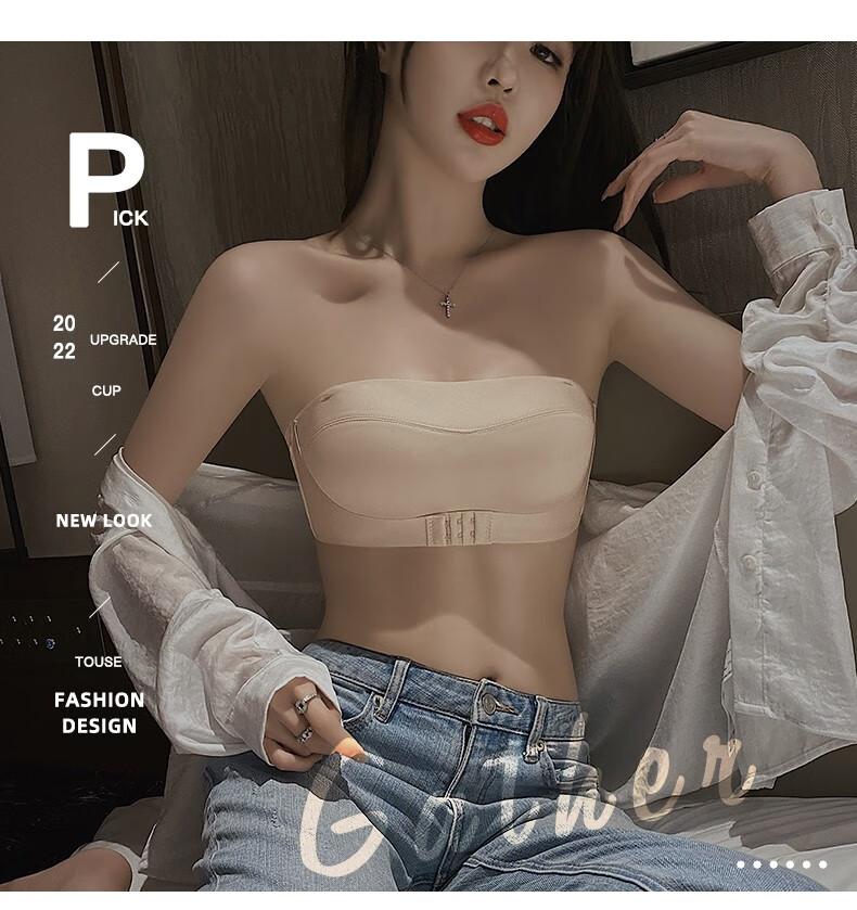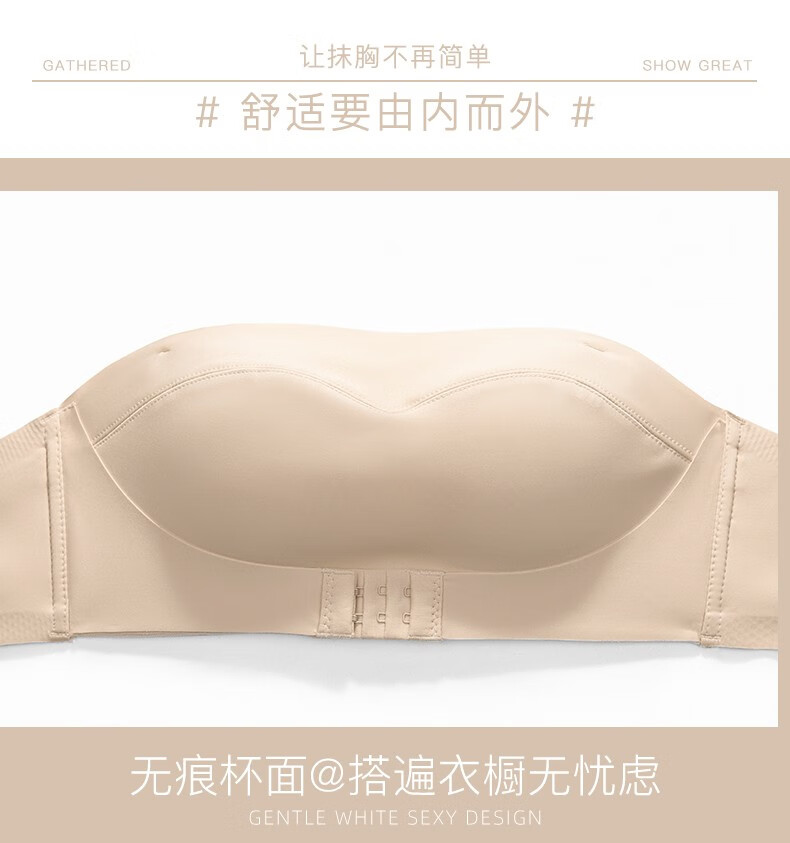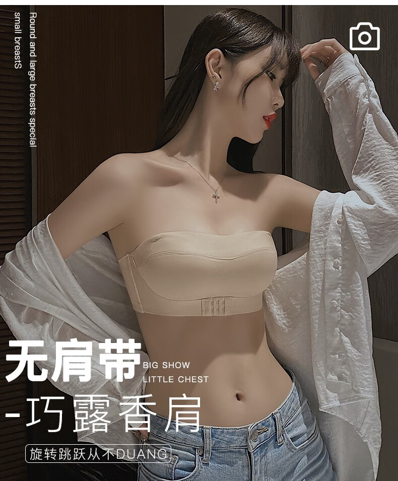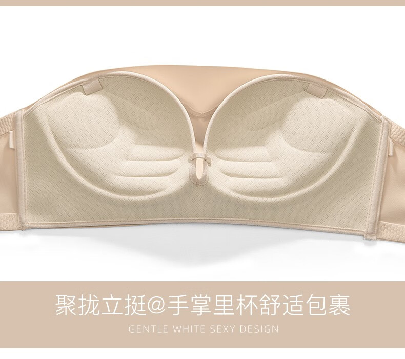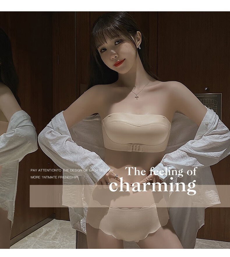 Maolu Valentine's Day Gift Strapless Bra No Wires Anti-Exposed Wedding Dress Sexy Push-up Small Breast Beautiful Back Underwear Women Skin Color Bra + Underwear 75A B-Cup