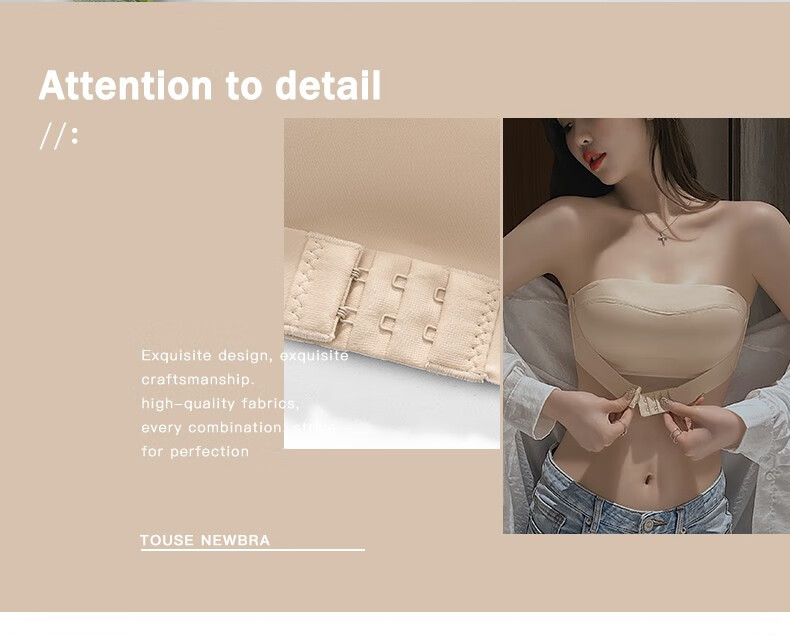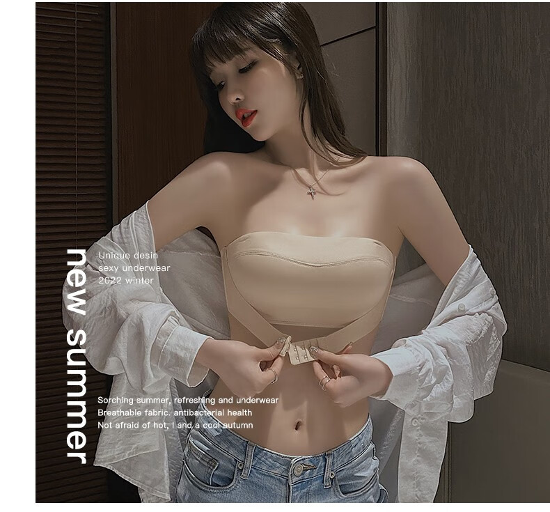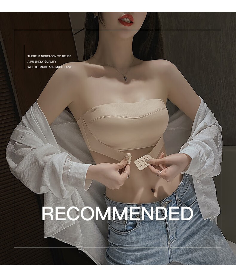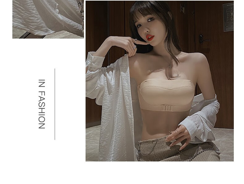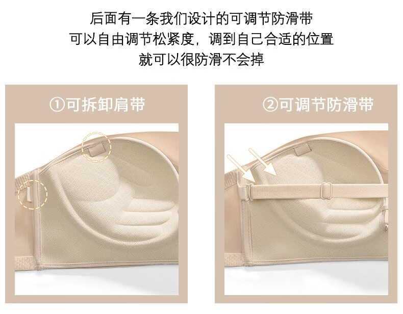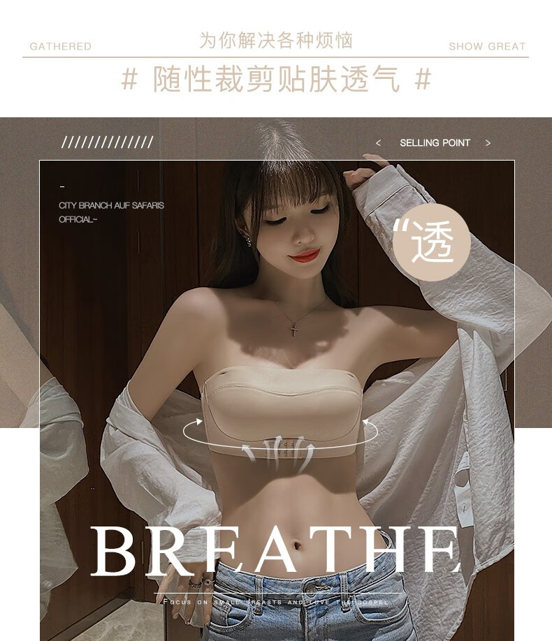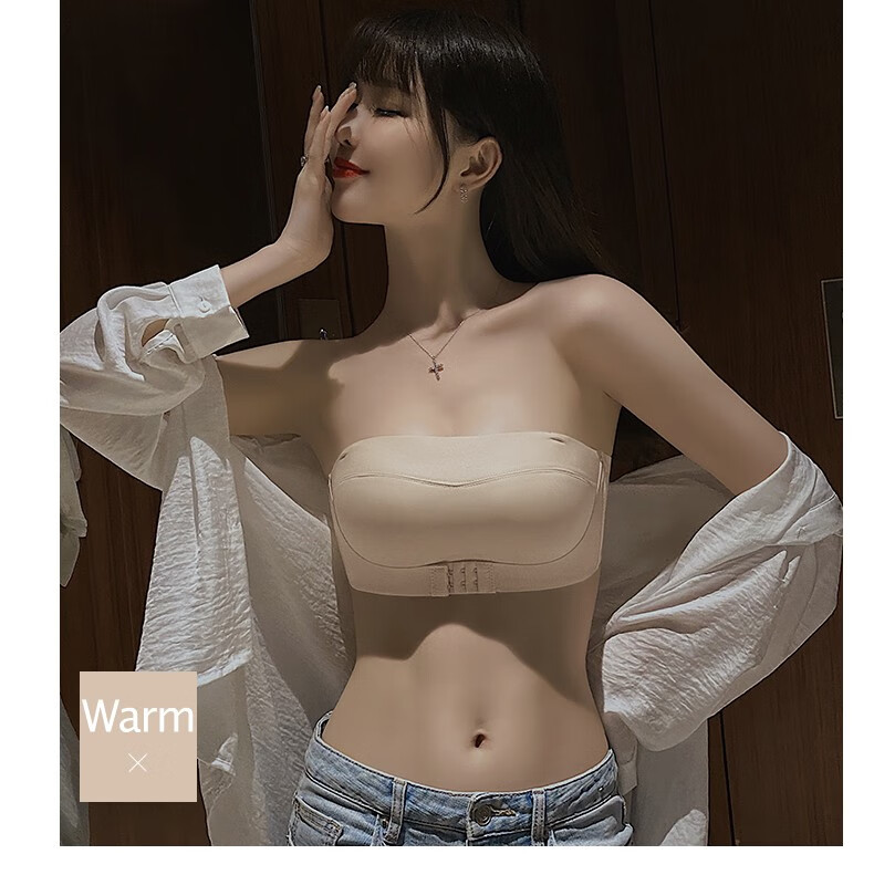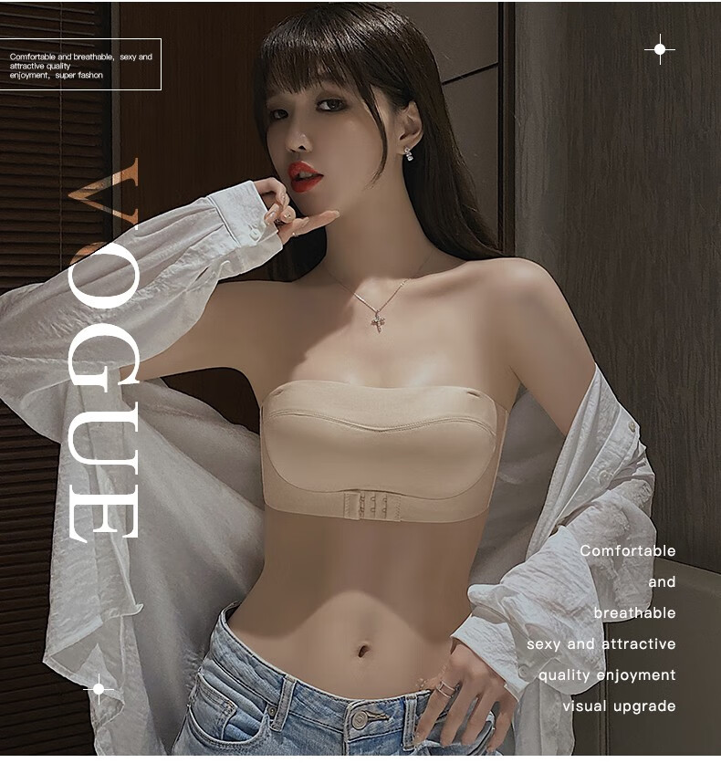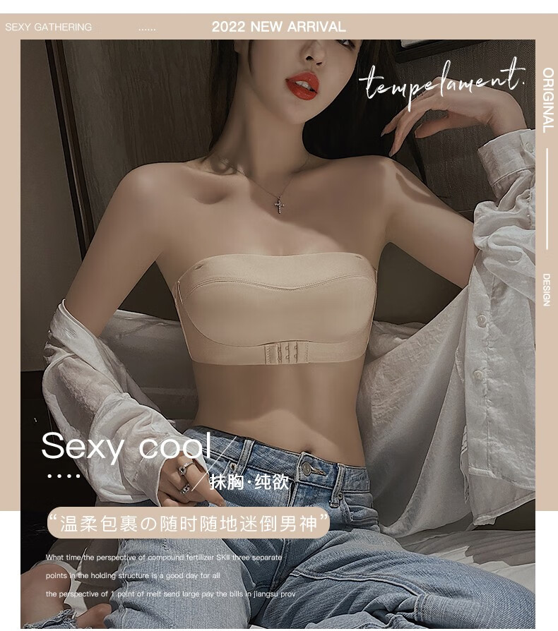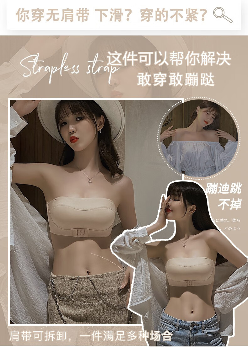 Maolu Valentine's Day Gift Strapless Bra No Wires Anti-Exposed Wedding Dress Sexy Push-up Small Breast Beautiful Back Underwear Women Skin Color Bra + Underwear 75A B-Cup