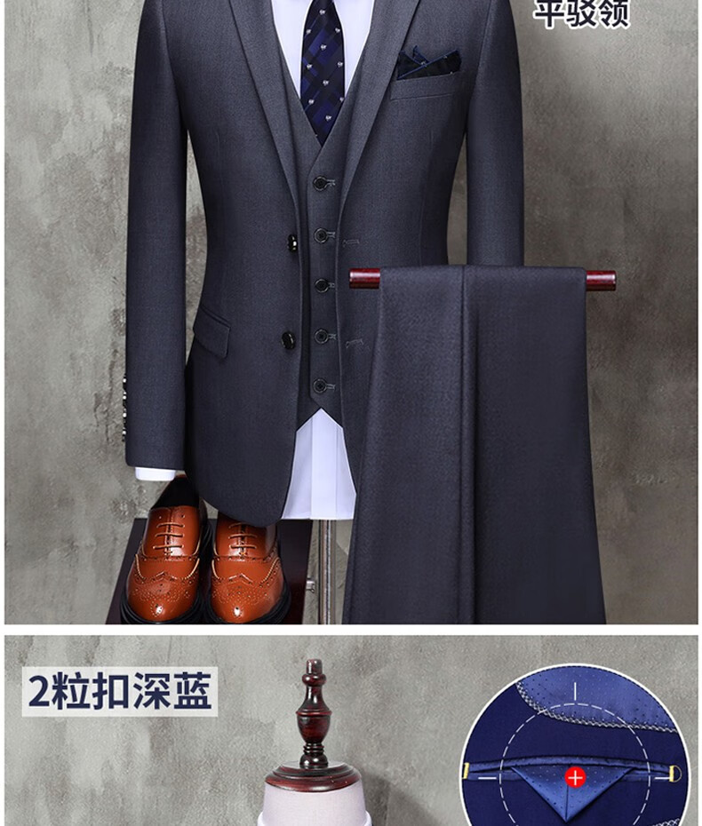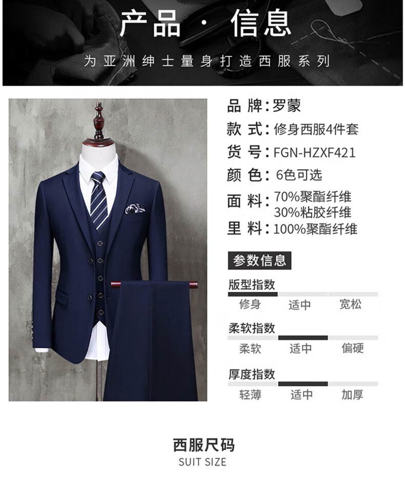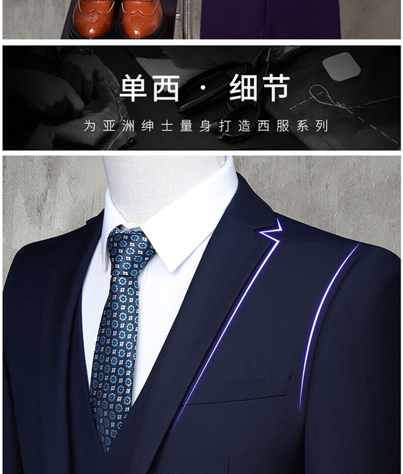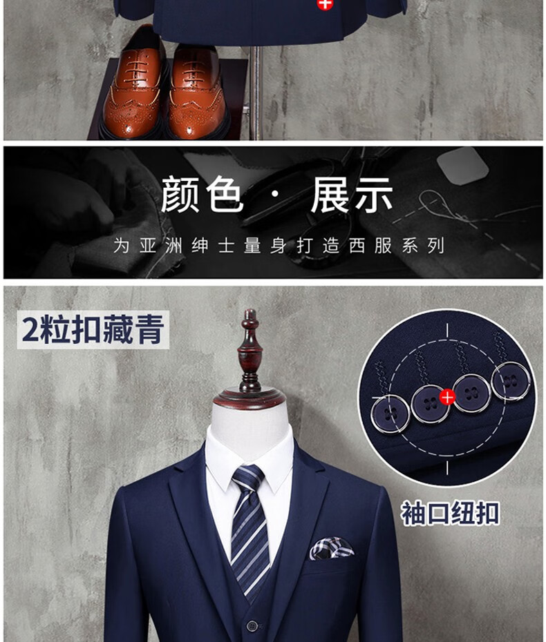 Luo Meng suit suit men's spring and autumn business casual small suit tailoring professional formal wear wedding groom wedding casual suit jacket two buttons navy + suit + trousers + shirt XL size (plus 8 gift packs)
