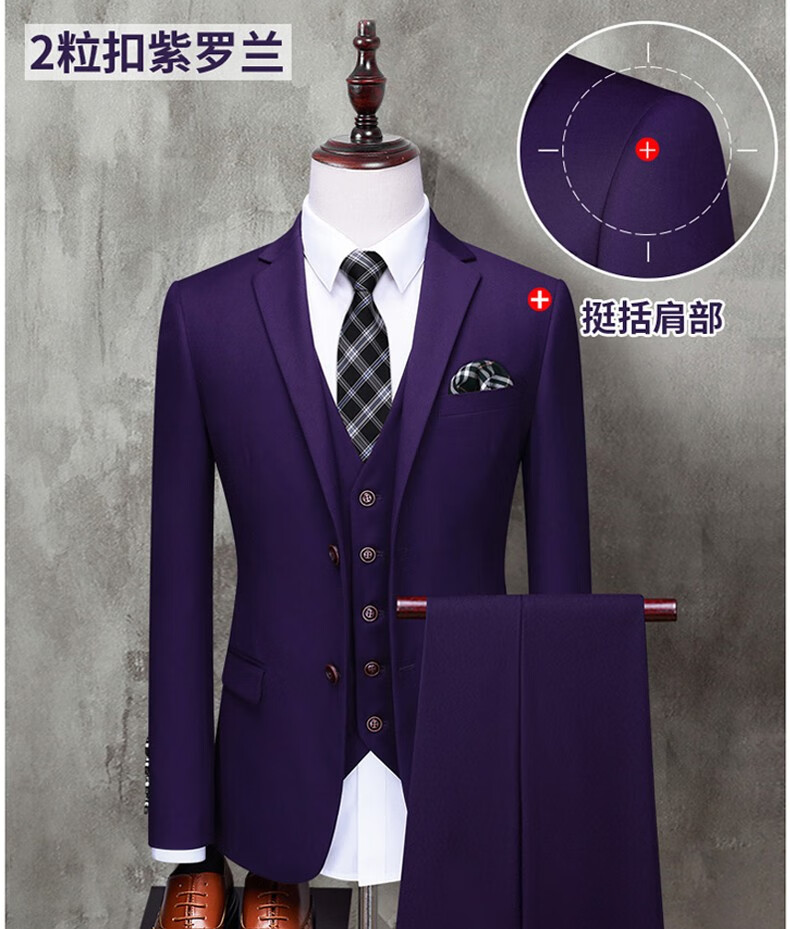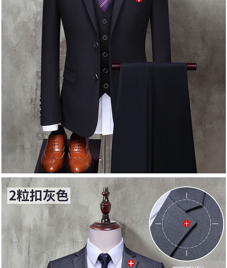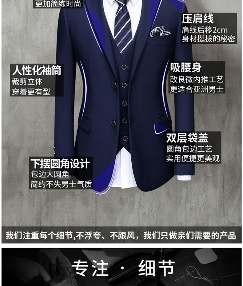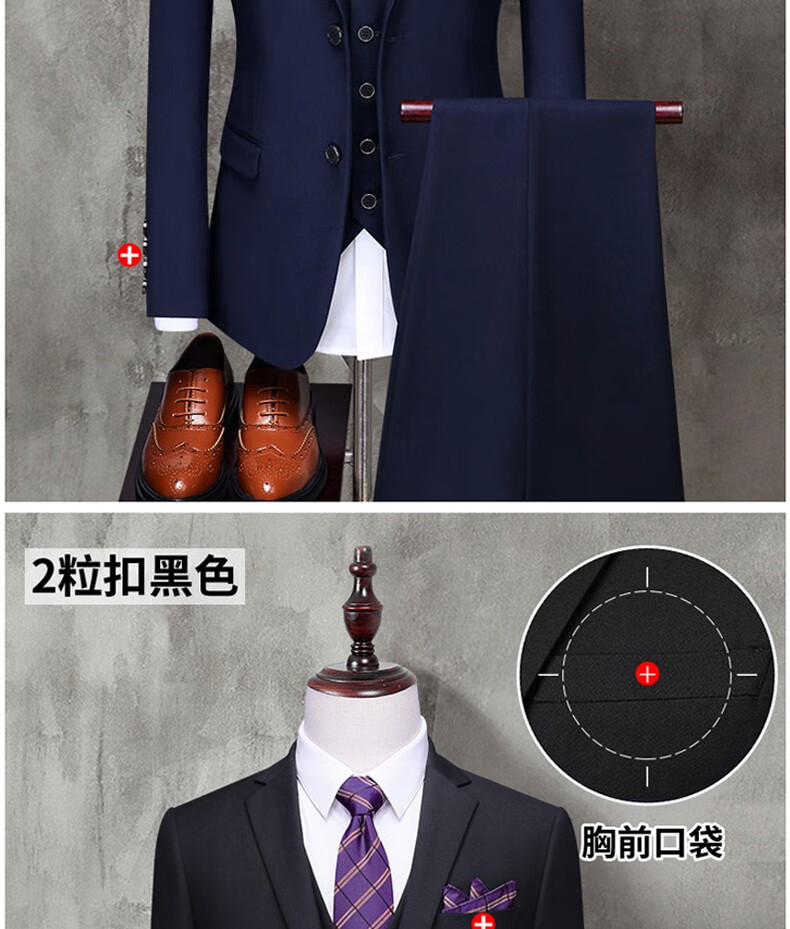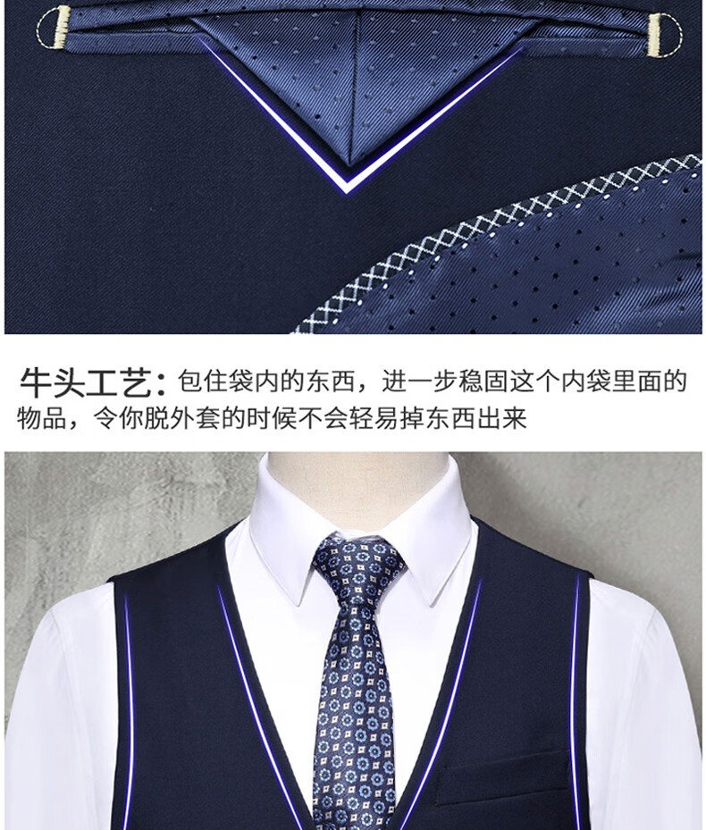 Luo Meng suit suit men's spring and autumn business casual small suit tailoring professional formal wear wedding groom wedding casual suit jacket two buttons navy + suit + trousers + shirt XL size (plus 8 gift packs)